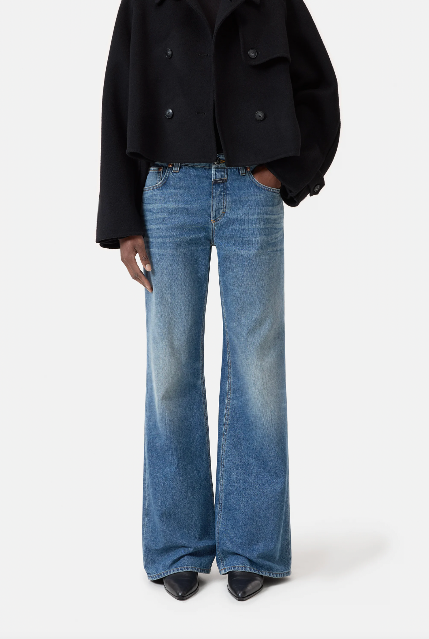 Our 5-pocket jeans Gillan come in a wide fit, featuring a low rise and long, wide legs. Made from authentic indigo denim with 80s-style salt & pepper texture. Includes recycled cotton and eco-friendly processing. Made in Italy.