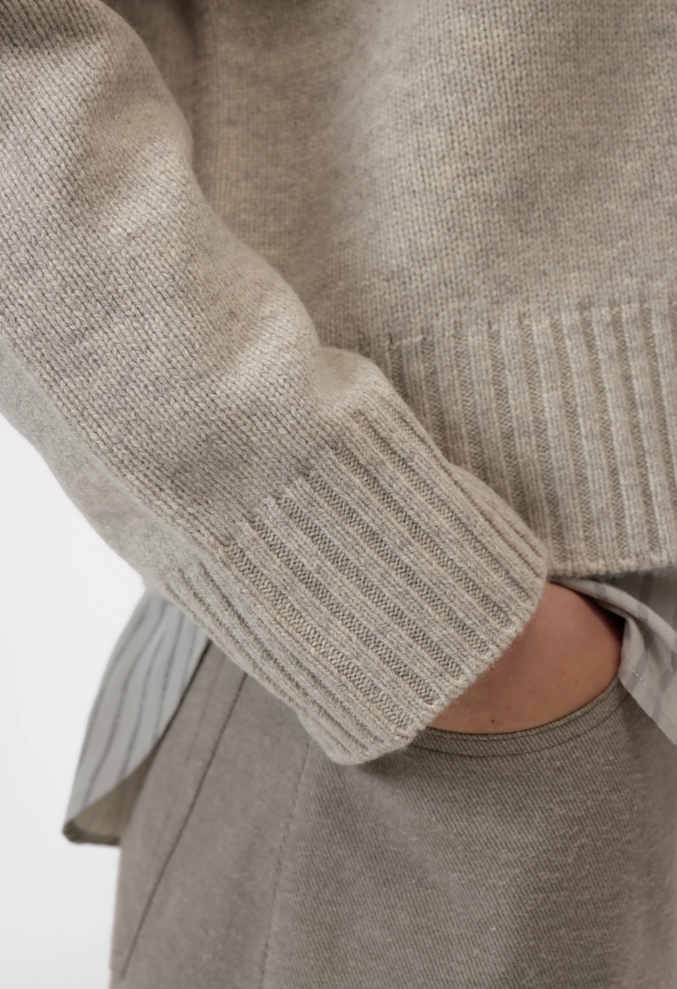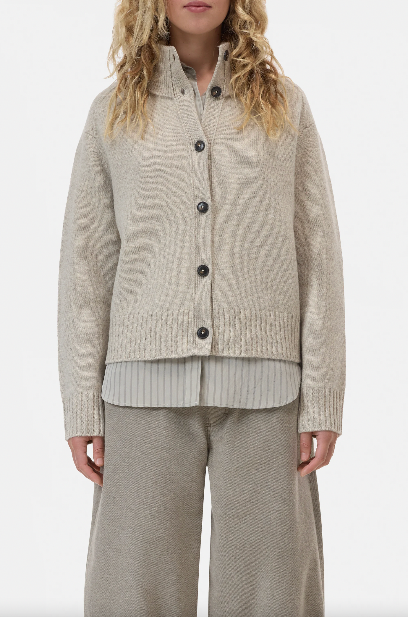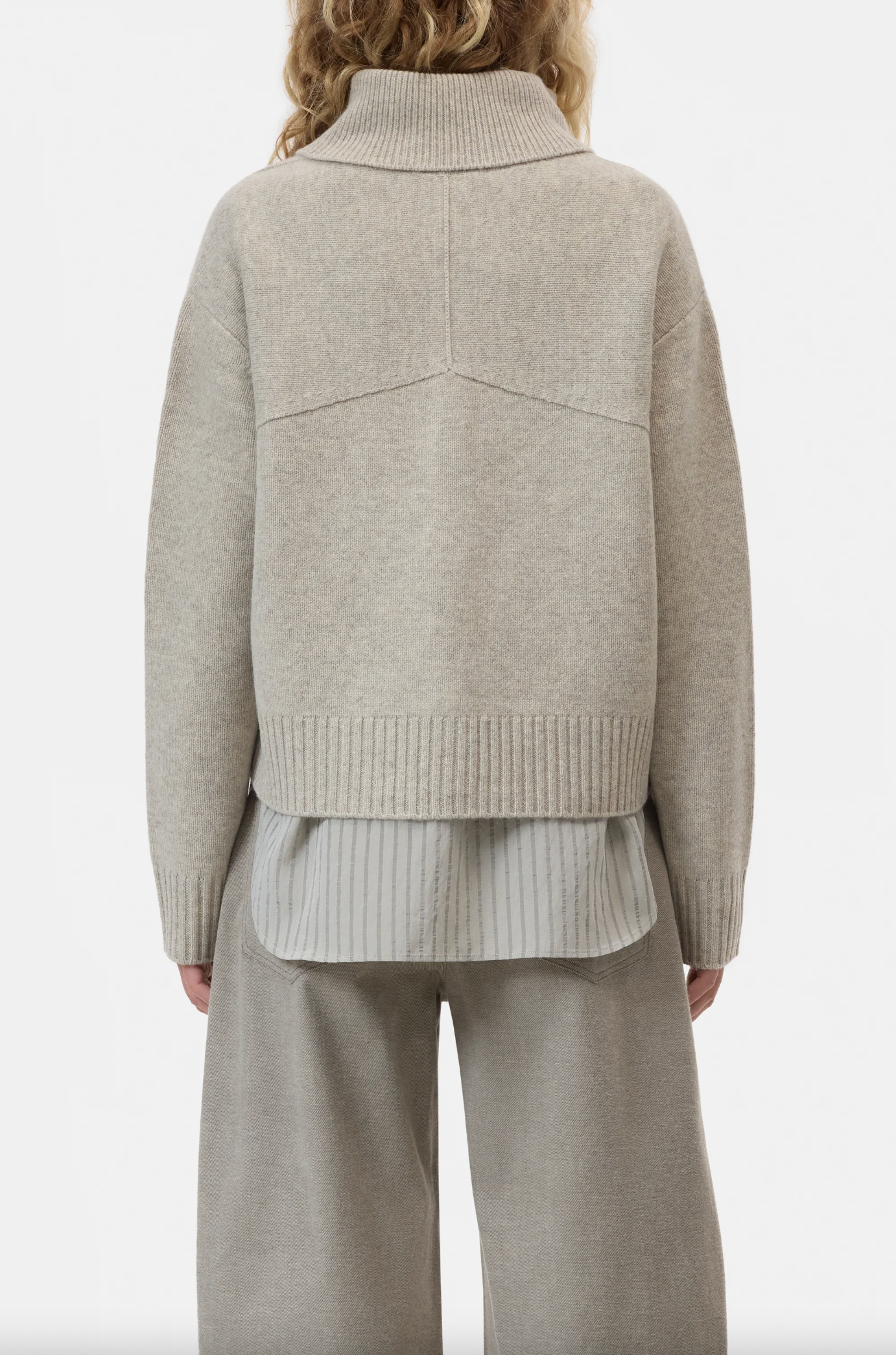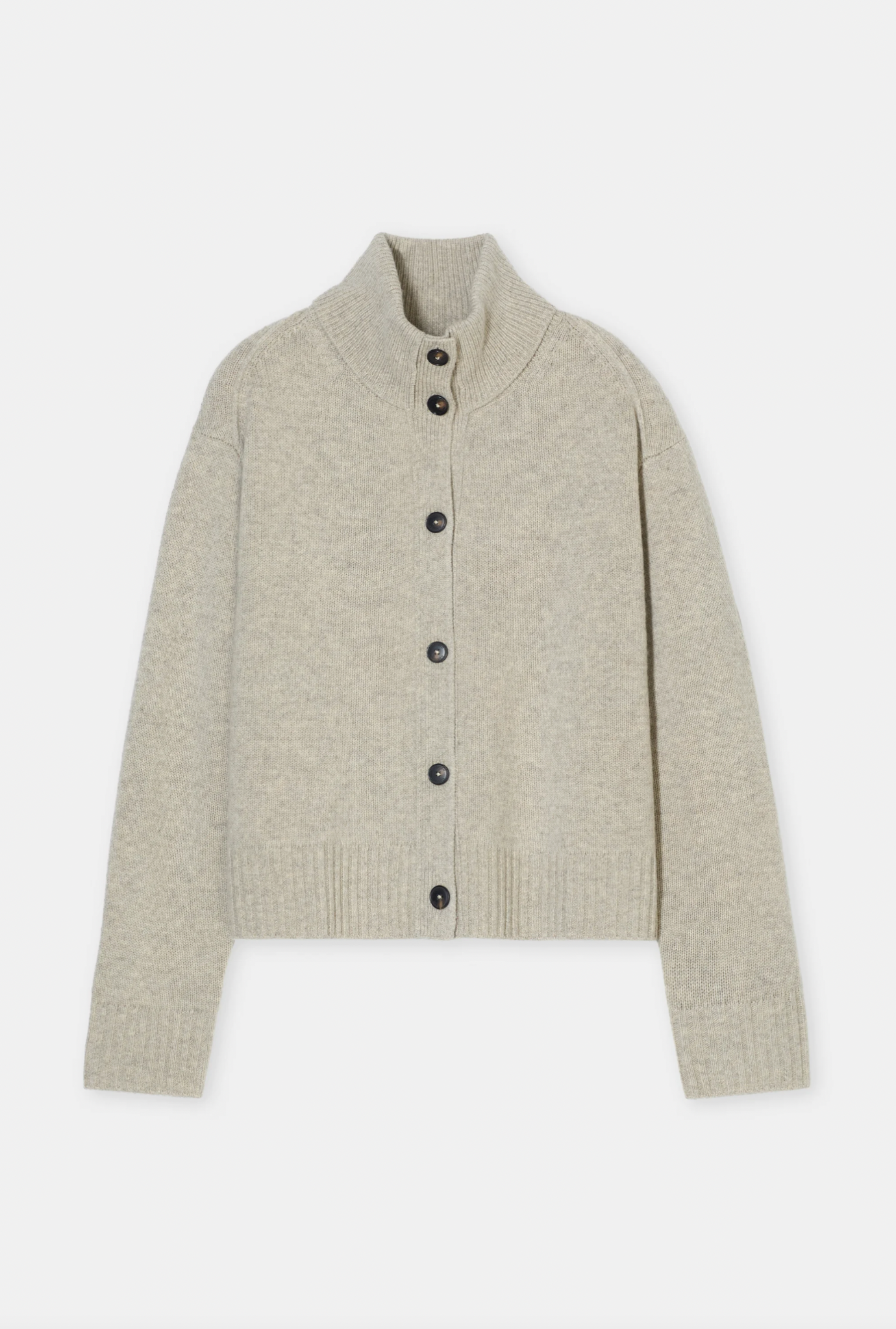 Our roll neck cardigan is knitted from extra-fine, responsibly sourced merino yarn and feels particularly soft. It is beautifully crafted with intricate back yoke detailing and double-layer knit. The cuffs on the collar, button placket, sleeve ends and straight hem feature different rib knit structures.