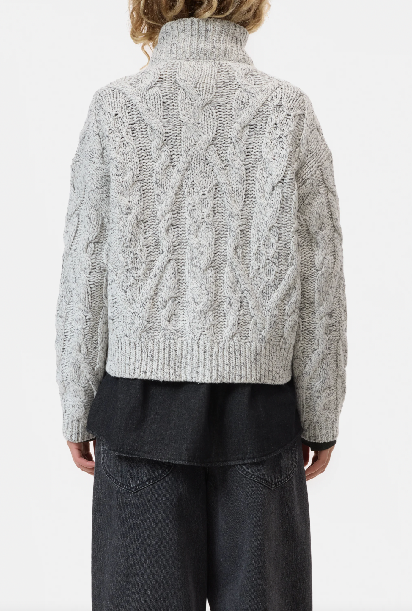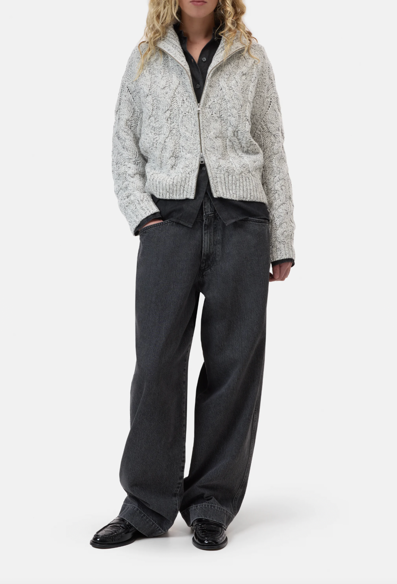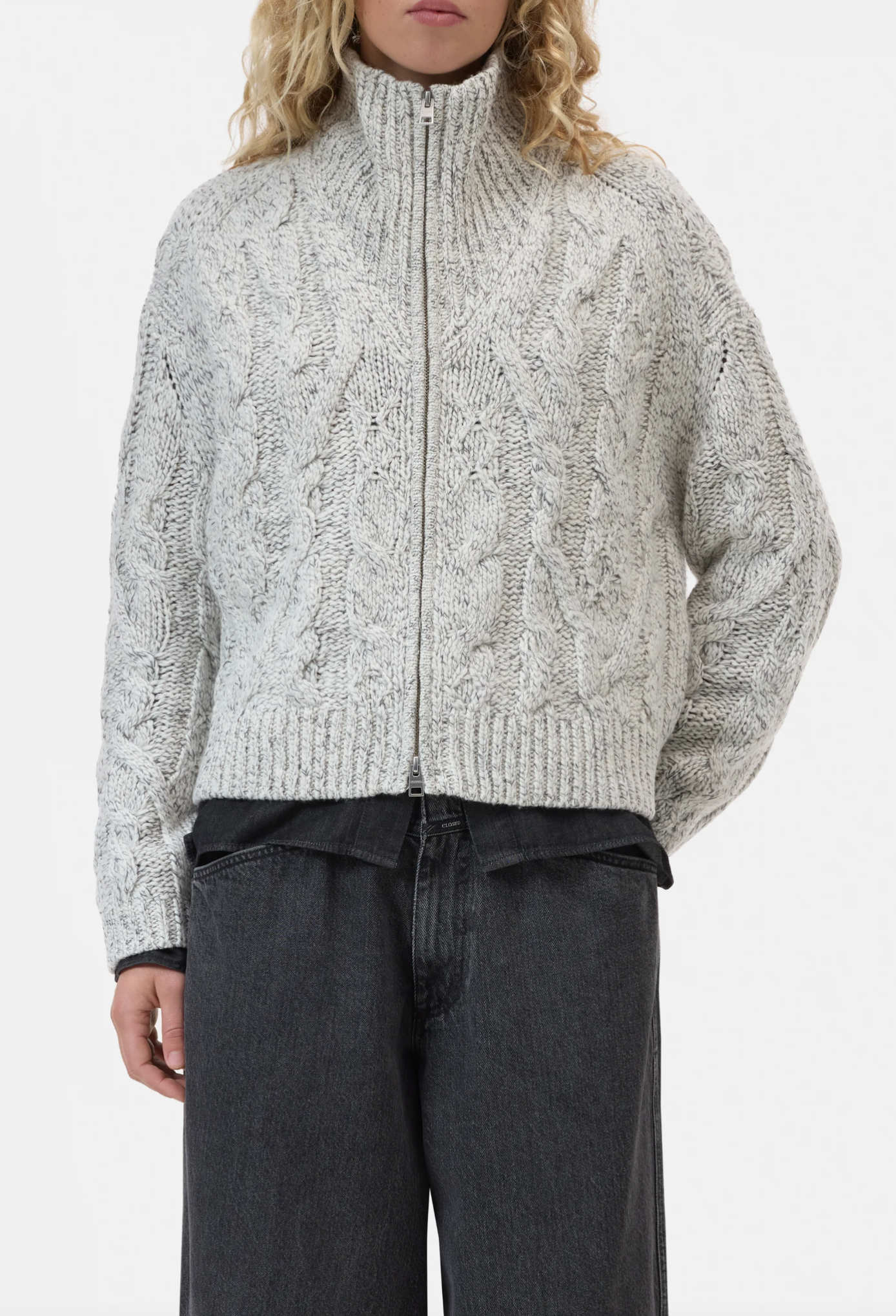 Our troyer cardigan comes in a regular fit with a distinctive cable knit structure. The premium marble-effect yarn consists of wool and cotton. Featuring a ribbed collar, cuffs and hem, the knit has a 2-way zip closure for versatility.