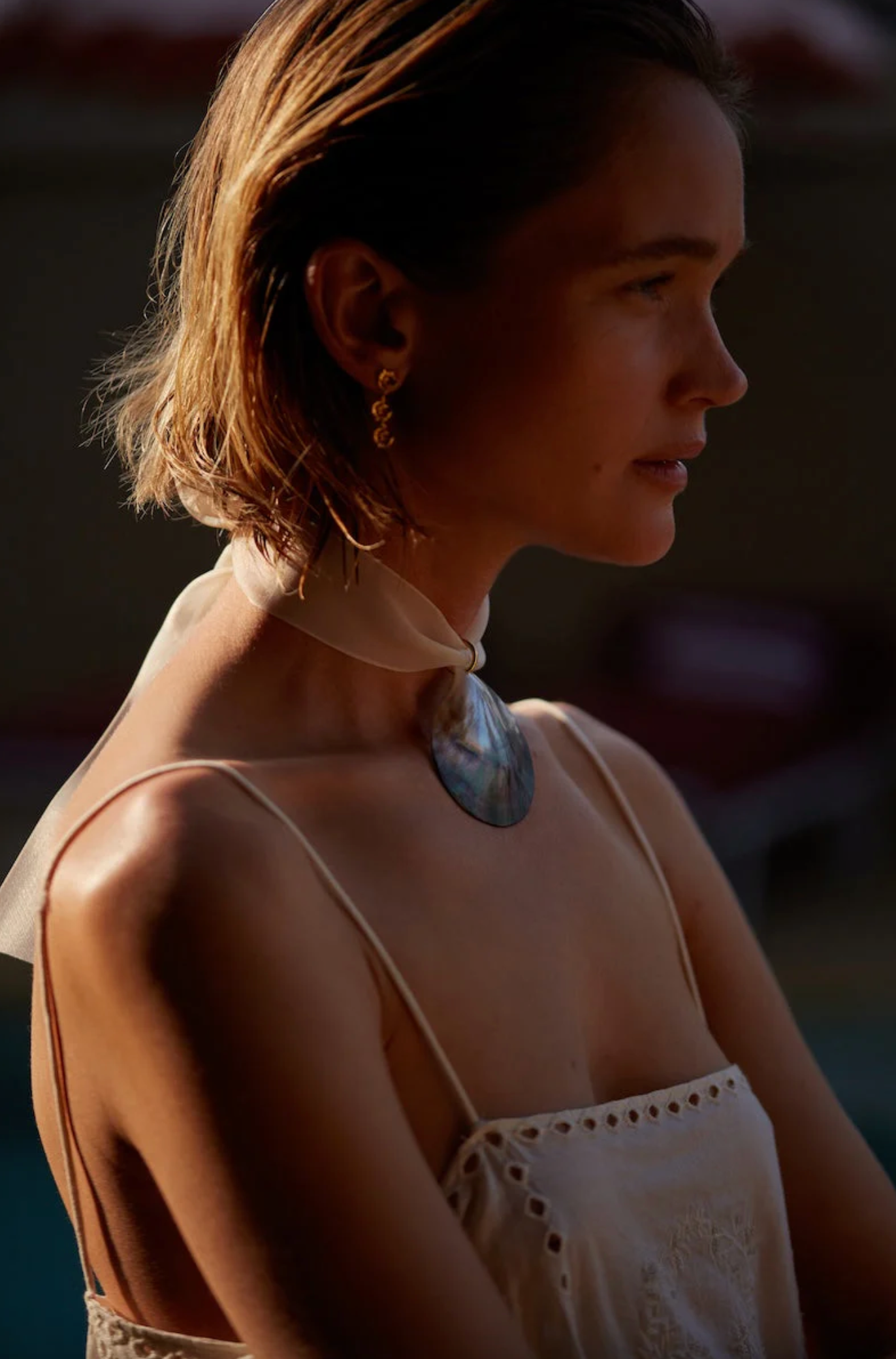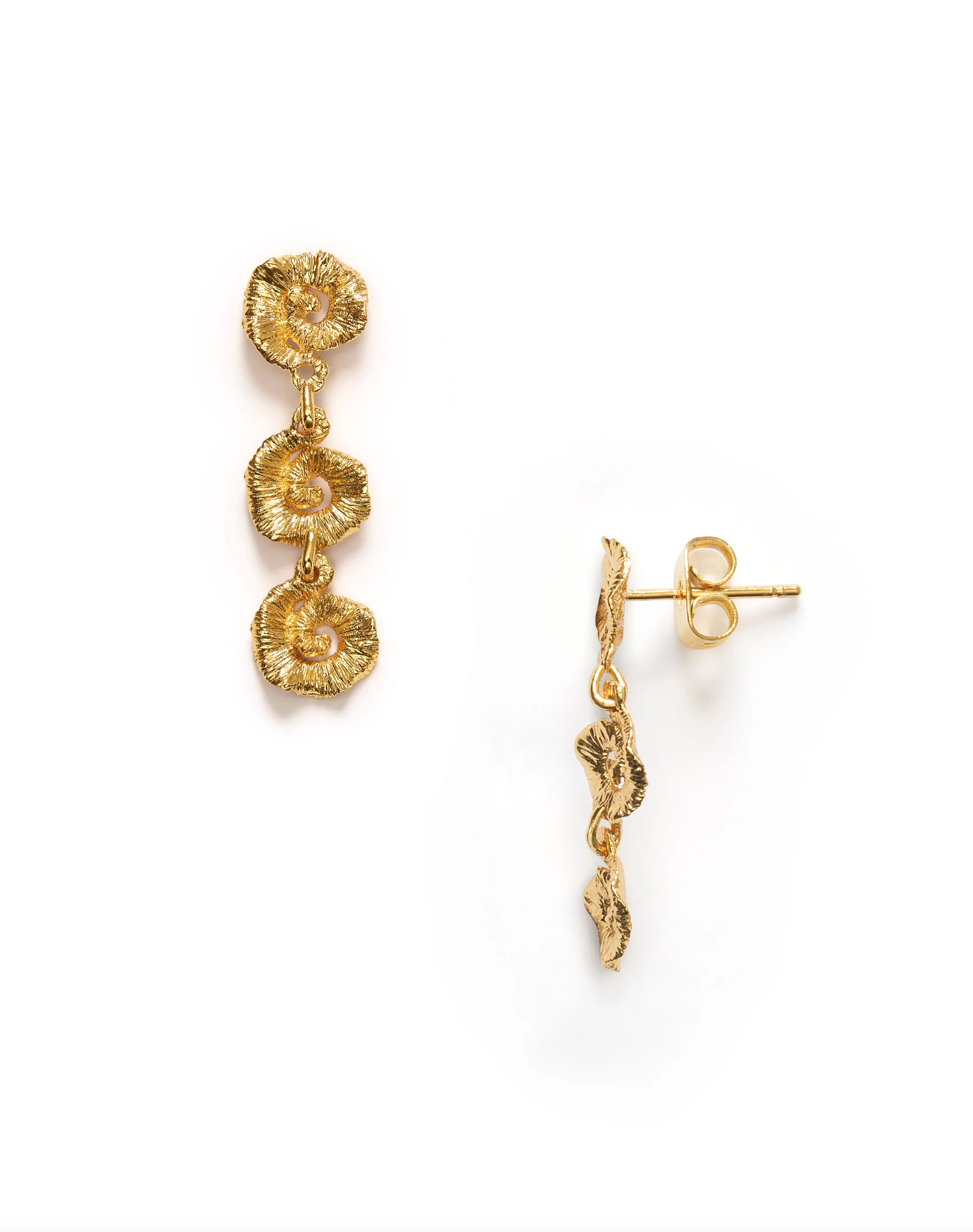 TRIPLE SUN stacks three golden suns at the ear — soft glamour, gentle glow and endless-day energy.