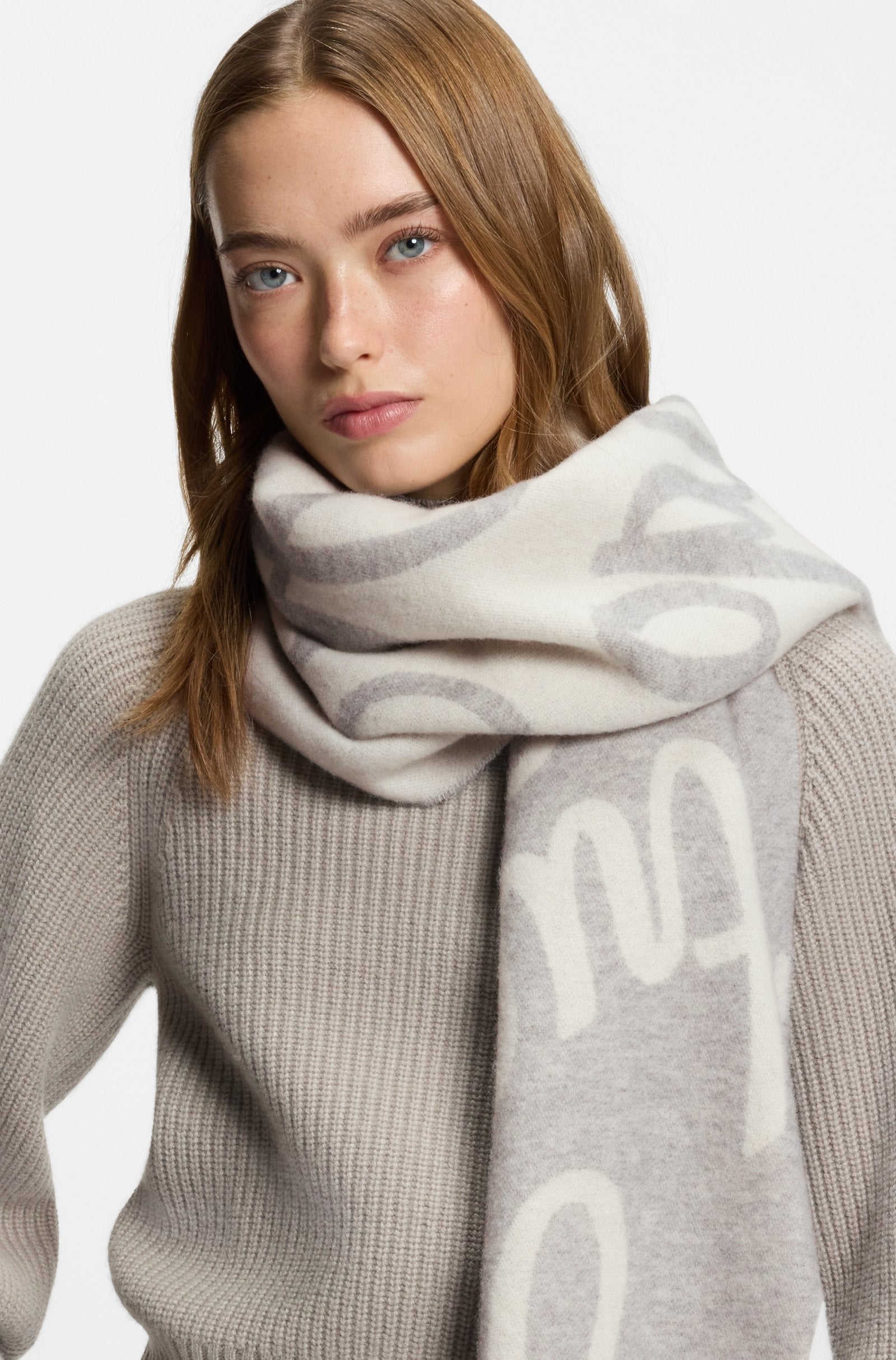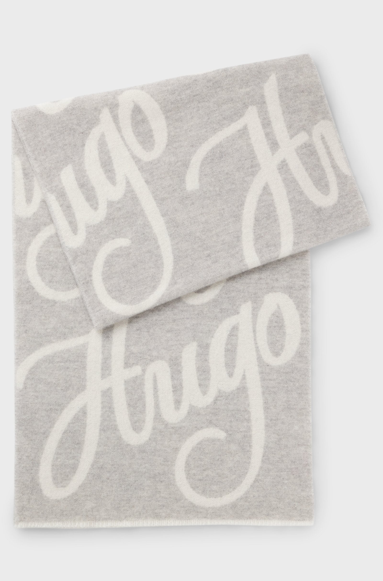 Add statement style and Italian craftsmanship to winter looks with this HUGO Womenswear scarf. Logo jacquard. Made in a brushed wool blend. Measurements: 180 x 40cm