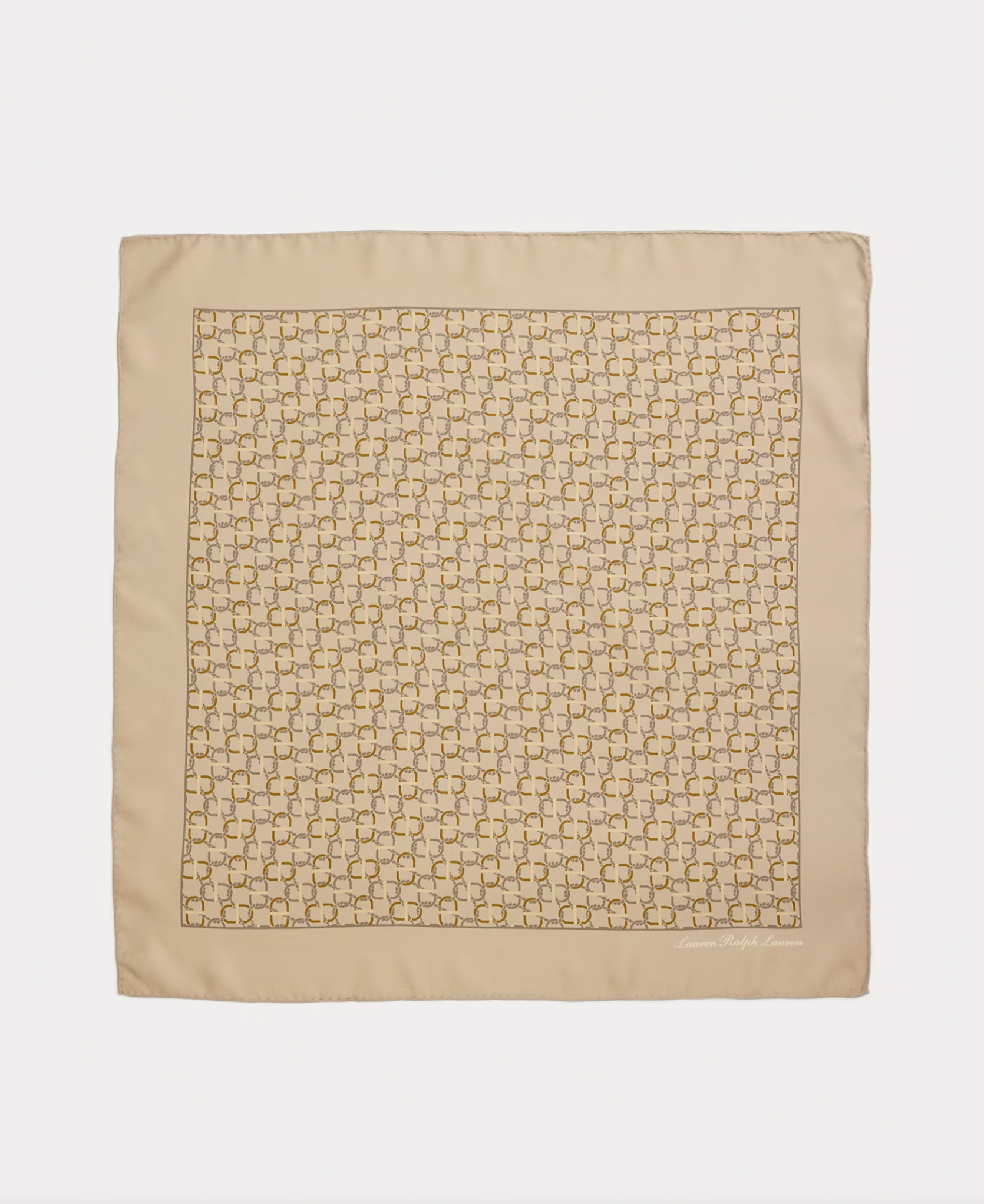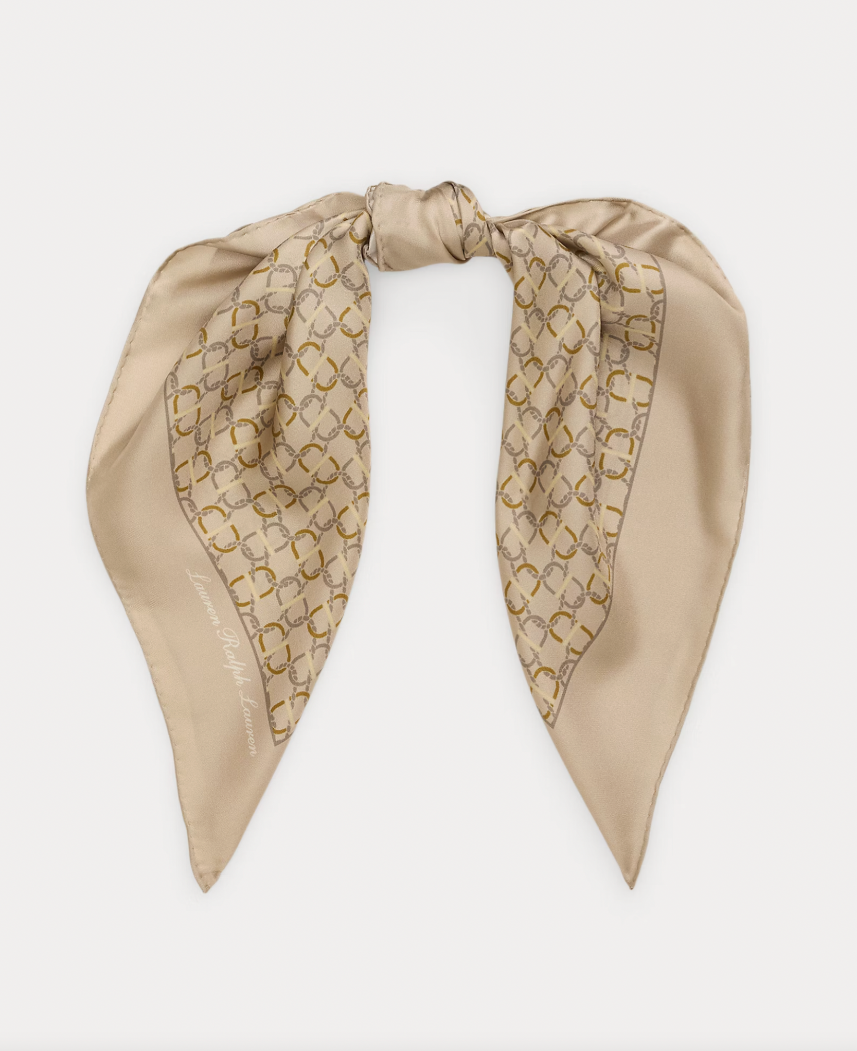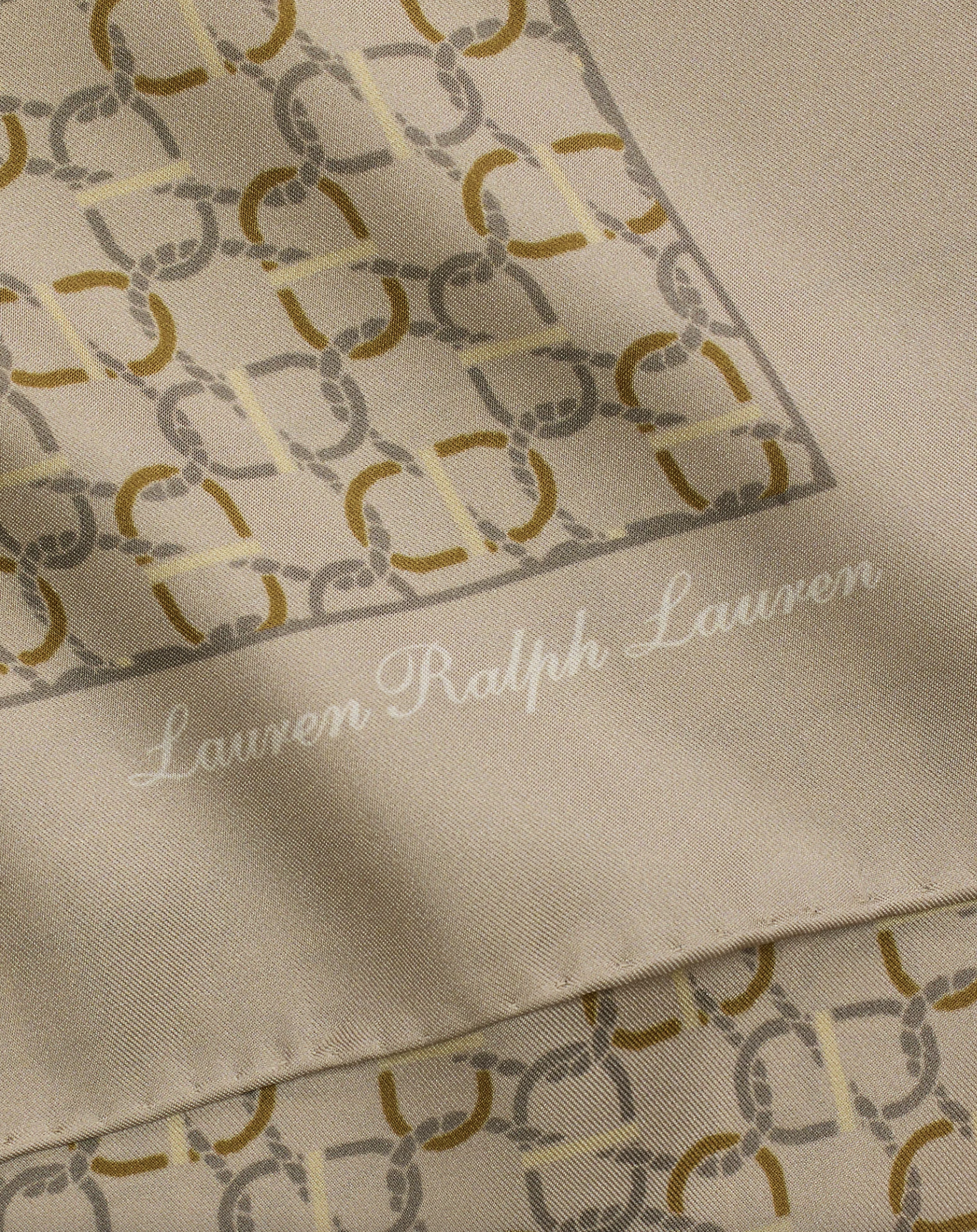 Realised in lustrous silk, this square scarf features a stylised, equestrian-inspired geometric print
