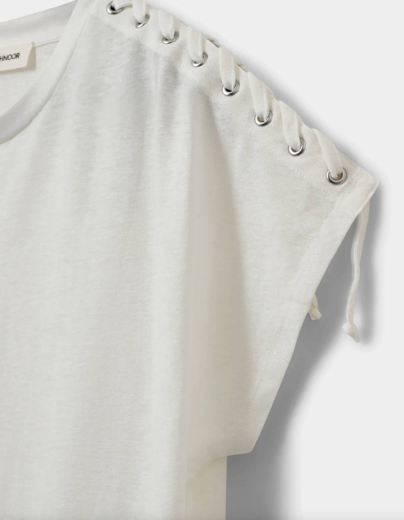 Regular fit short sleeved T-shir with lace-up details along the shoulders.
