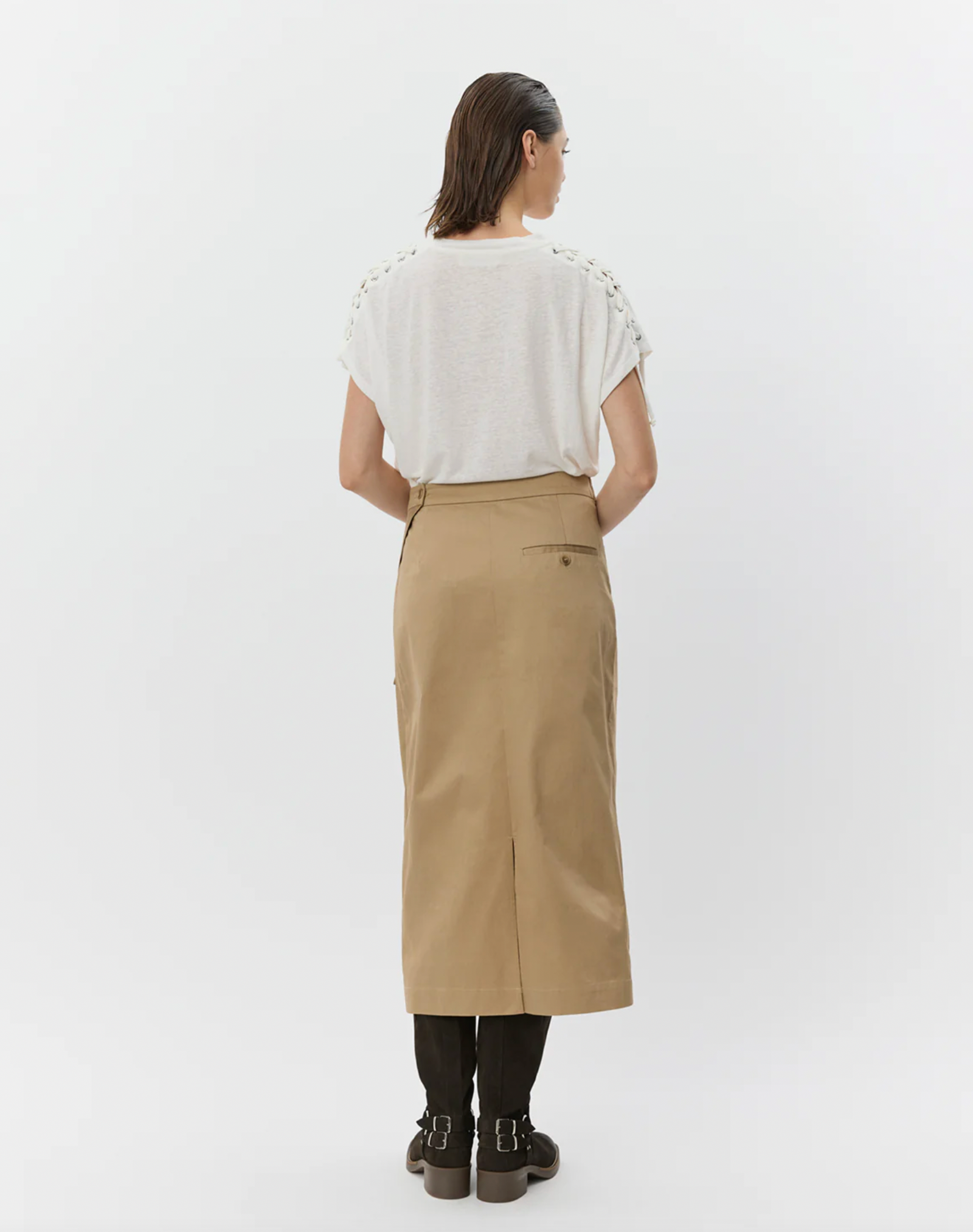 Short sleeves with lace-up details along the shoulders