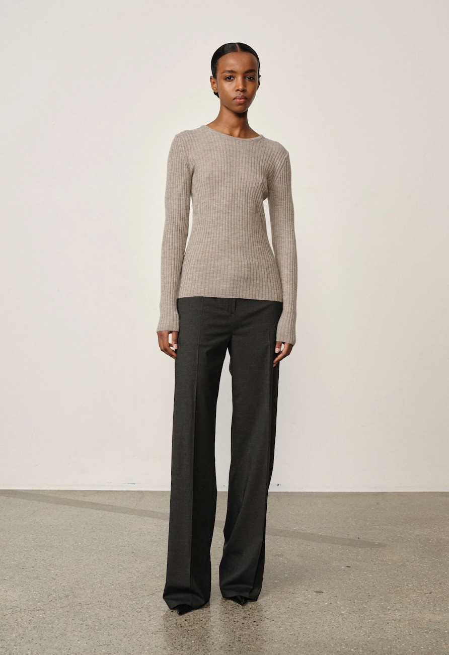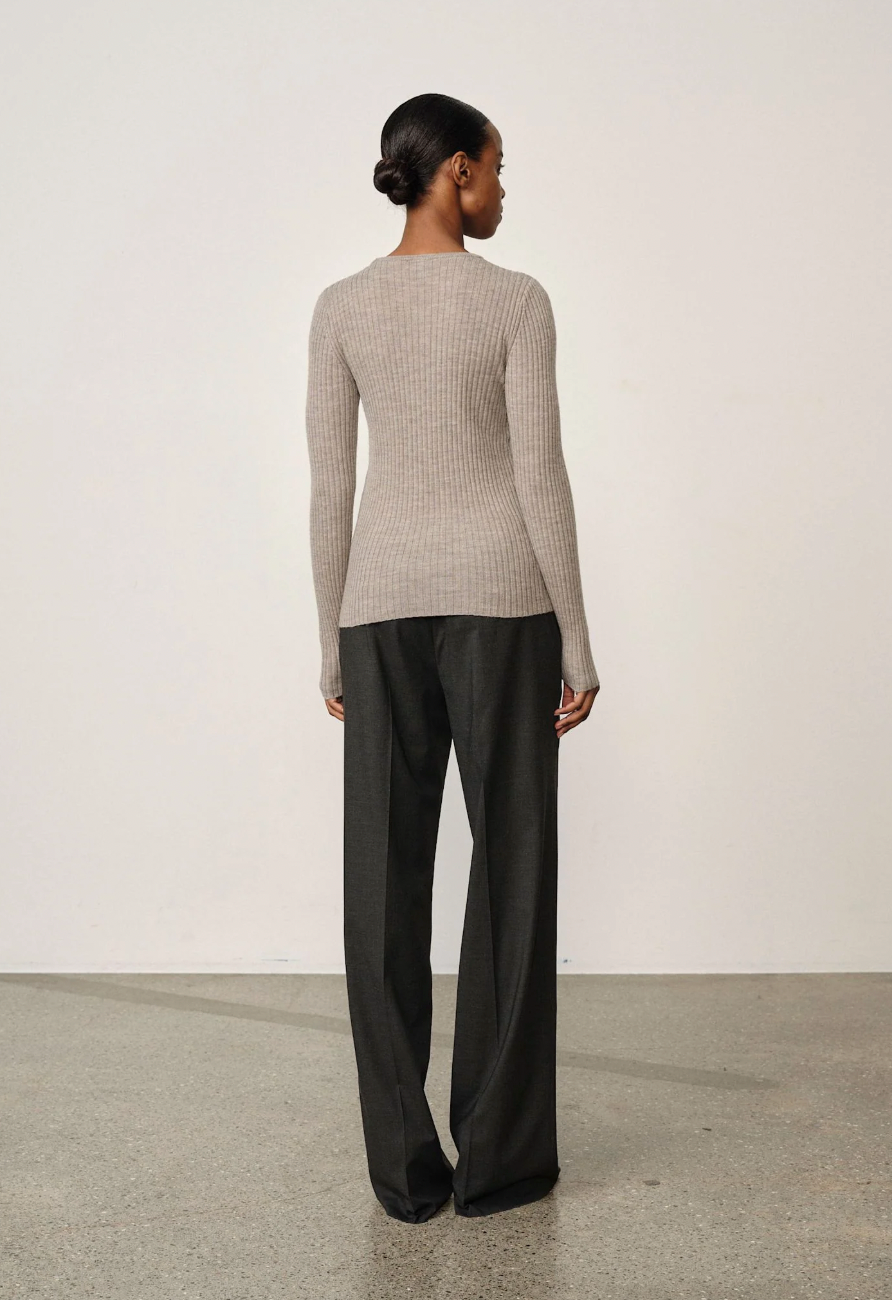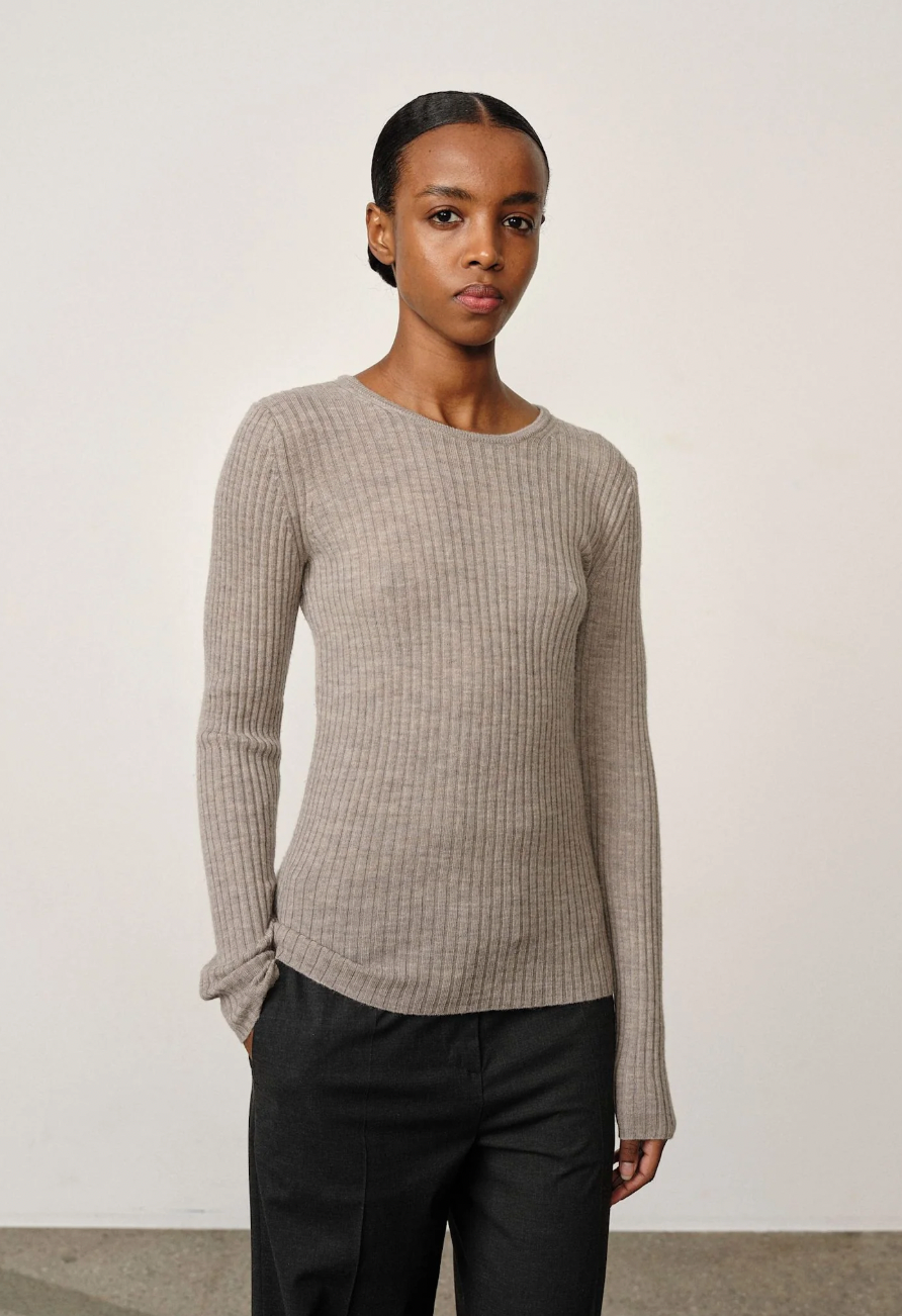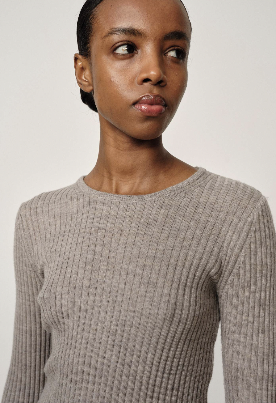 Introducing the Camb Blouse in Merino Wool: A round neckline sweater made from Merino wool, designed with a tight fit.