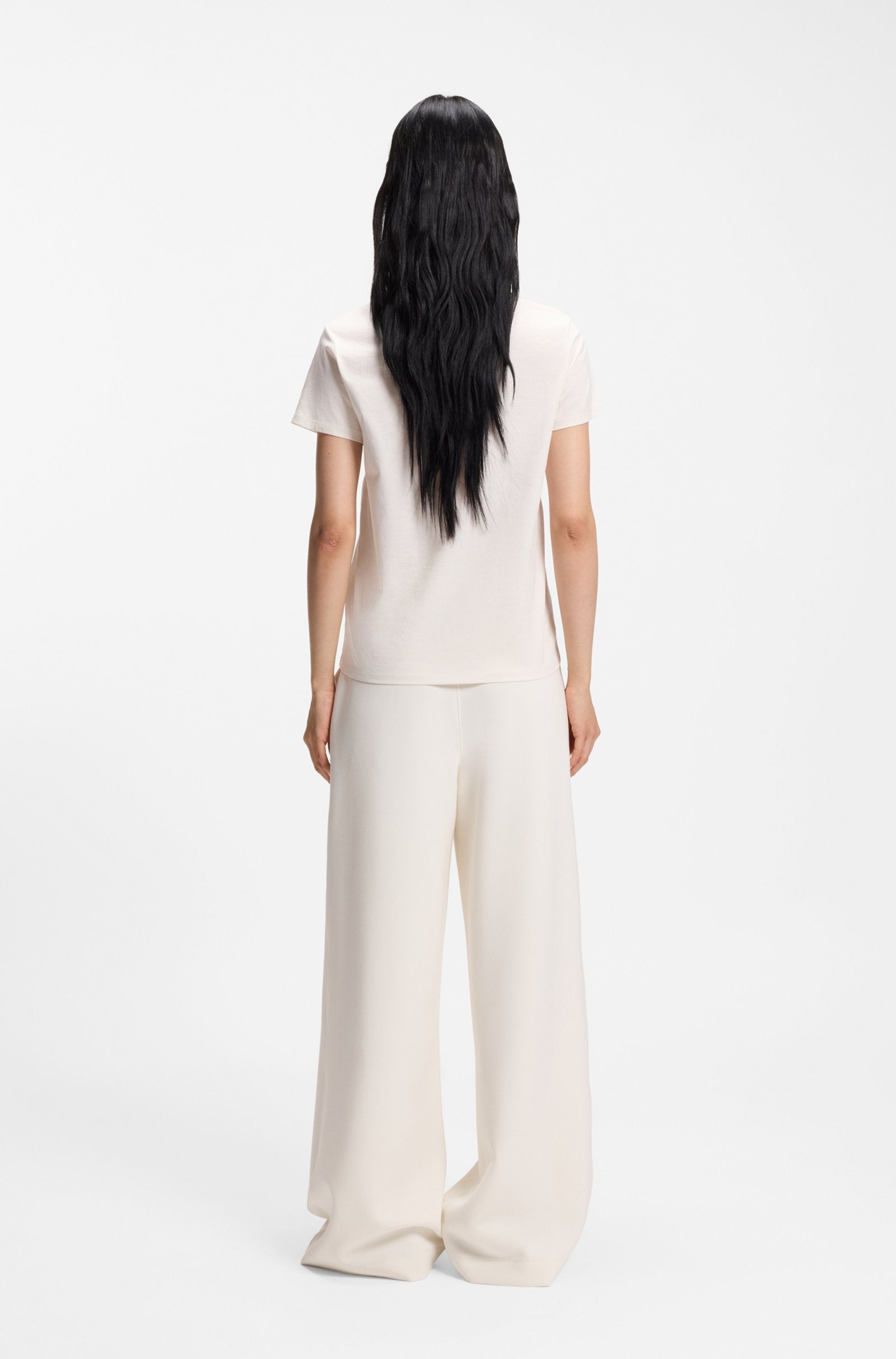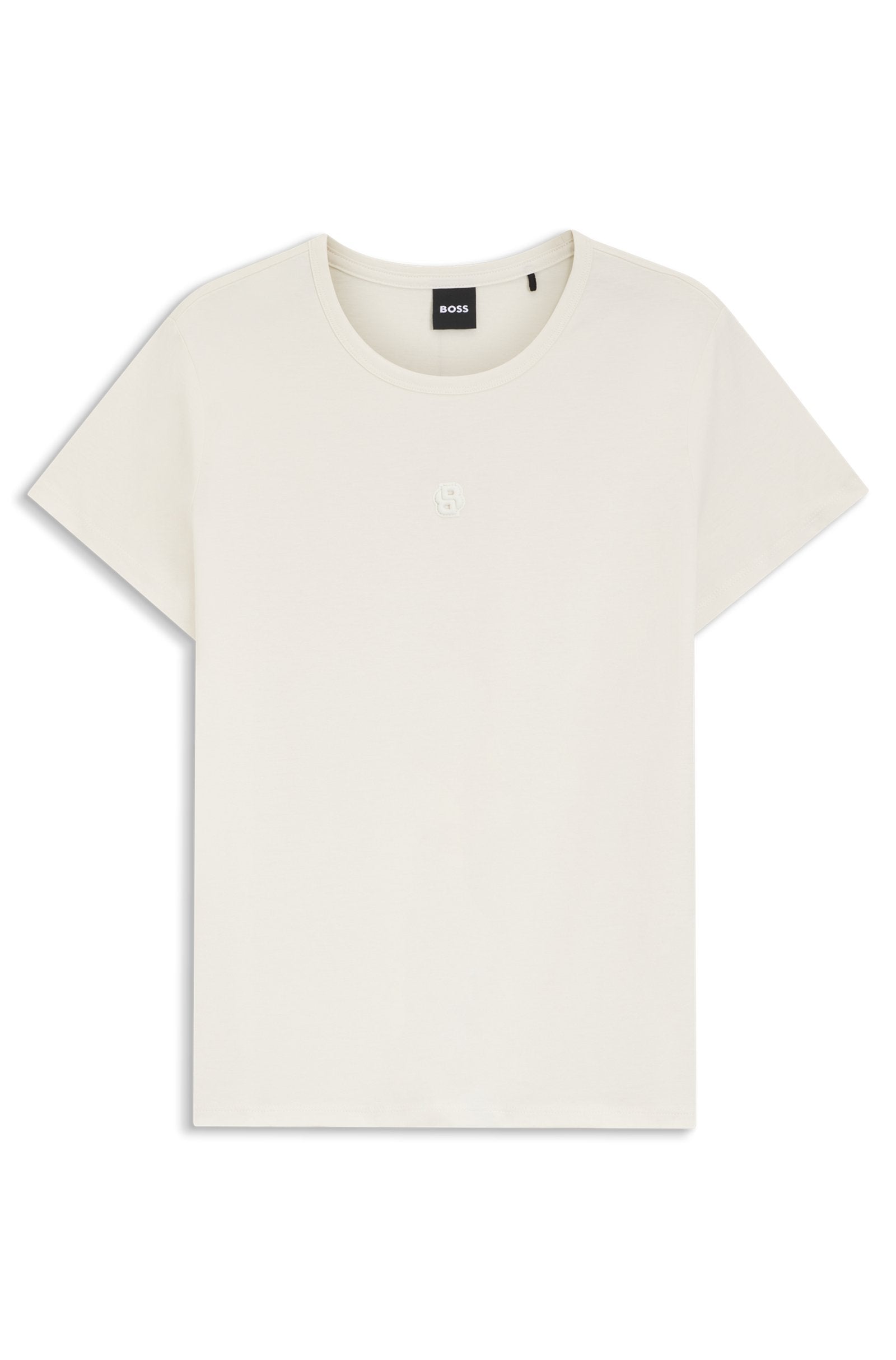Create a variety of everyday looks in comfort with the super-soft mercerized cotton of this BOSS Womenswear T-shirt. Easy straight fit.