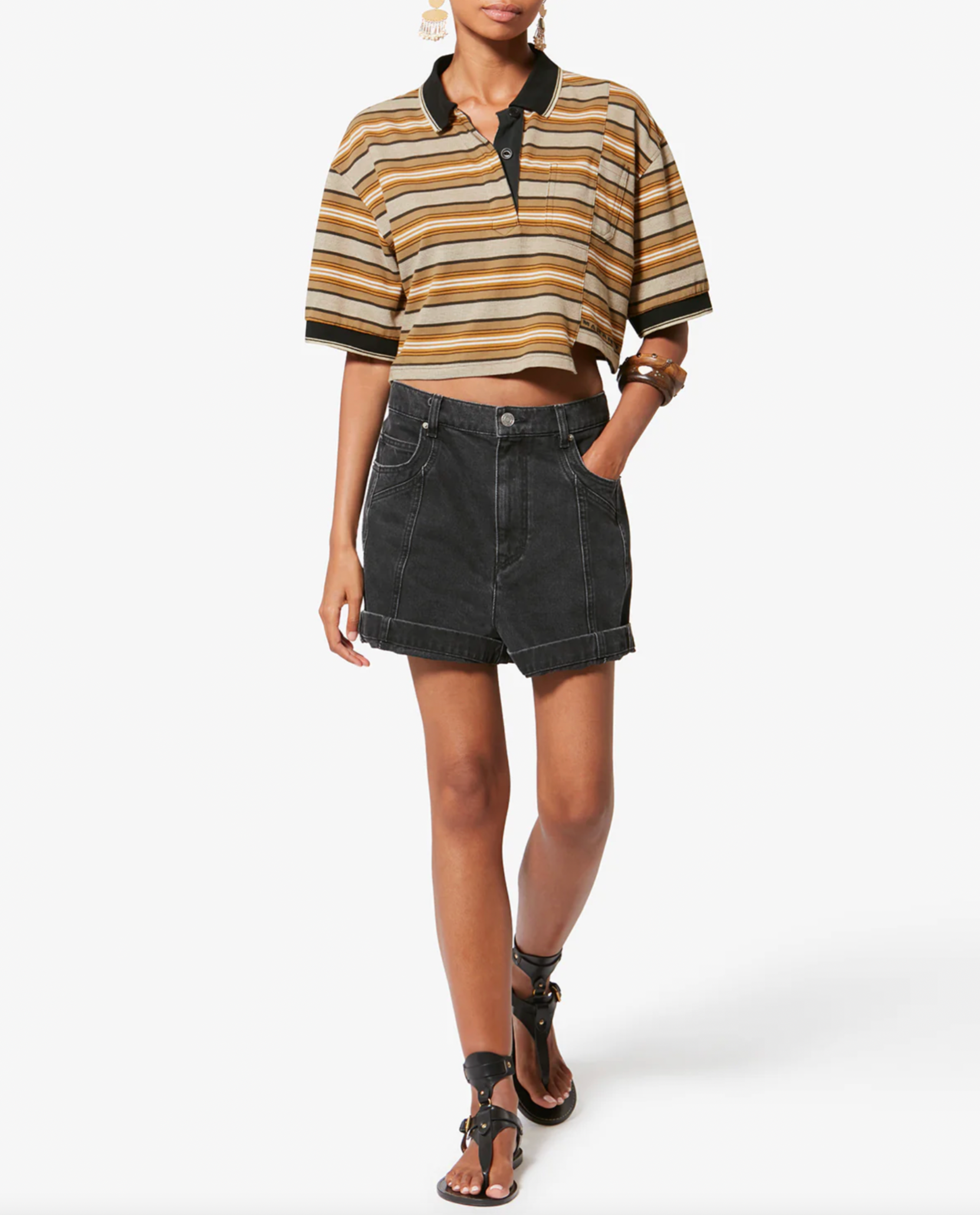 Striped organic cotton piqué polo top.