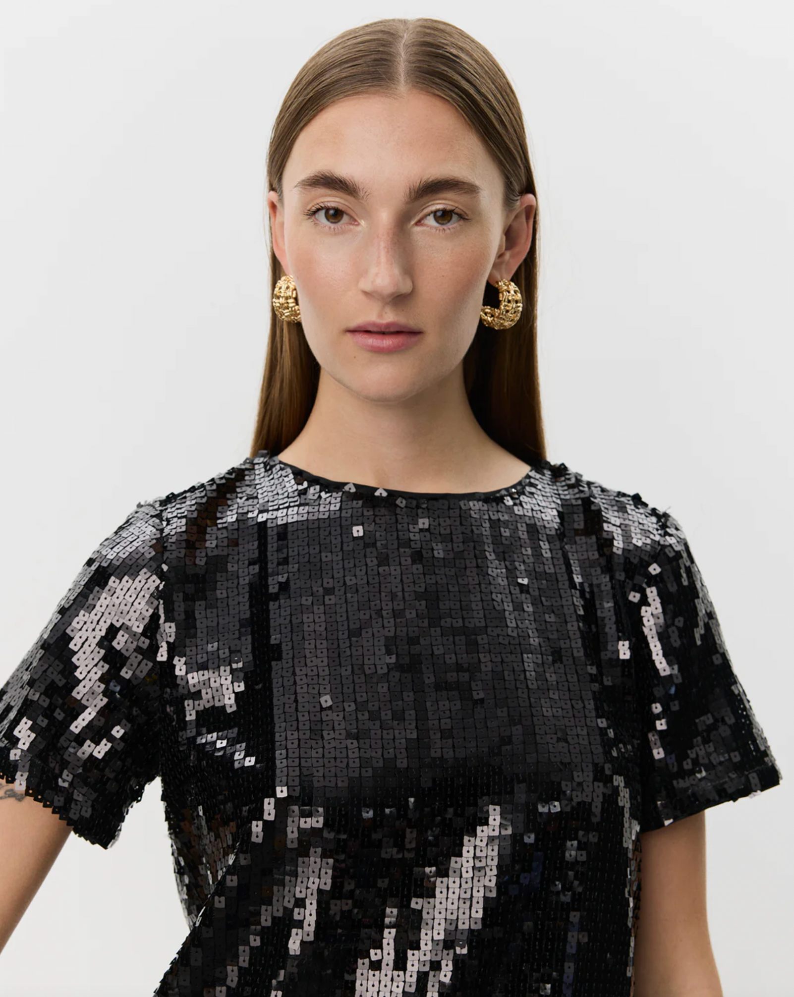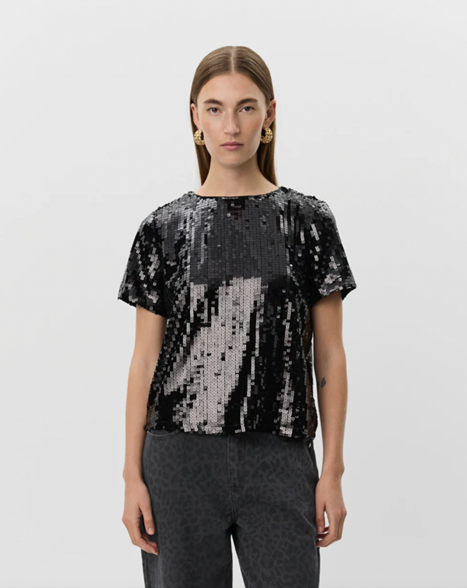 Black sequin t-shirt with short sleeves from Sofie Schnoor.