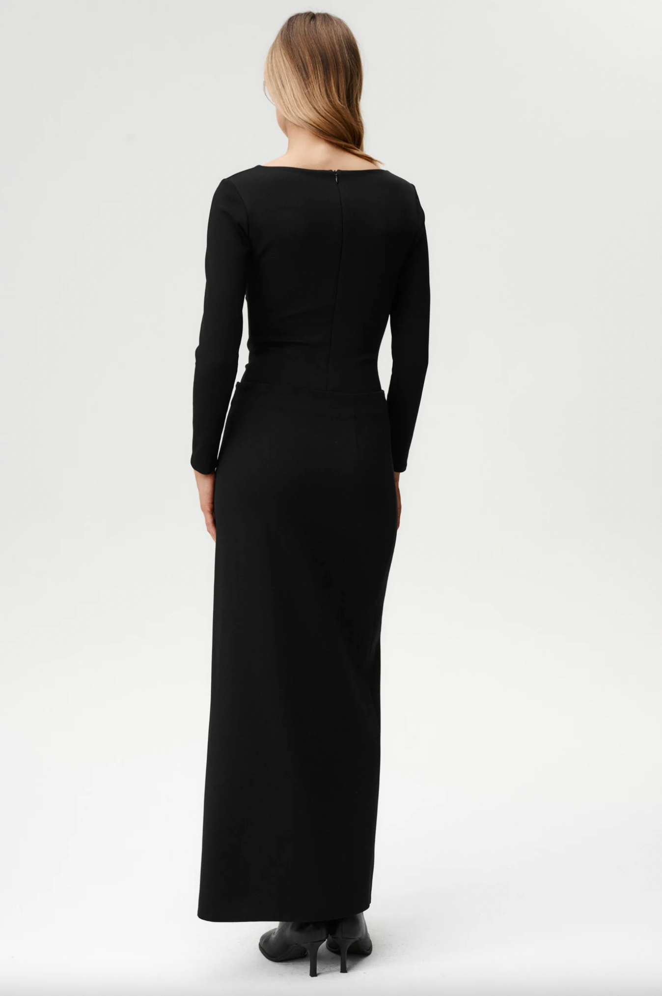 Dense, body-contouring fabric for shaping silhouette.