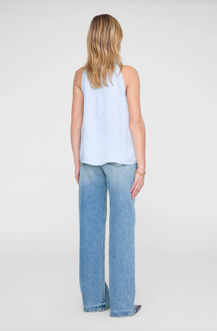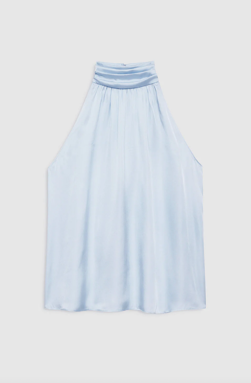 A feminine high neck top crafted in a lightweight 21 mm silk-rayon fabrication.