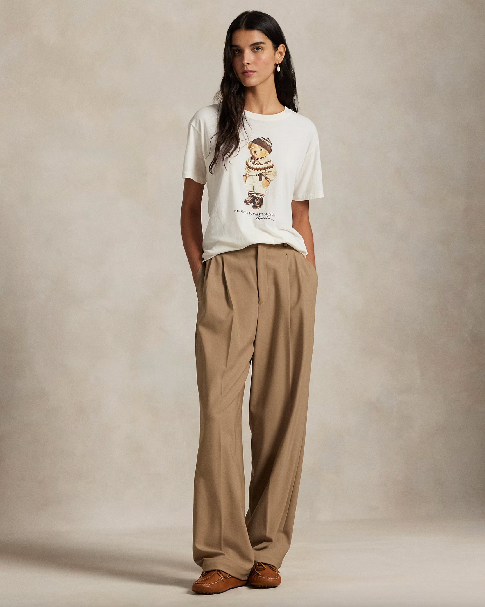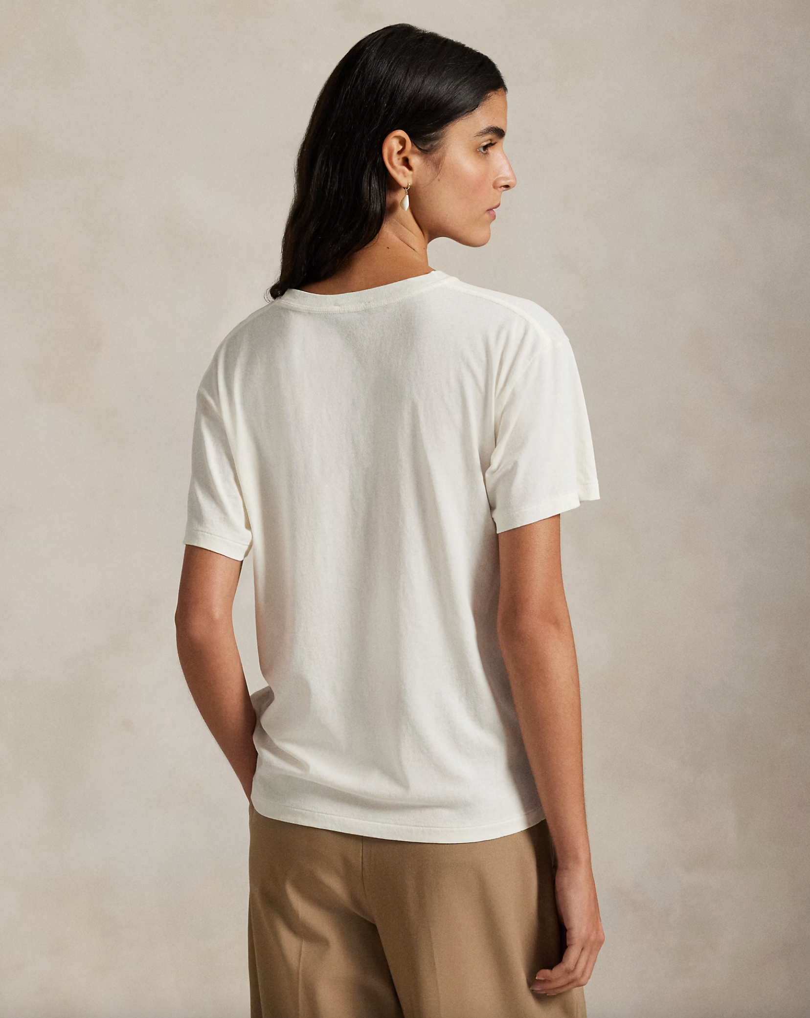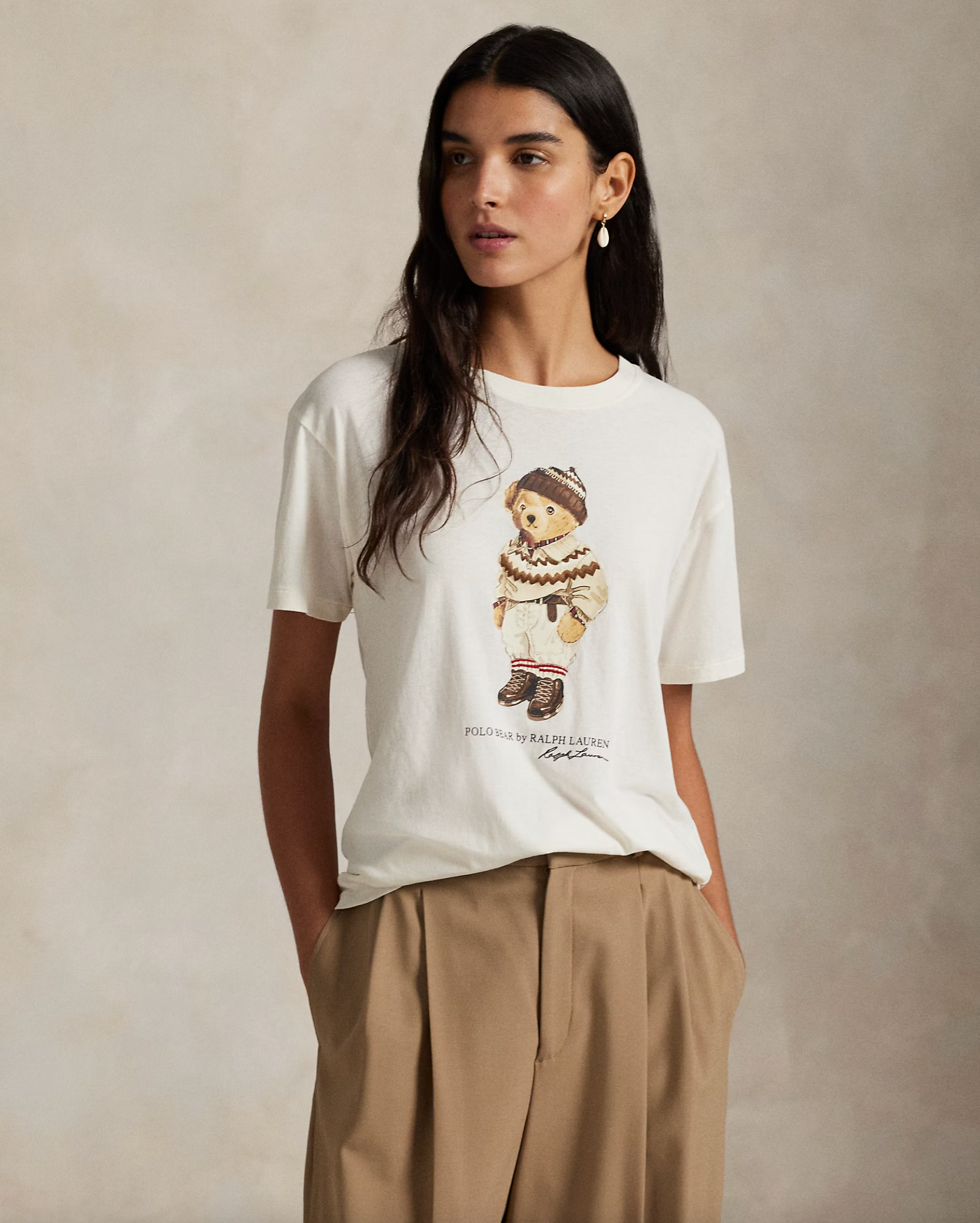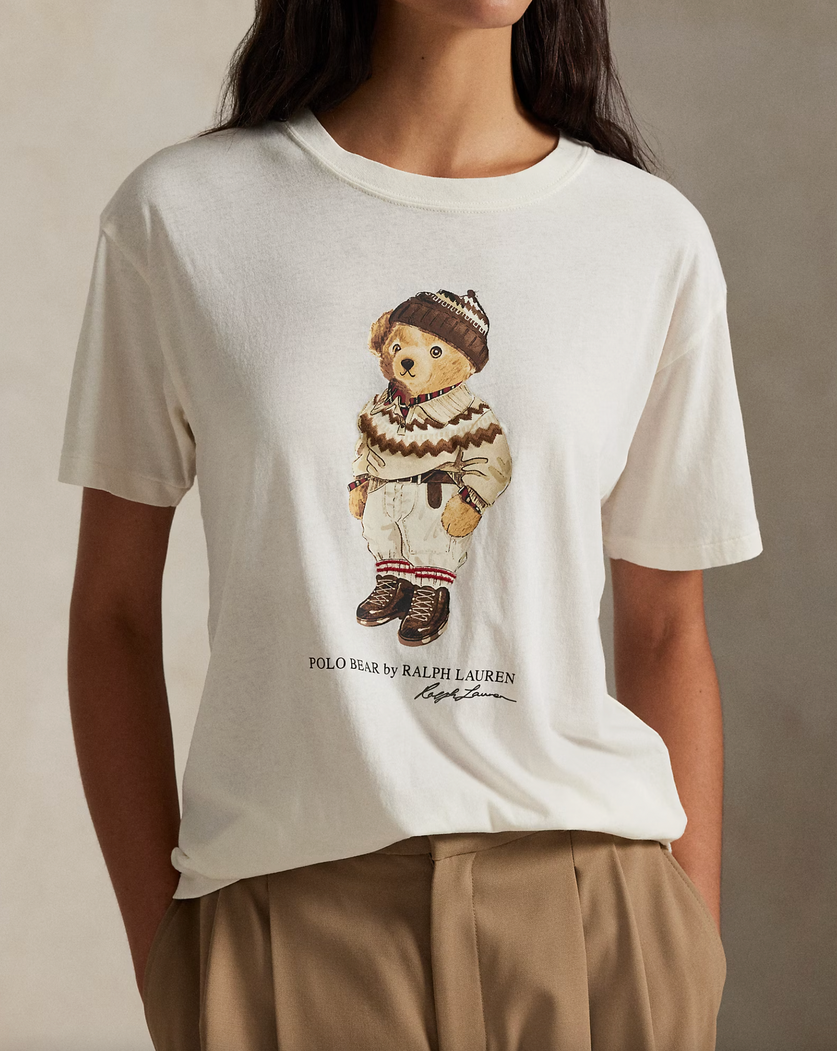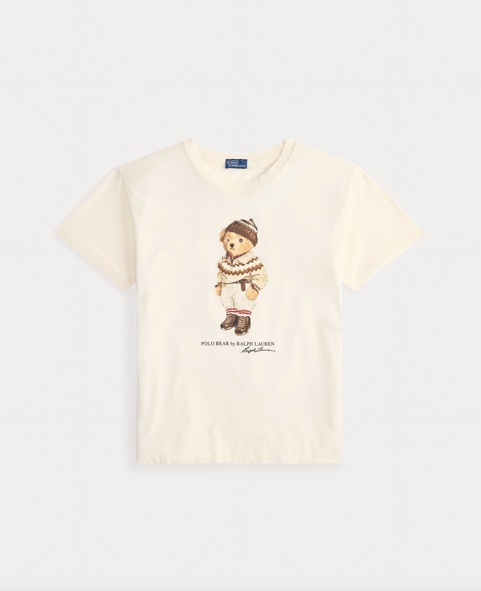 Cut with cotton jersey, this crewneck tee is rubber-printed with our signature logo and the Polo Bear dressed in a cold weather Ralph Lauren look.
