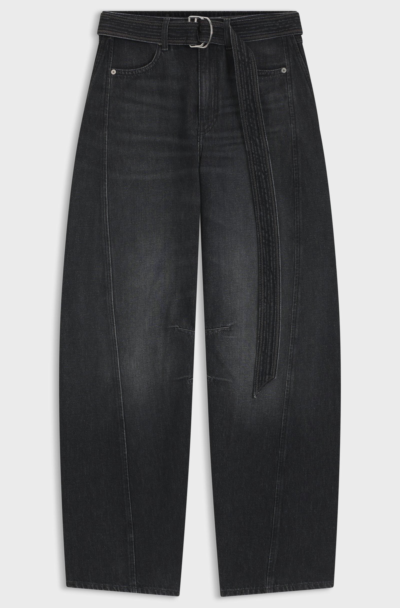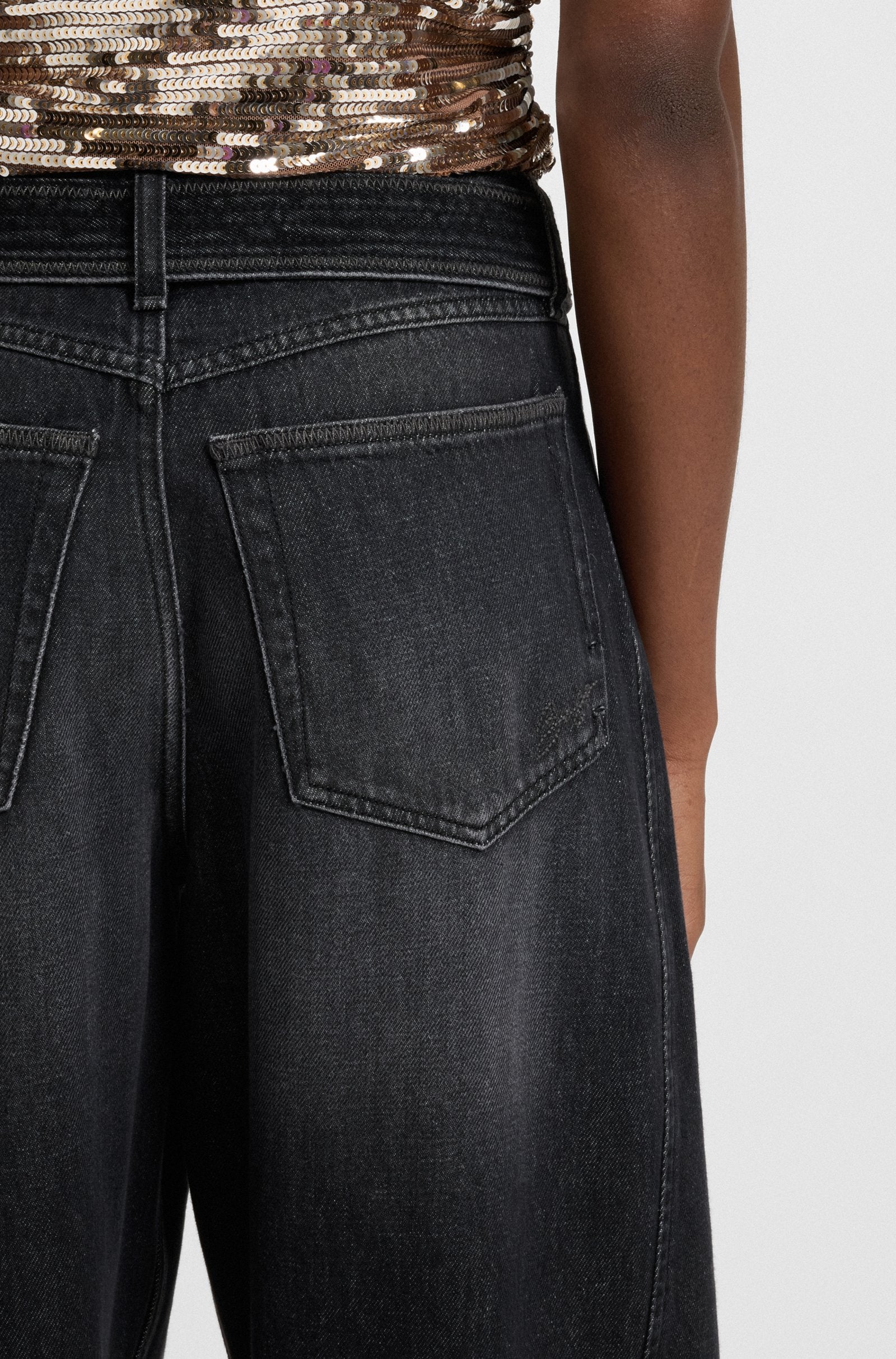 In black-washed rigid denim, these BOSS Womenswear jeans embrace the modern balloon cut in style. Long, detachable D-ring belt with stitched details.