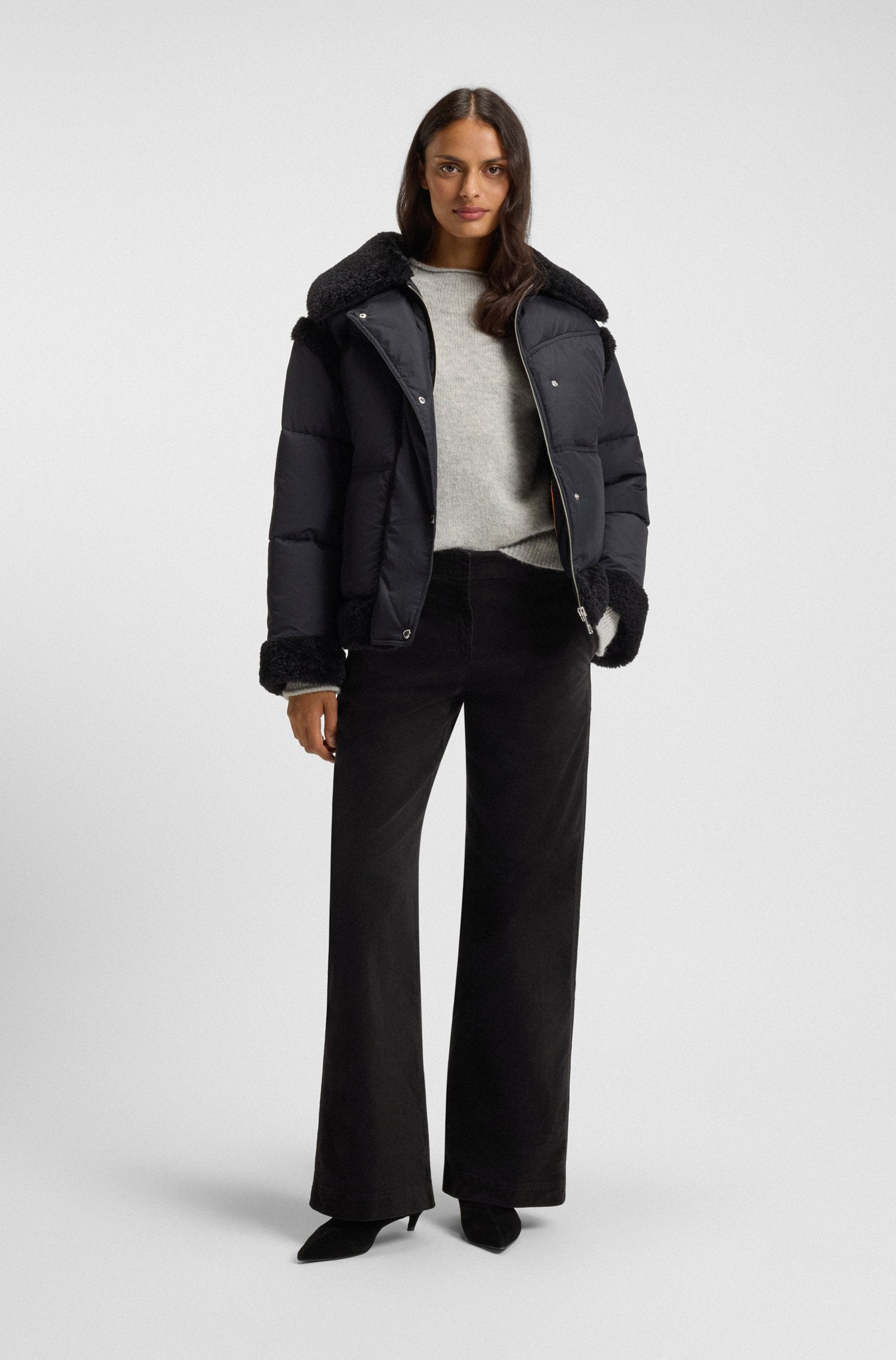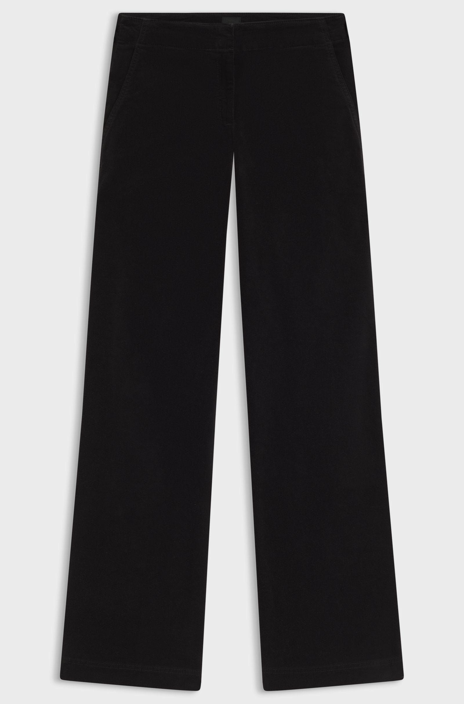 Crafted in wintry velvet made from stretch cotton, these BOSS Womenswear trousers are a fresh casual option. Straight leg with clean hook-and-eye closure.