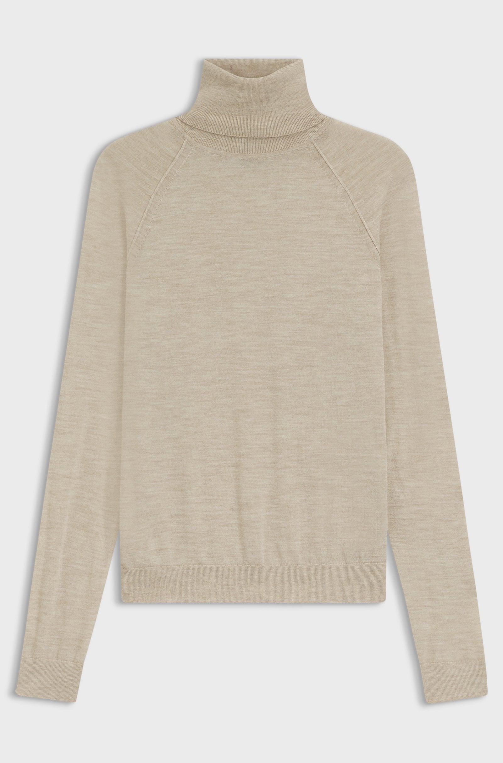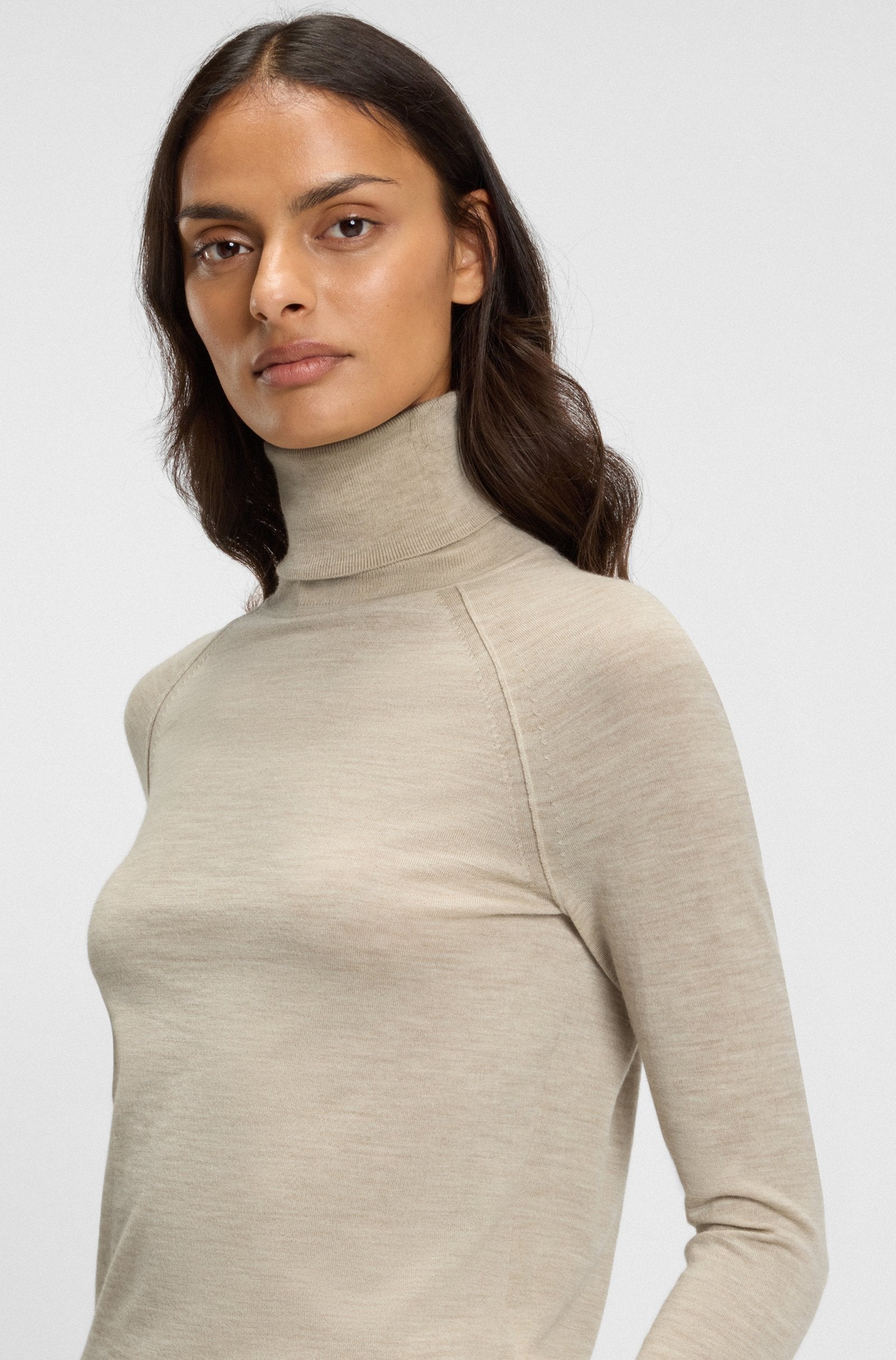 Offering endless layering options, this BOSS Womenswear sweater is knitted in superfine merino wool for natural temperature regulation and breathability. Sleek rollneck profile.