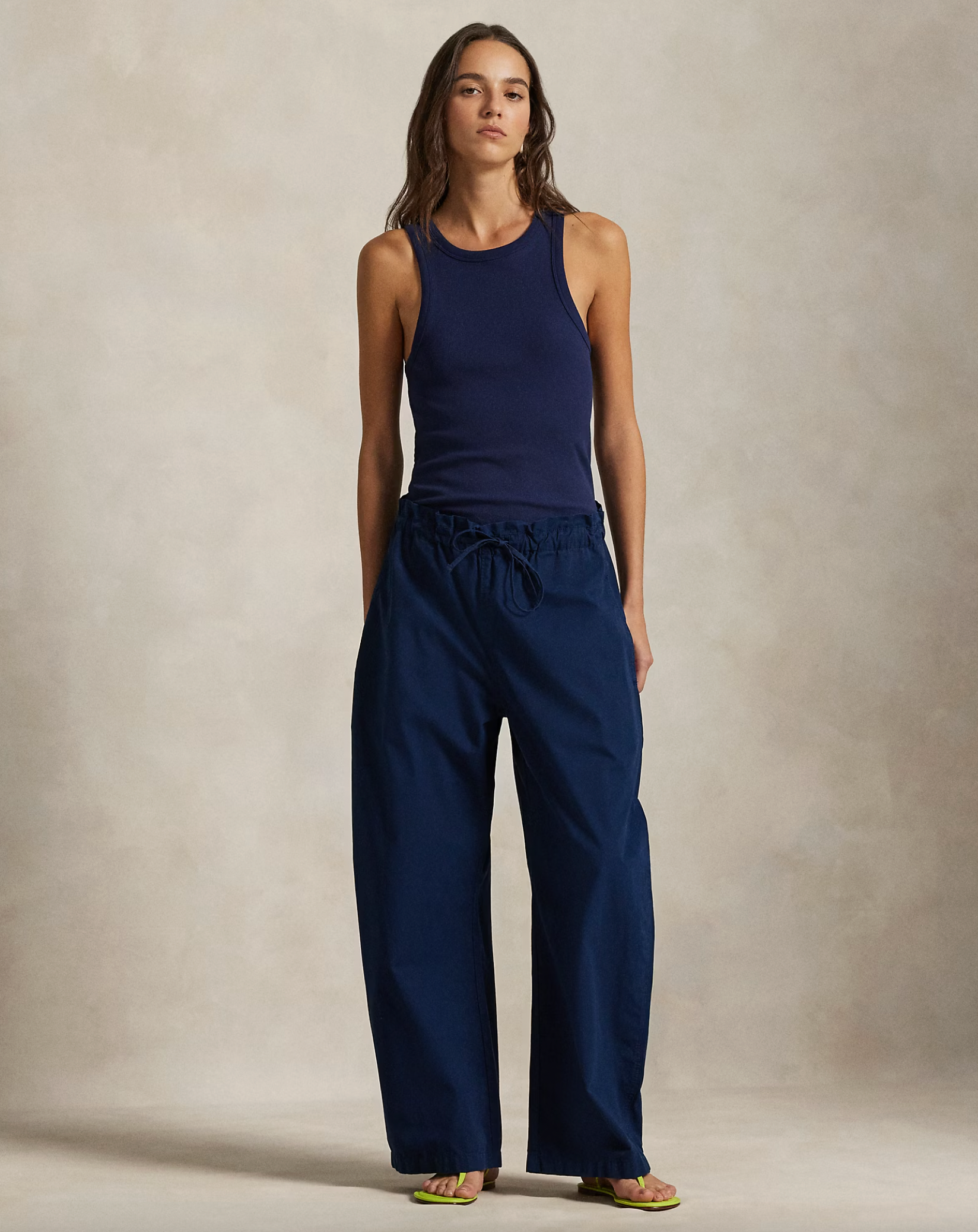 Woven with medium-weight cotton for a silky smooth hand, these pants offer a tapered silhouette that moves with you. The design features a drawstring waist, expertly curved inseam, and convenient side on-seam pockets.