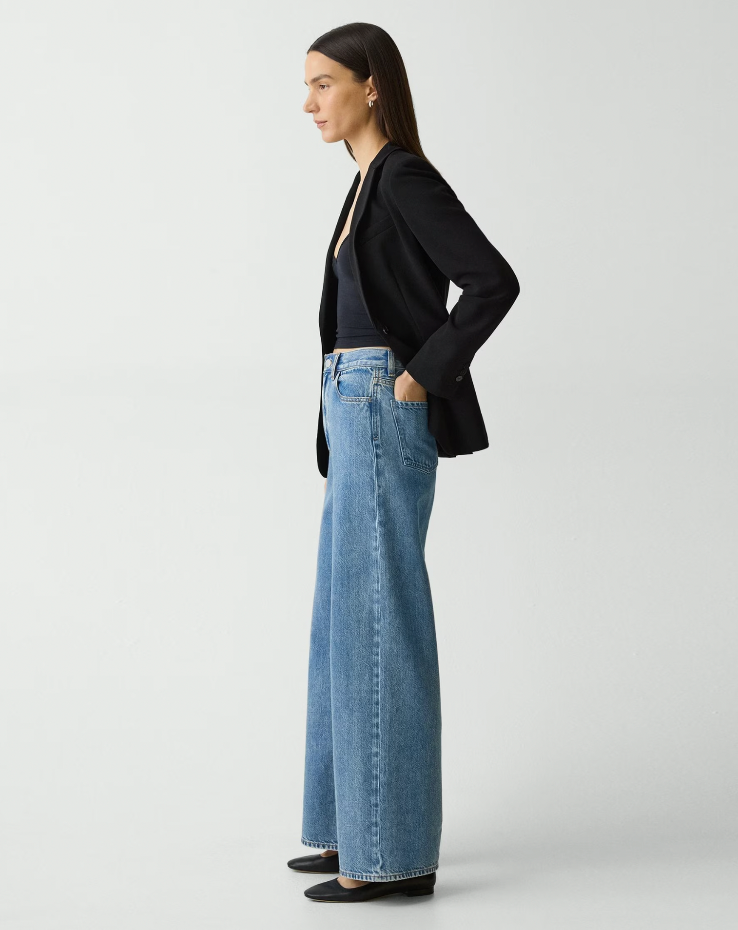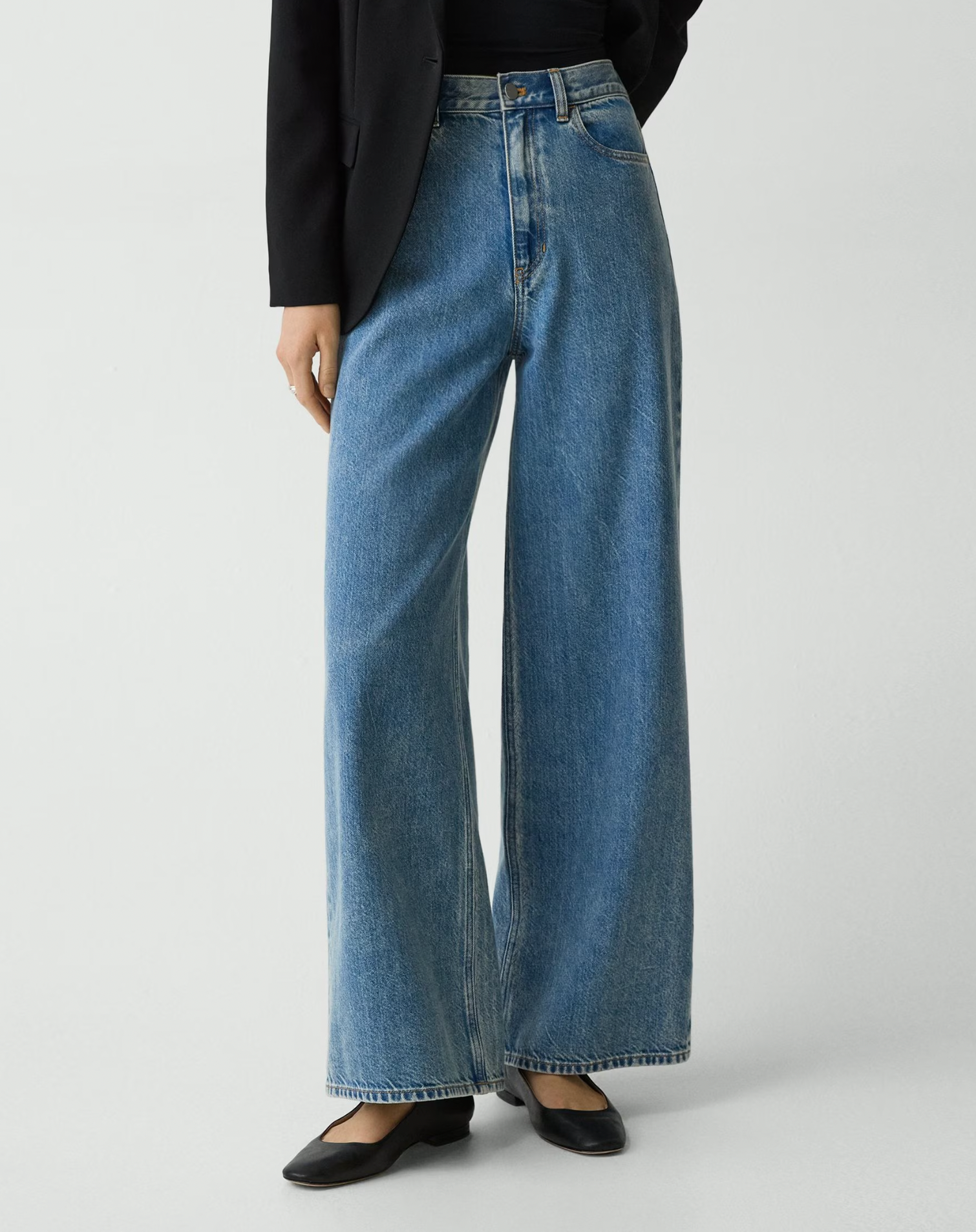 Cut for a high-waisted fit, this five-pocket pant features a full length and wide-leg silhouette. Produced by a leading denim supplier in Turkey, this style combines certified regenerative cotton, certified post-consumer recycled denim, and lyocell sourced from certified responsibly managed forests for a beautiful drape and soft-hand feel.