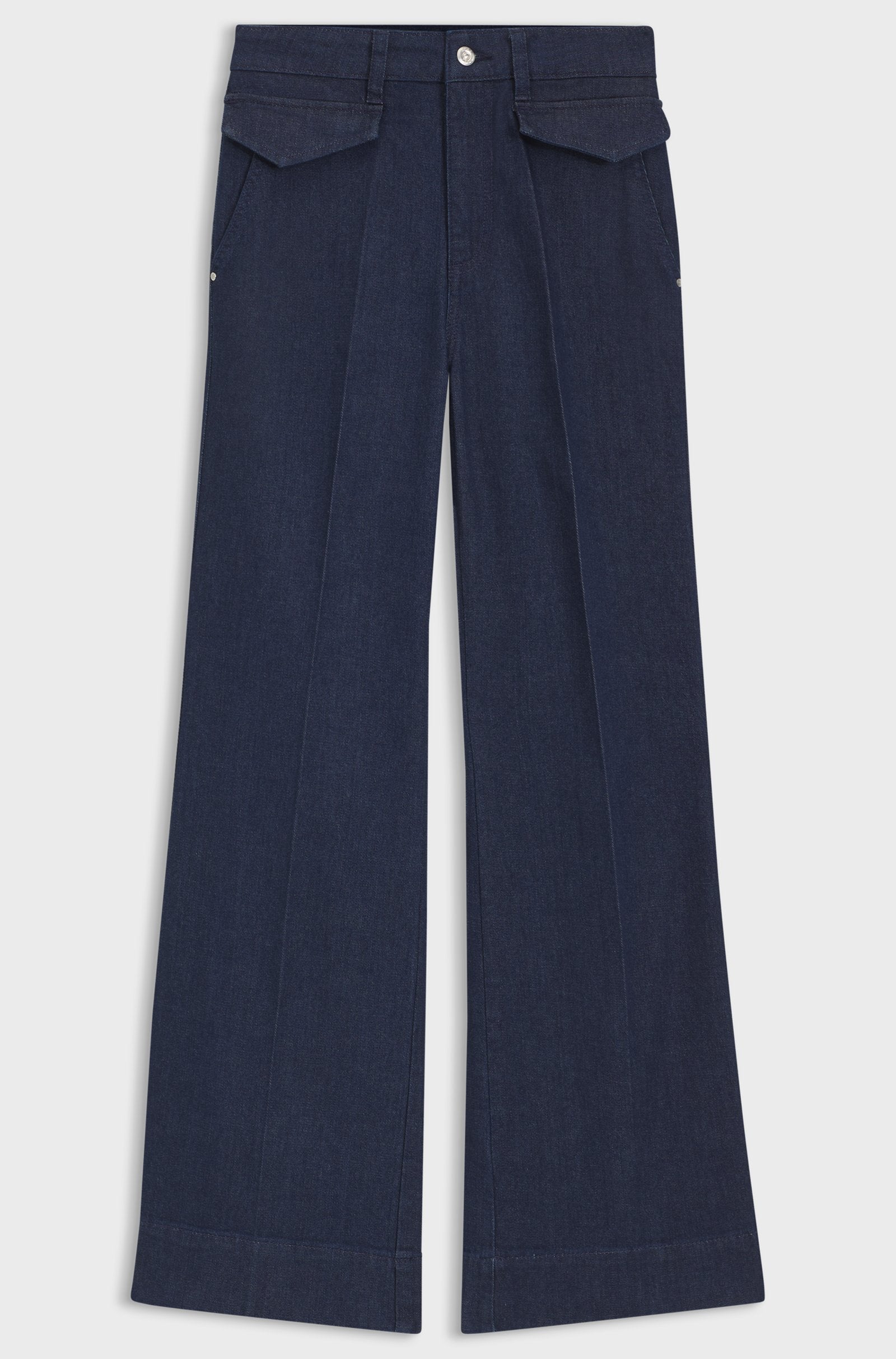 Create luxurious casual looks with the Italian denim and contemporary flared cut of these BOSS Womenswear jeans. Raw blue finish. Added stretch for comfort. This product contains at least 80% better raw materials. This piece is made with at least 80% cotton derived from regenerative agriculture. Regenerative agriculture prioritises the preservation and restoration of natural environments, aiming to enhancebiodiversity, maintain water quality, and improve soil health.