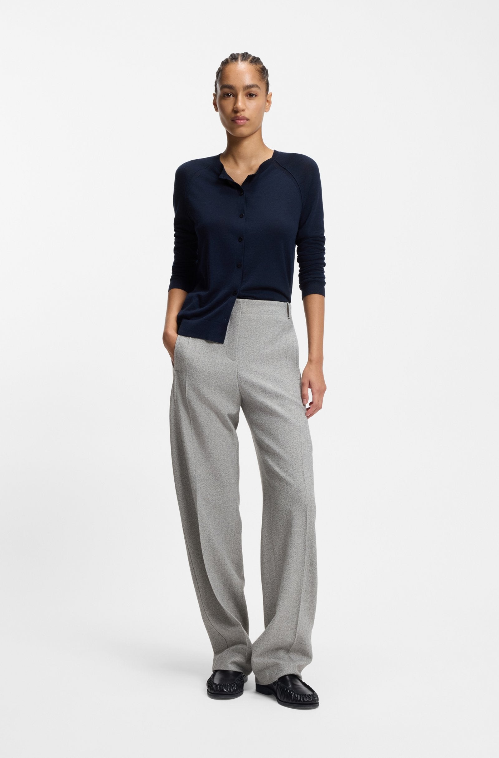 With their low rise and straight fit, these BOSS Womenswear trousers create a classic formal silhouette. Crafted in sharkskin twill blended with wool and stretch.