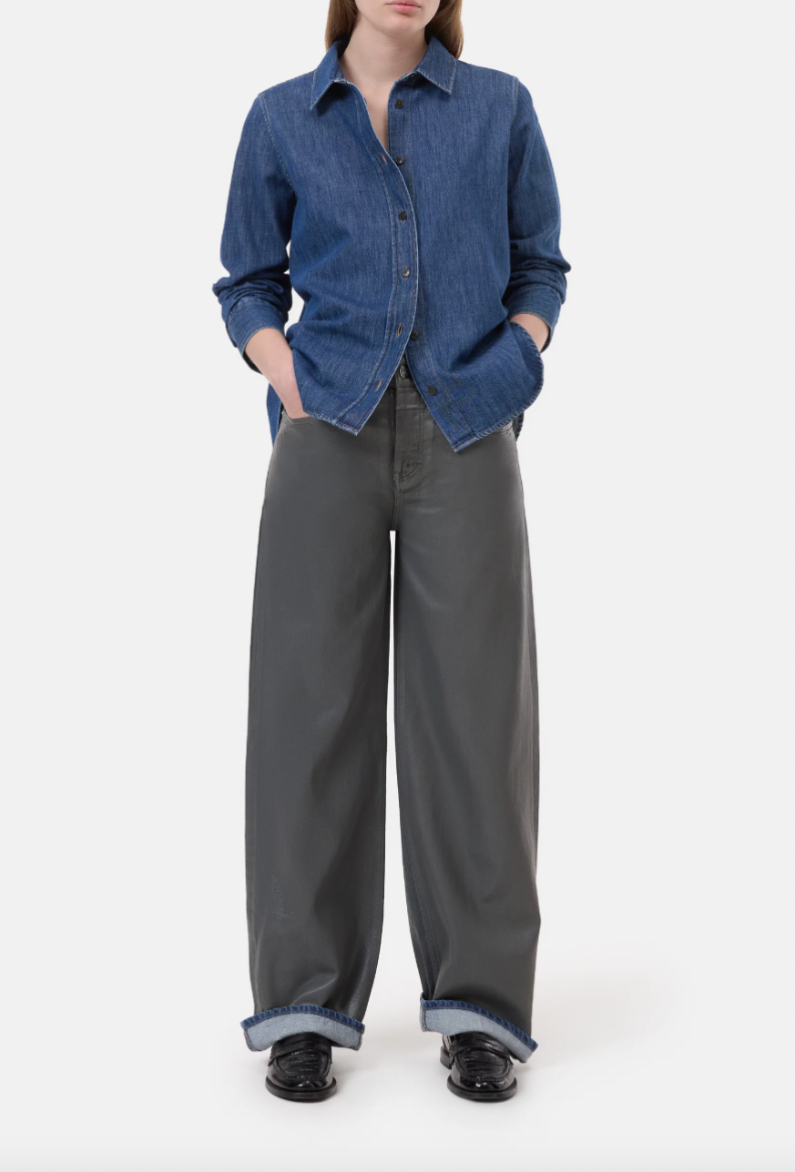 This denim shirt offers a distinctive strap detail and open slit at the back. This deep indigo blue garment is crafted from super soft denim in an authentic right-hand twill weave. Our signature angled sleeve plackets and a gently curved hem complete the look. Crafted in Portugal from organic and recycled cotton.