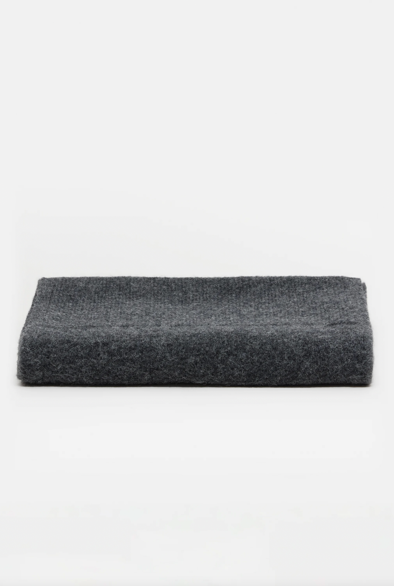 This knitted scarf utilises an innovative yarn, containing 6% elastane for a uniquely compact yet lightweight feel. Featuring a classic rib stitch construction, the scarf has a clean finish.