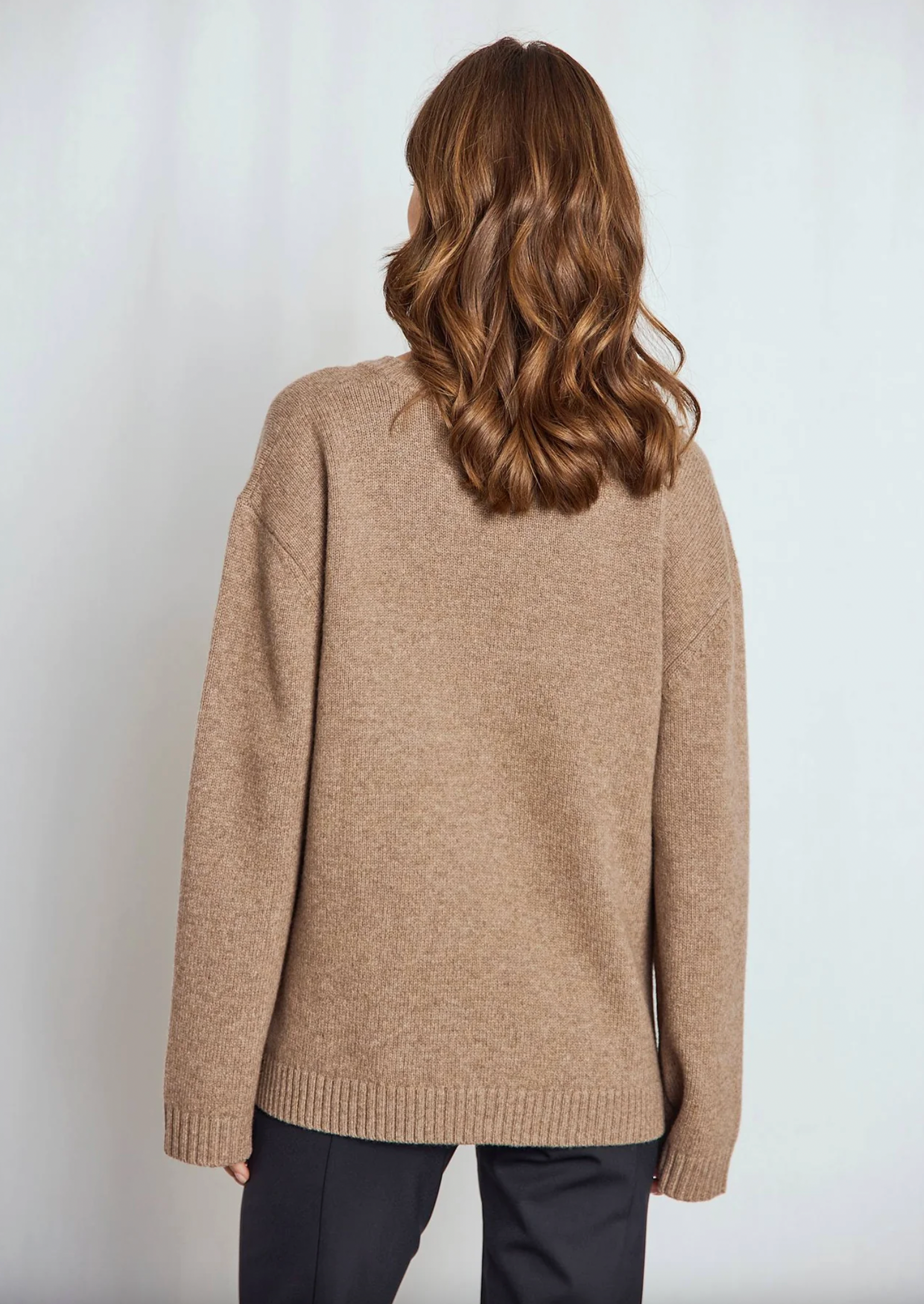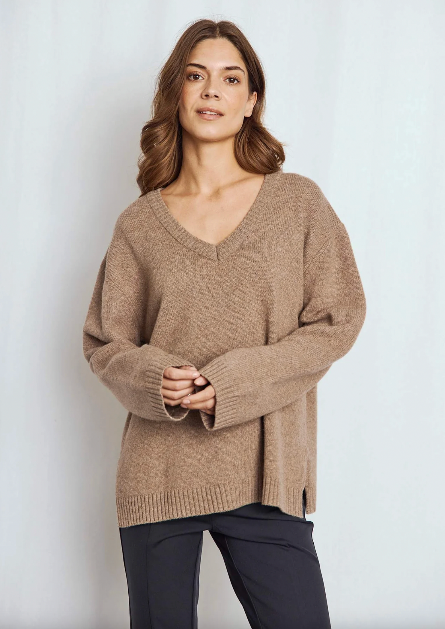 Heavy knit V-neck sweater in a warm blend of merino wool and cotton. Detailed with ribbing at the neckline, cuffs, and hem for a classic and refined look.