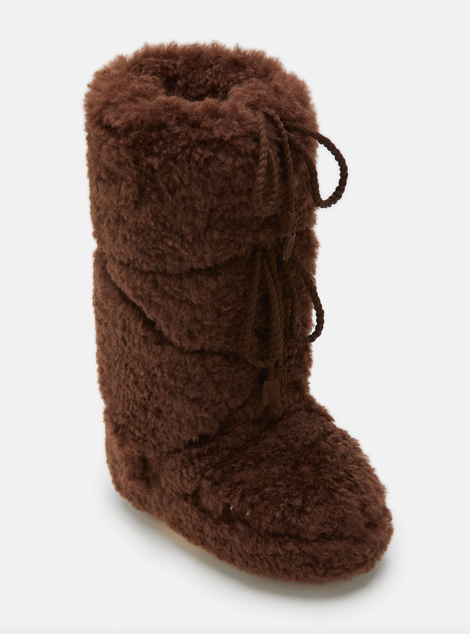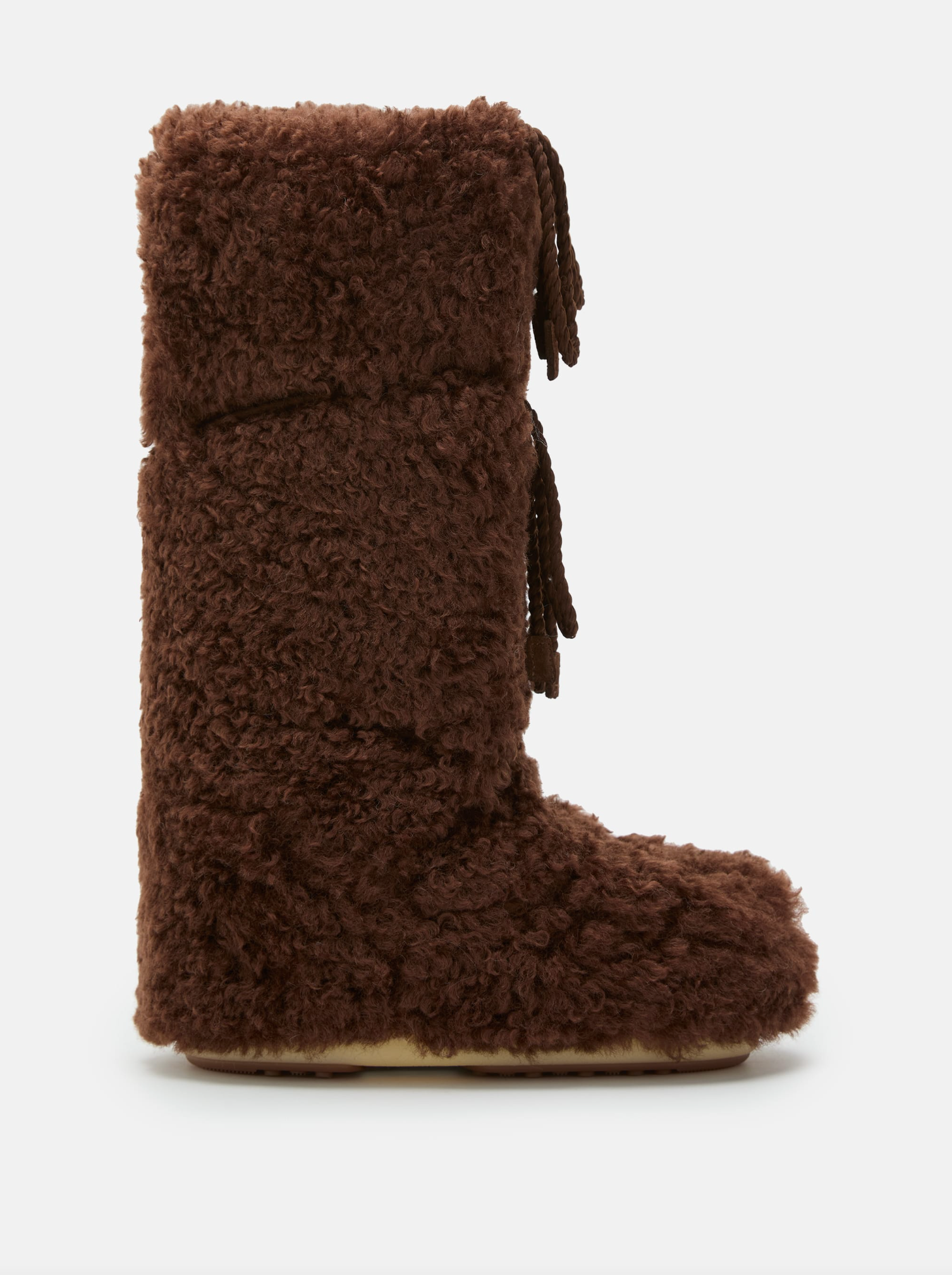A space-inspired winter hero: it doesn't get cozier than this Moon Boot Icon, made extra warm and irresistible with its soft faux shearling texture. Slightly taller than the original design for an even bolder silhouette, it features padded volumes, lightweight mid soles and suction pads on the rubber tread to provide grip and stability with every step.