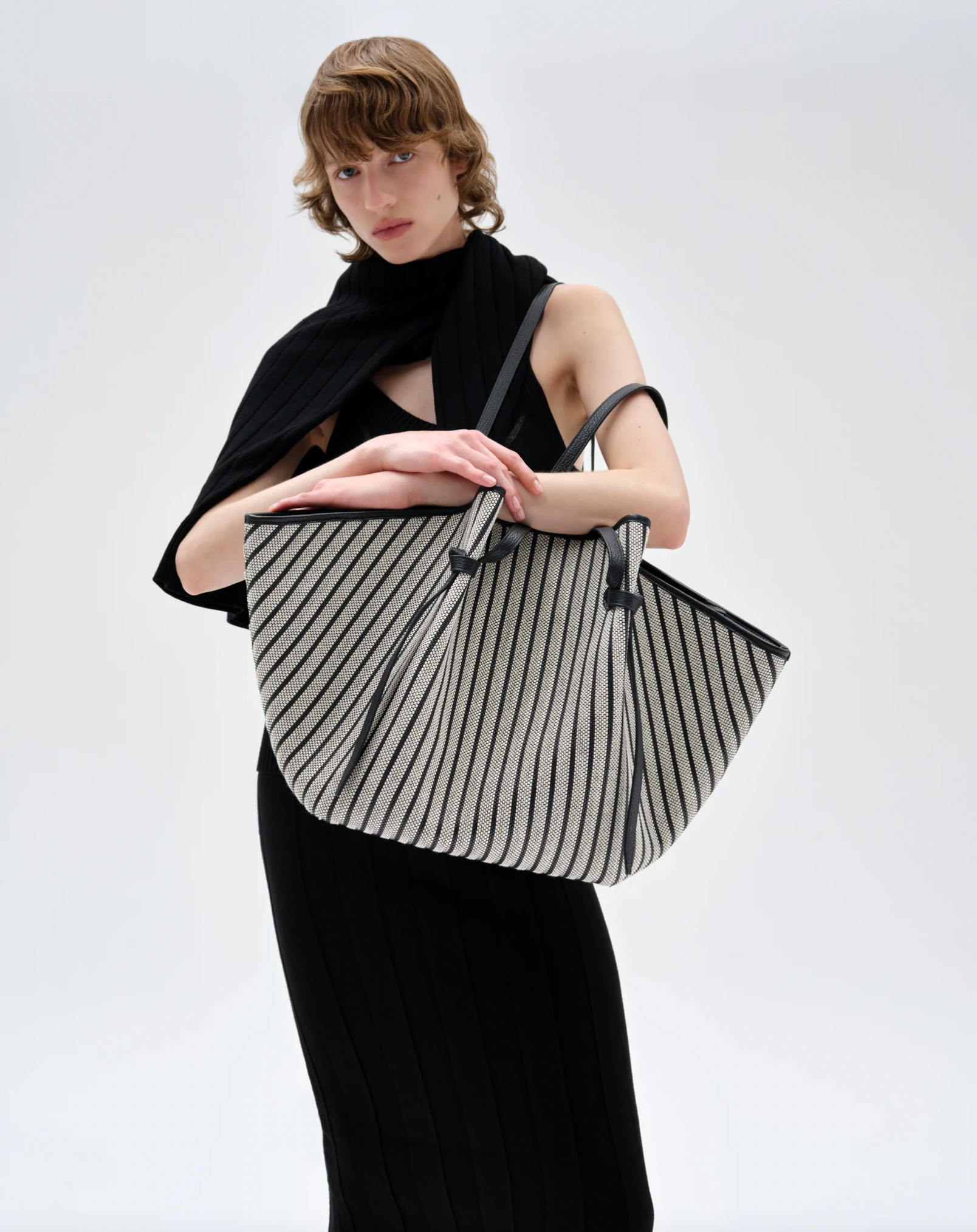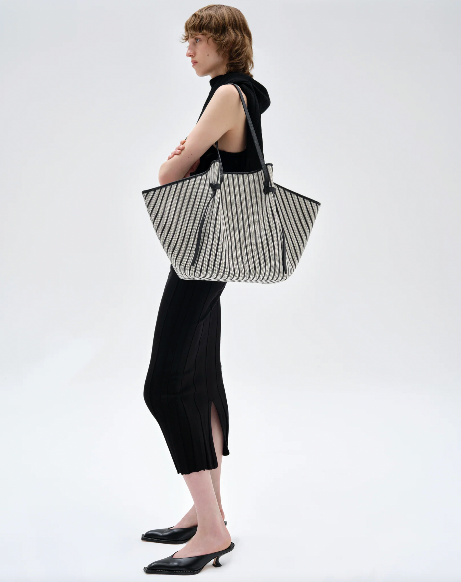 The XL Mochi in Striped Woven Canvas adds a warm, inviting touch to your look. Stylish and spacious, it carries your essentials and travels with you in soft, luxurious style. The new XL size in the Mochi series offers even more space for everything you need.