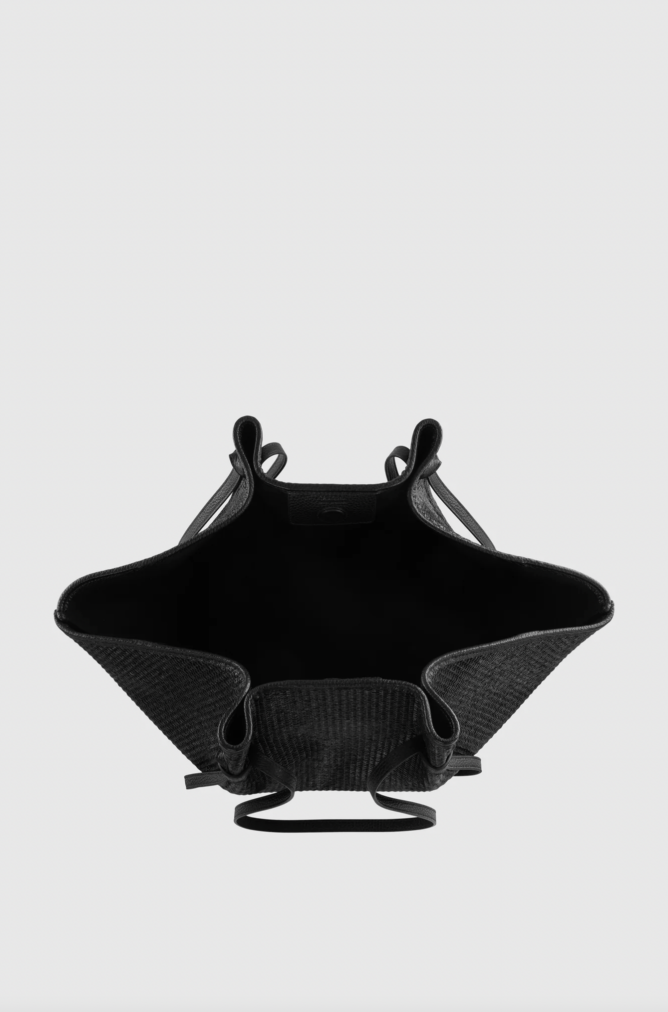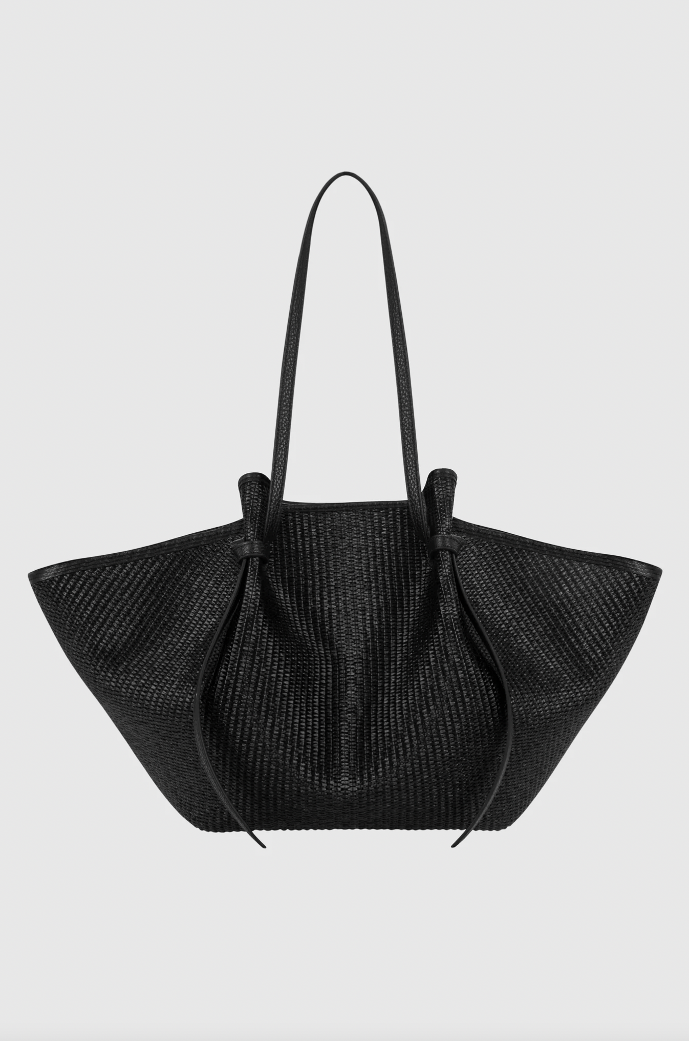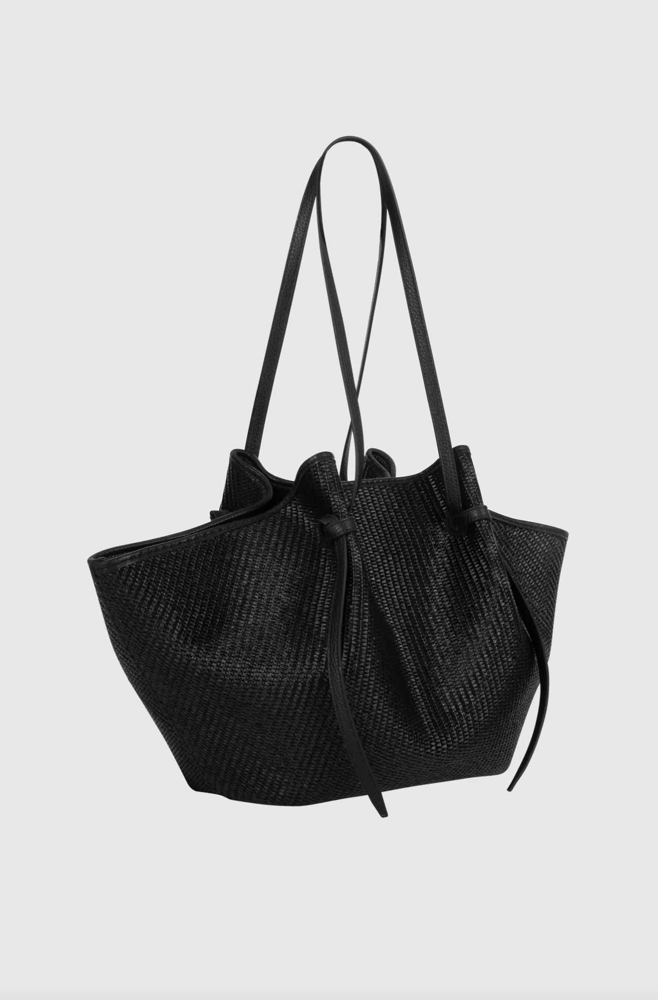 The Large Mochi is our elevated everyday Tote bag. The bag features our distinctive organic curves, folds and knots, which is crafted from luxurious Black Woven Raffia.