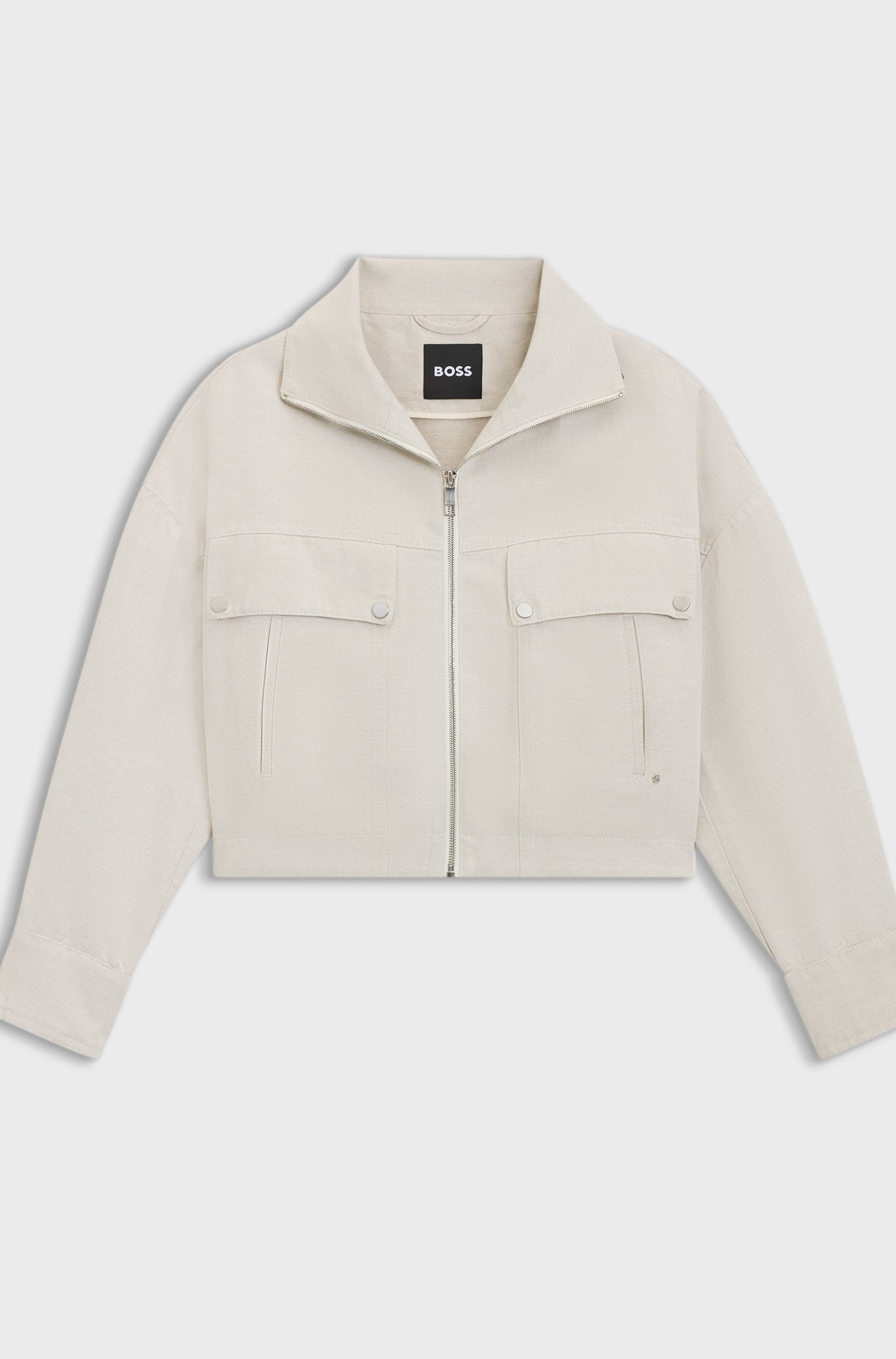 In fresh cotton-linen twill with a loose fit and high collar, this BOSS Womenswear blazer is super easy to style. Press-stud pockets.