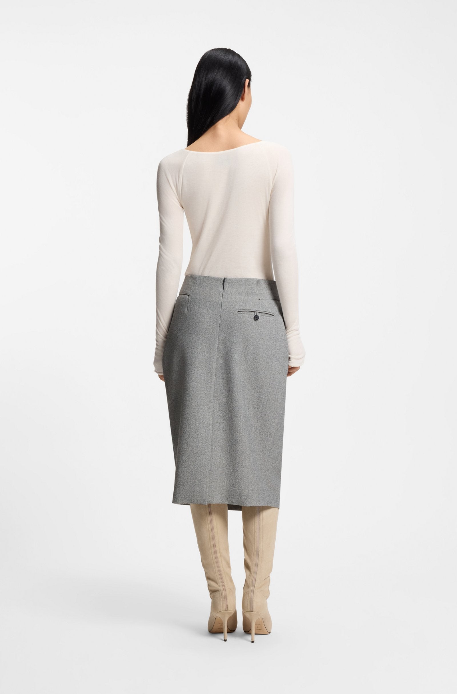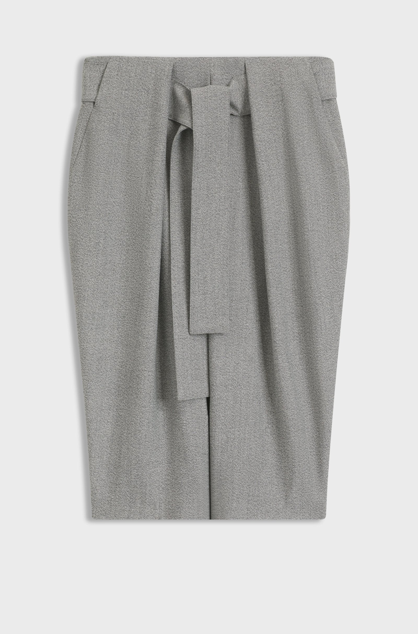 Create effortless modern silhouettes with the pleat front of this stretch-twill BOSS Womenswear skirt. Mouliné effect. Integrated tie belt.
