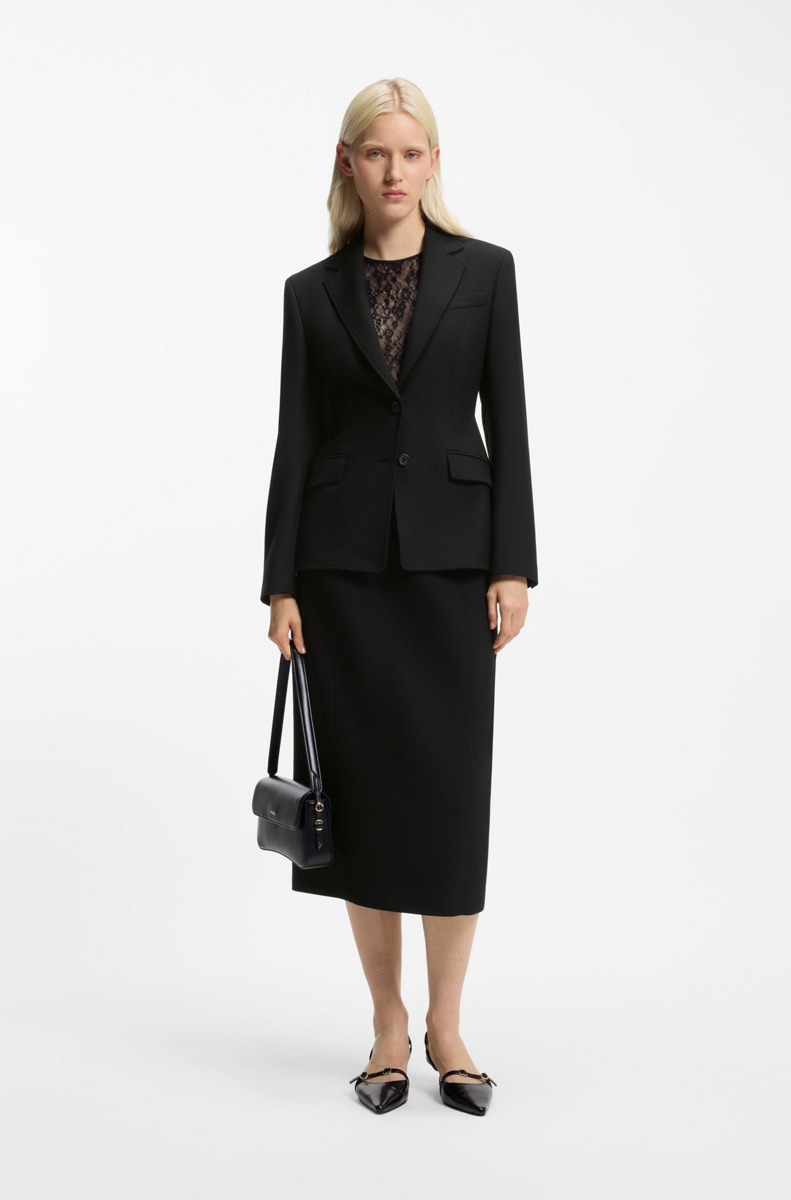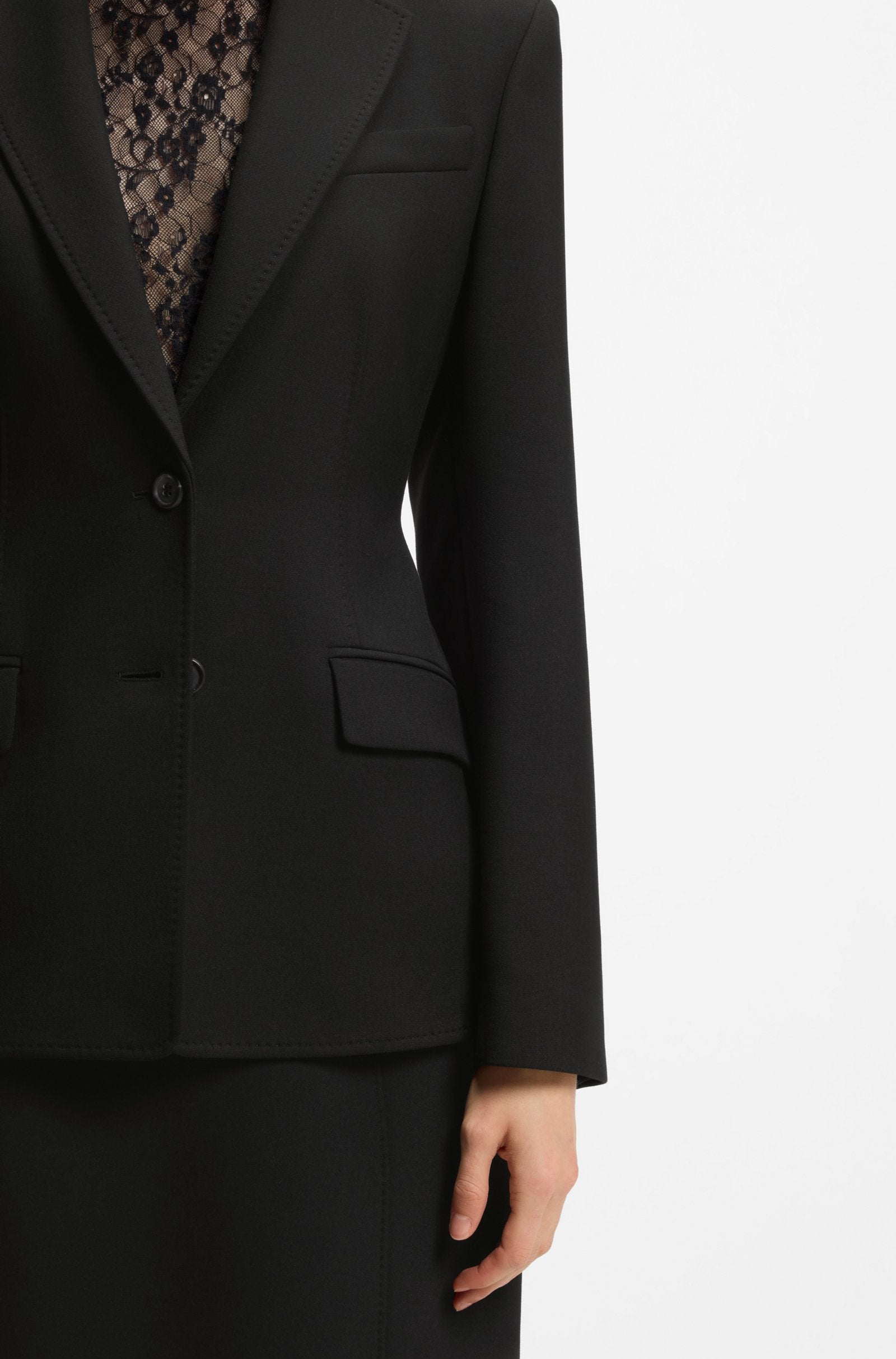 Cut to a straight fit with AMF stitching, this HUGO Womenswear blazer is a formal must-have. Stretch twill trimmed with real horn buttons.