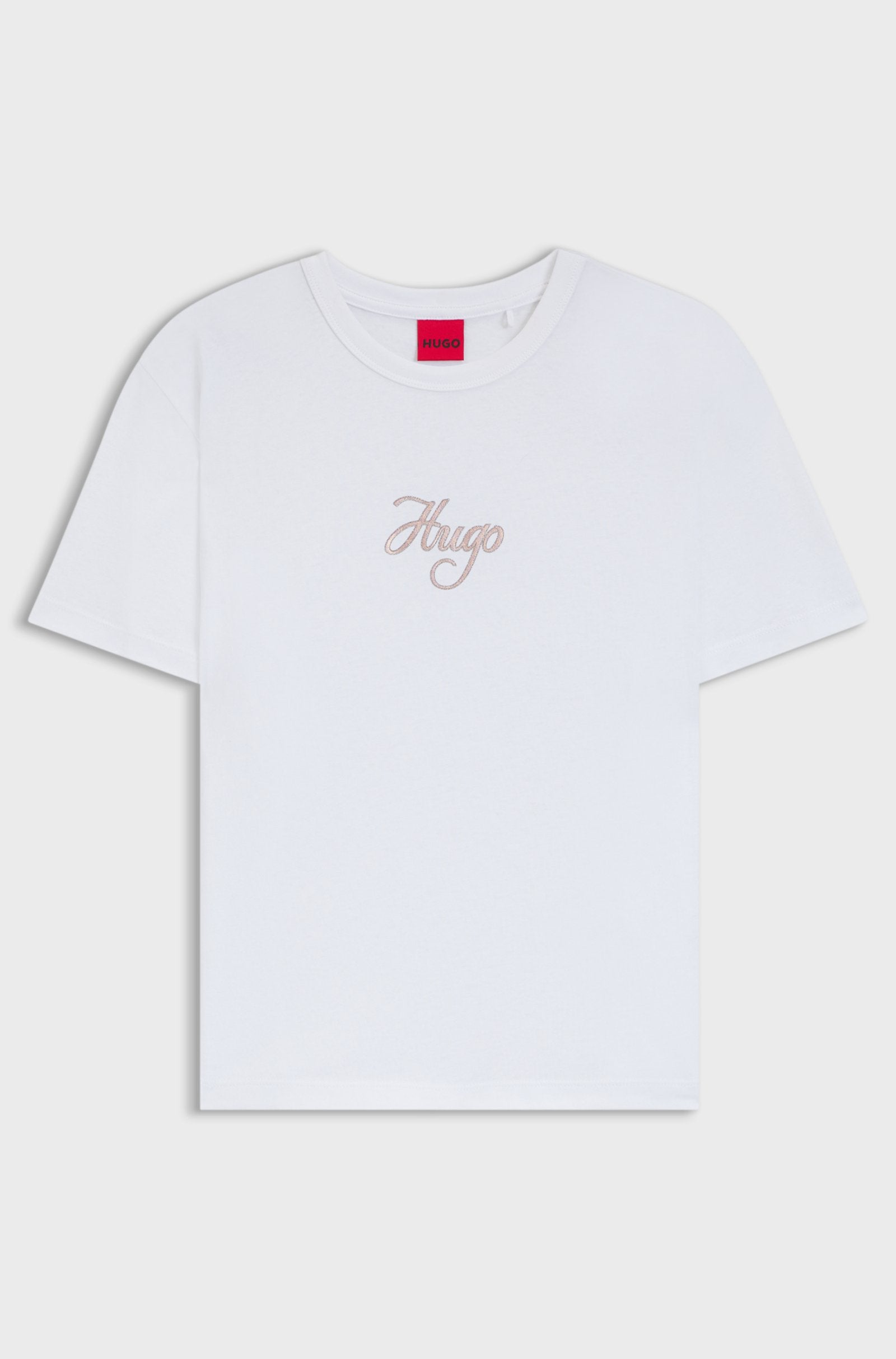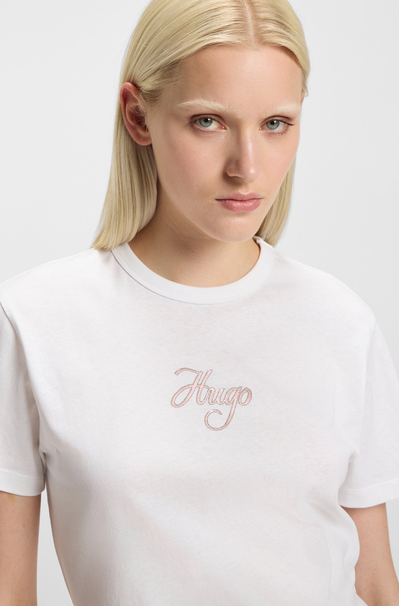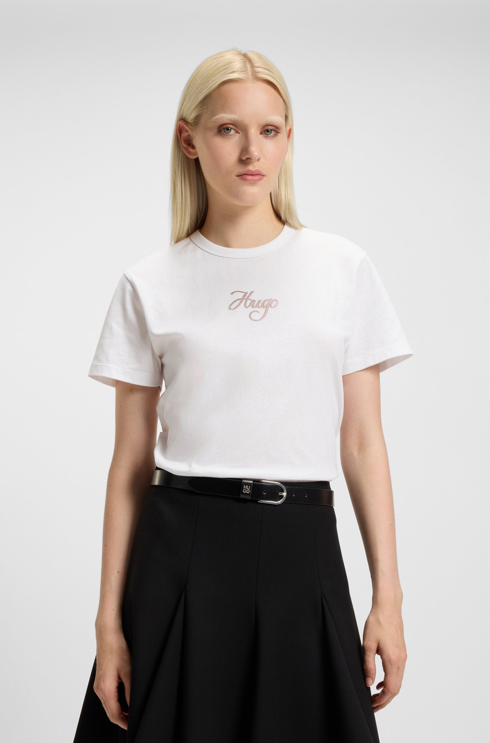 Crafted in soft cotton jersey, this HUGO Womenswear T-shirt has glitter-print detailing to add impact to casual looks. Regular fit.