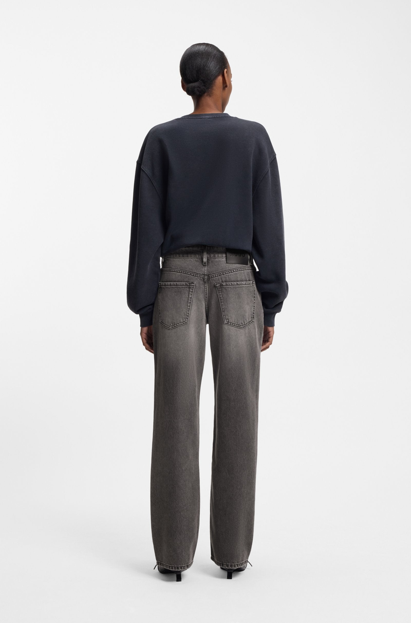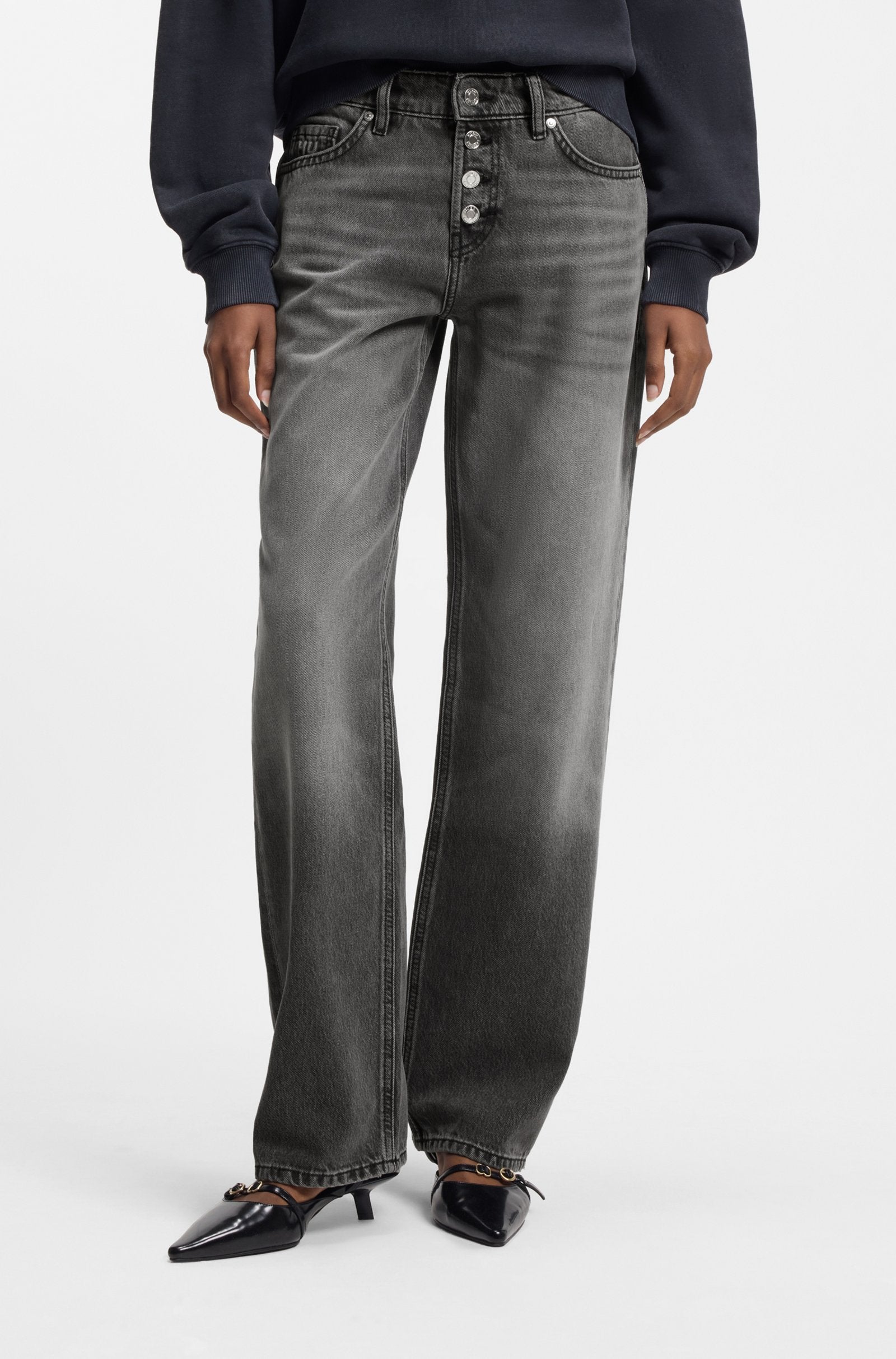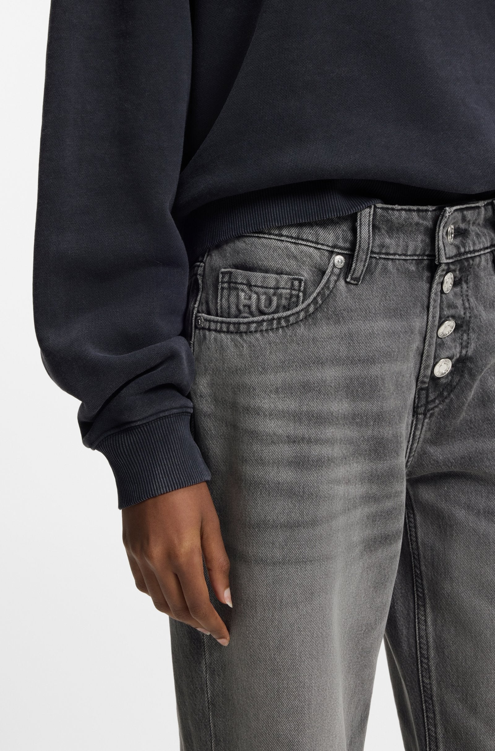 With a logo-embossed coin pocket and exposed buttoned fly, these HUGO Womenswear jeans add impact to casual looks. Straight fit. Grey rigid denim.