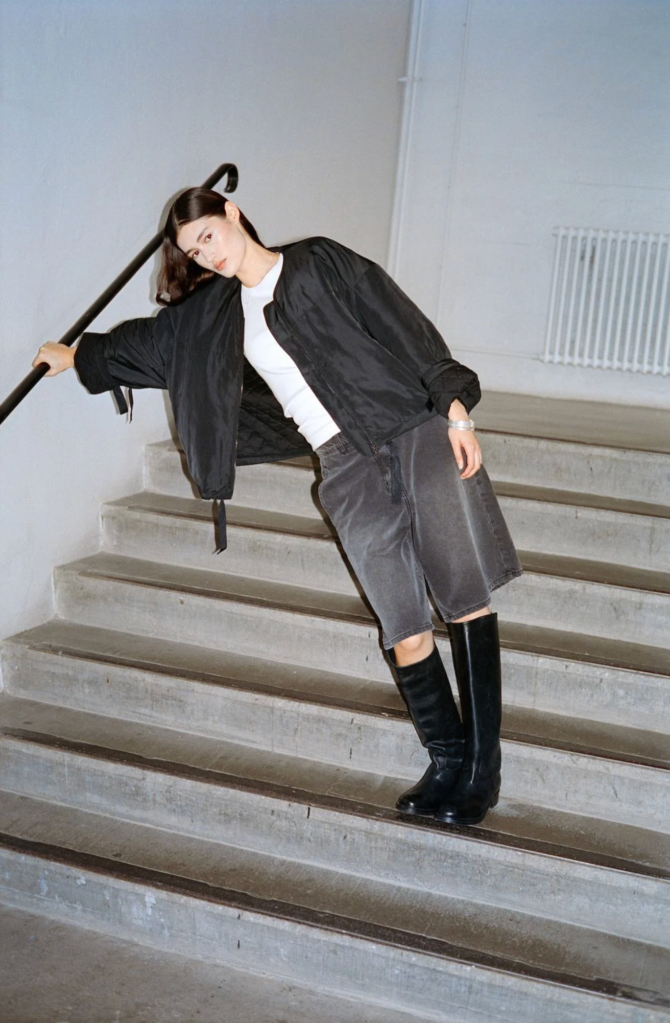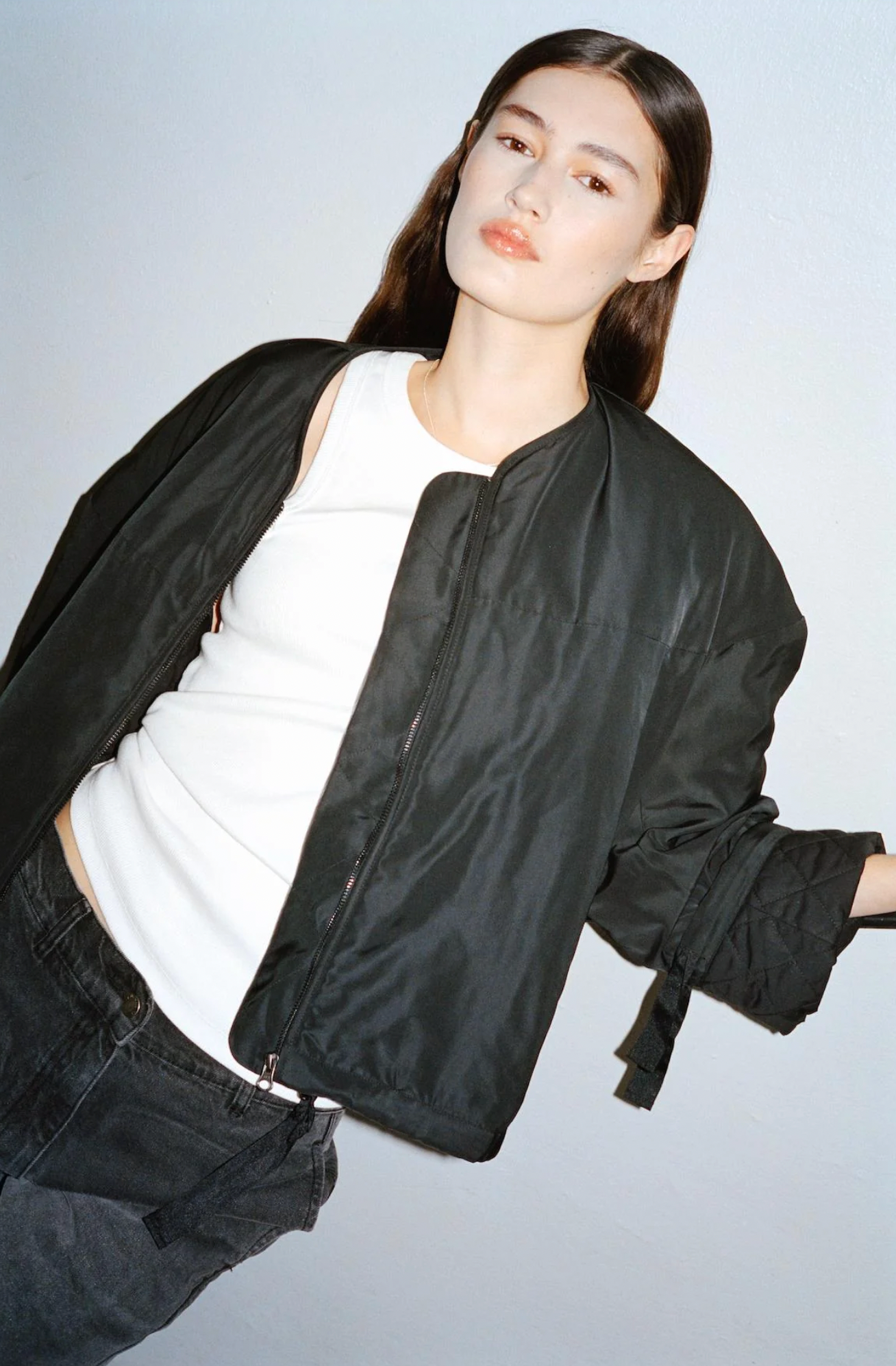 The quilted arched jacket is the perfect transitional jacket for this in-between season.