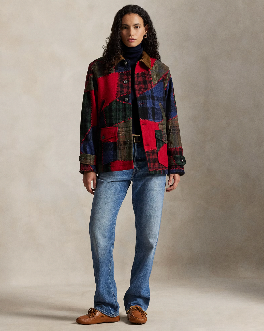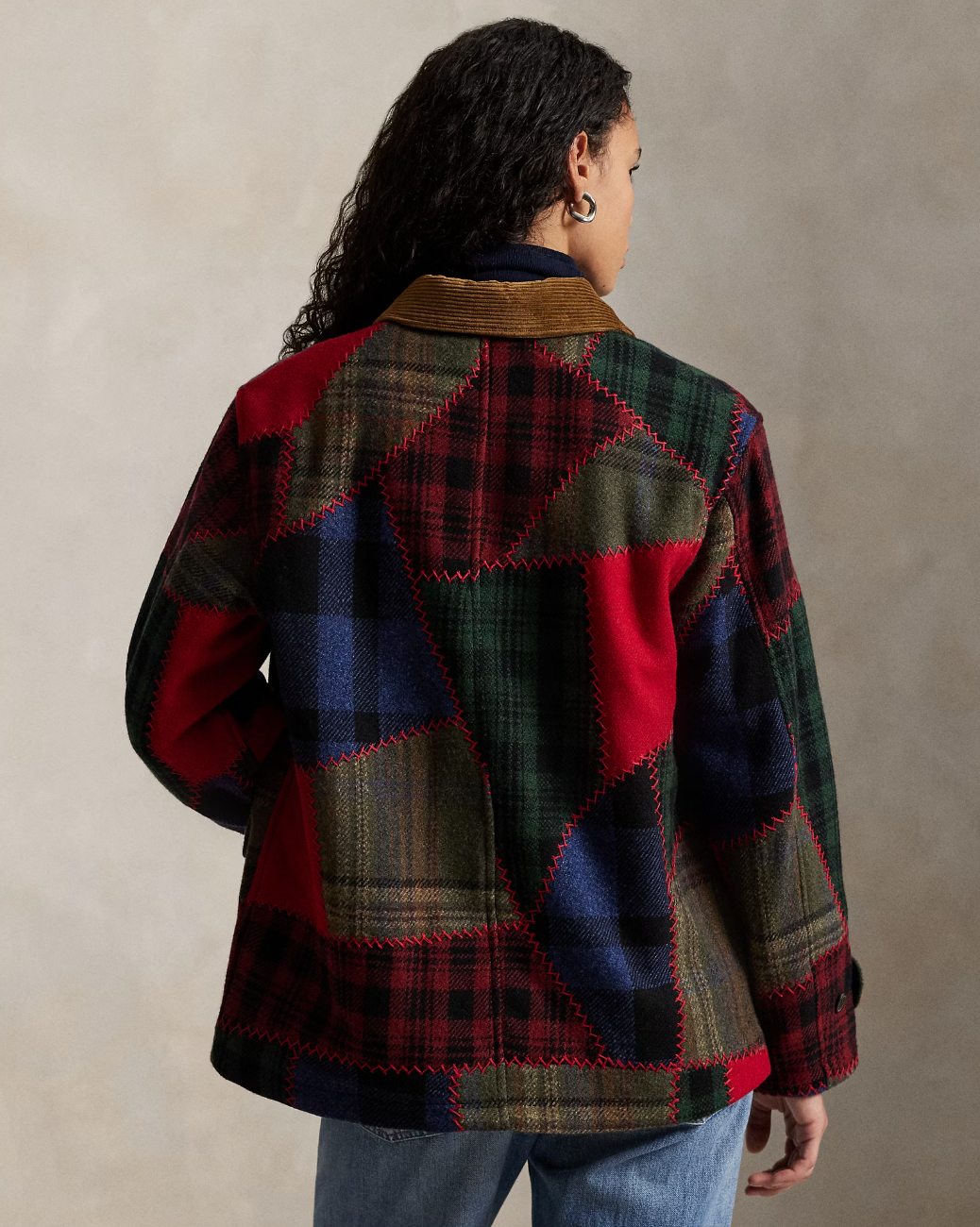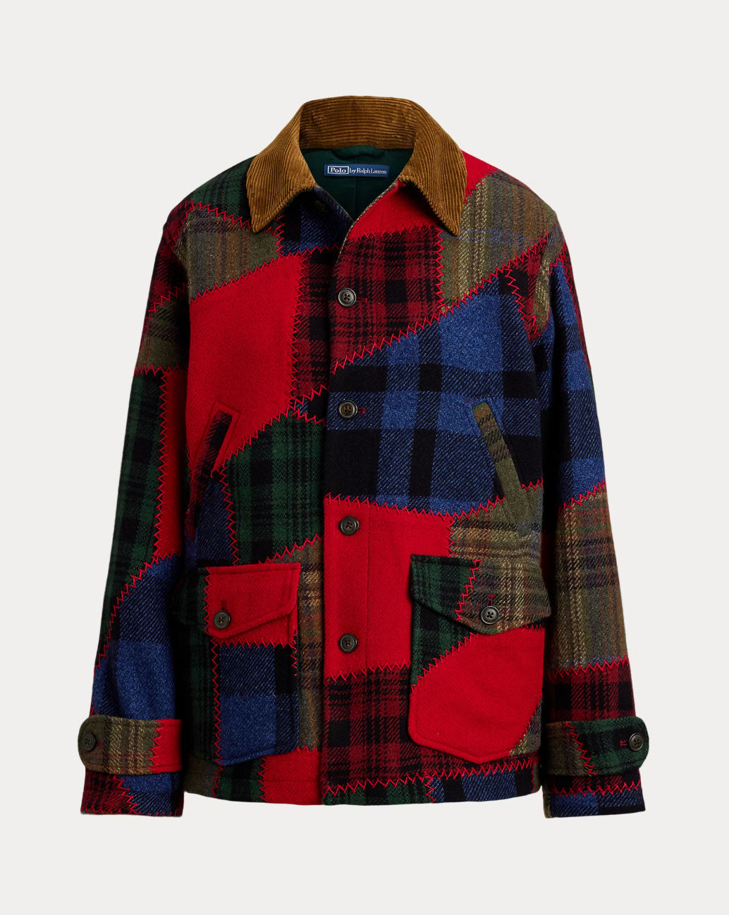 Highlighting Polo's signature pattern play, this utilitarian-inspired chore jacket features a patchwork construction, which combines plaid tweed and herringbone pieces. It's adorned with a wide-wale corduroy collar and our woven label on the left pocket.