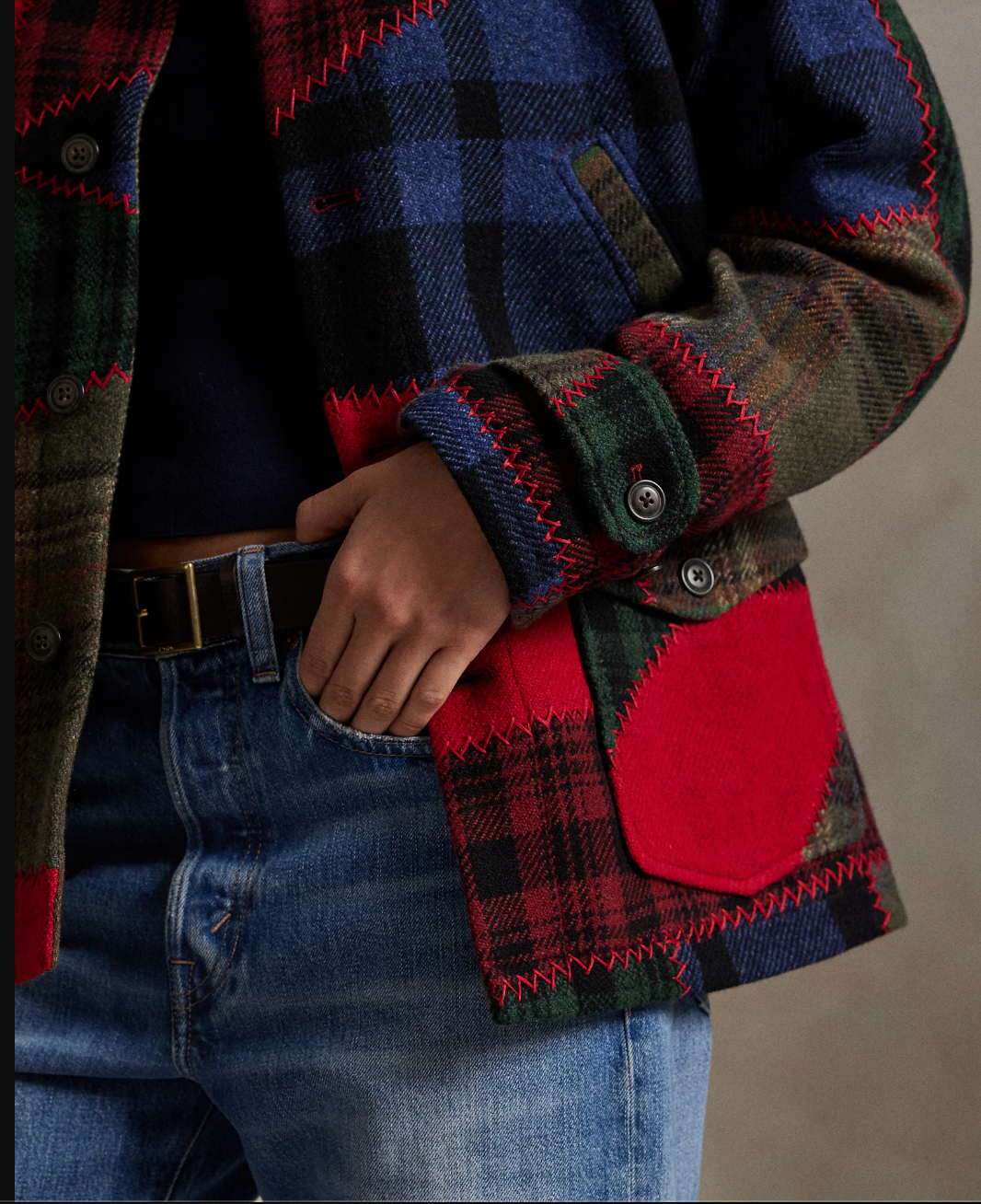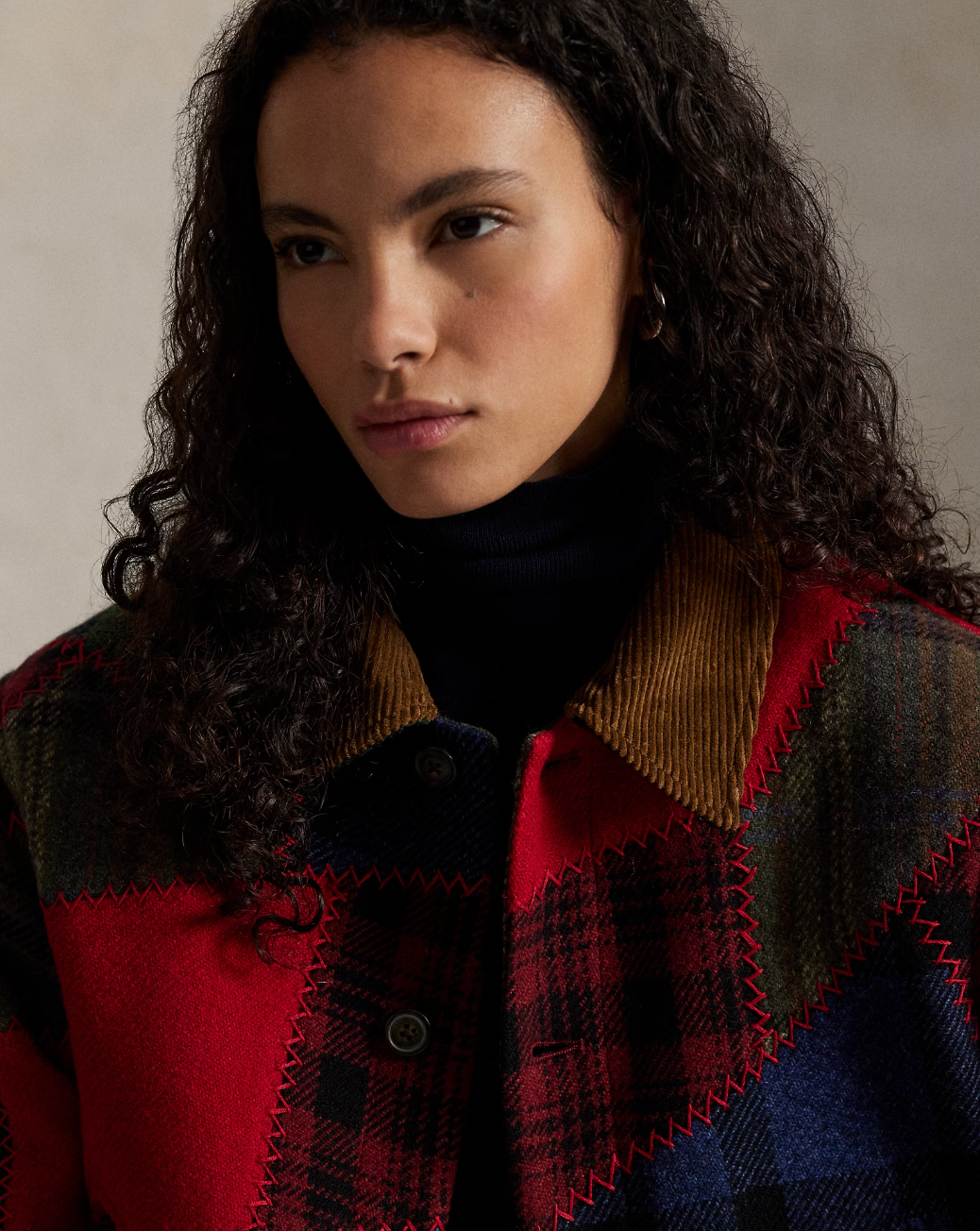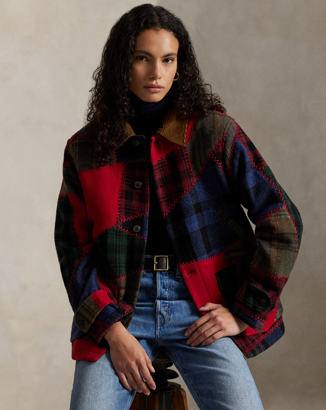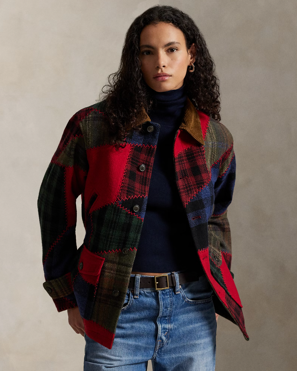 Highlighting Polo's signature pattern play, this utilitarian-inspired chore jacket features a patchwork construction, which combines plaid tweed and herringbone pieces. It's adorned with a wide-wale corduroy collar and our woven label on the left pocket.