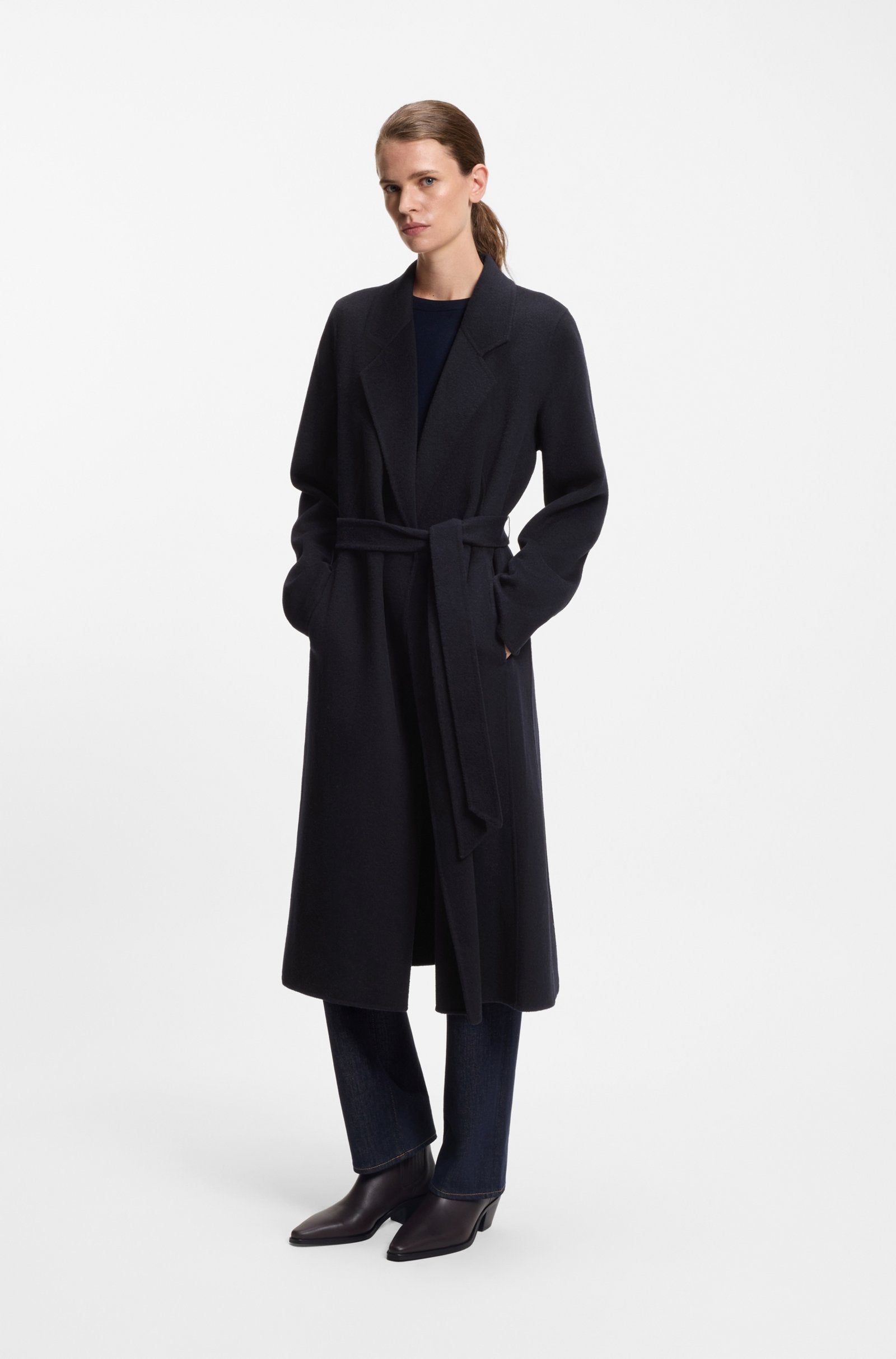 With a minimalist belted closure, this slim-cut BOSS Womenswear coat is great for throwing over everyday looks. Wool-rich double-faced fabric. Notch lapels.
