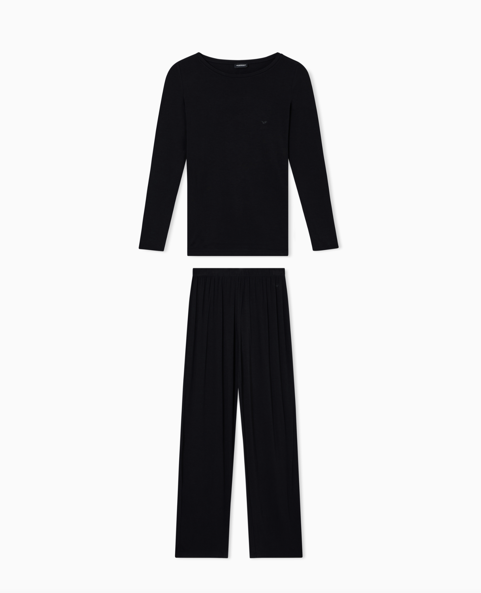 Wool and Lyocell blend pyjamas consisting of a round-neck long-sleeved T-shirt and elasticated-waist trousers. Eagle logo with micro studs on both pieces.