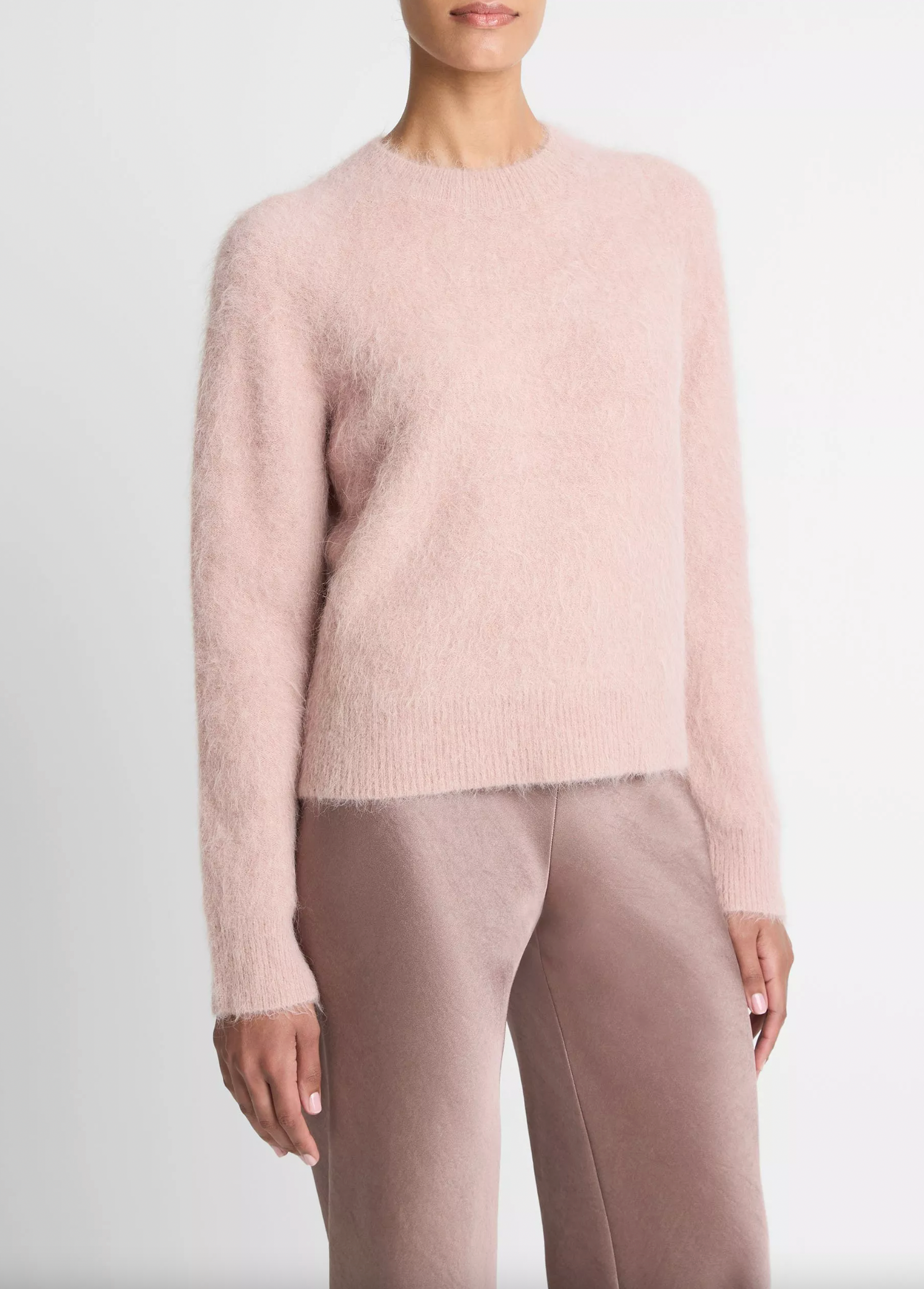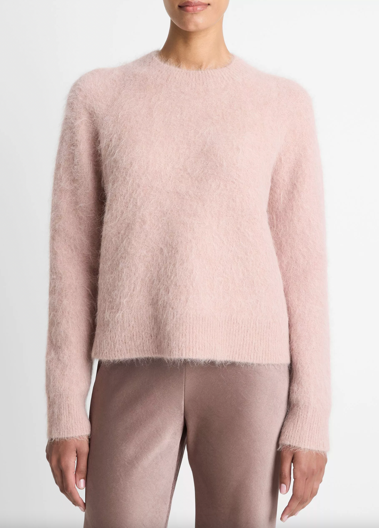 A vibrant alpaca blend lends this boxy crew neck its soft, fuzzy finish. Rib-knit edges add a dash of definition.