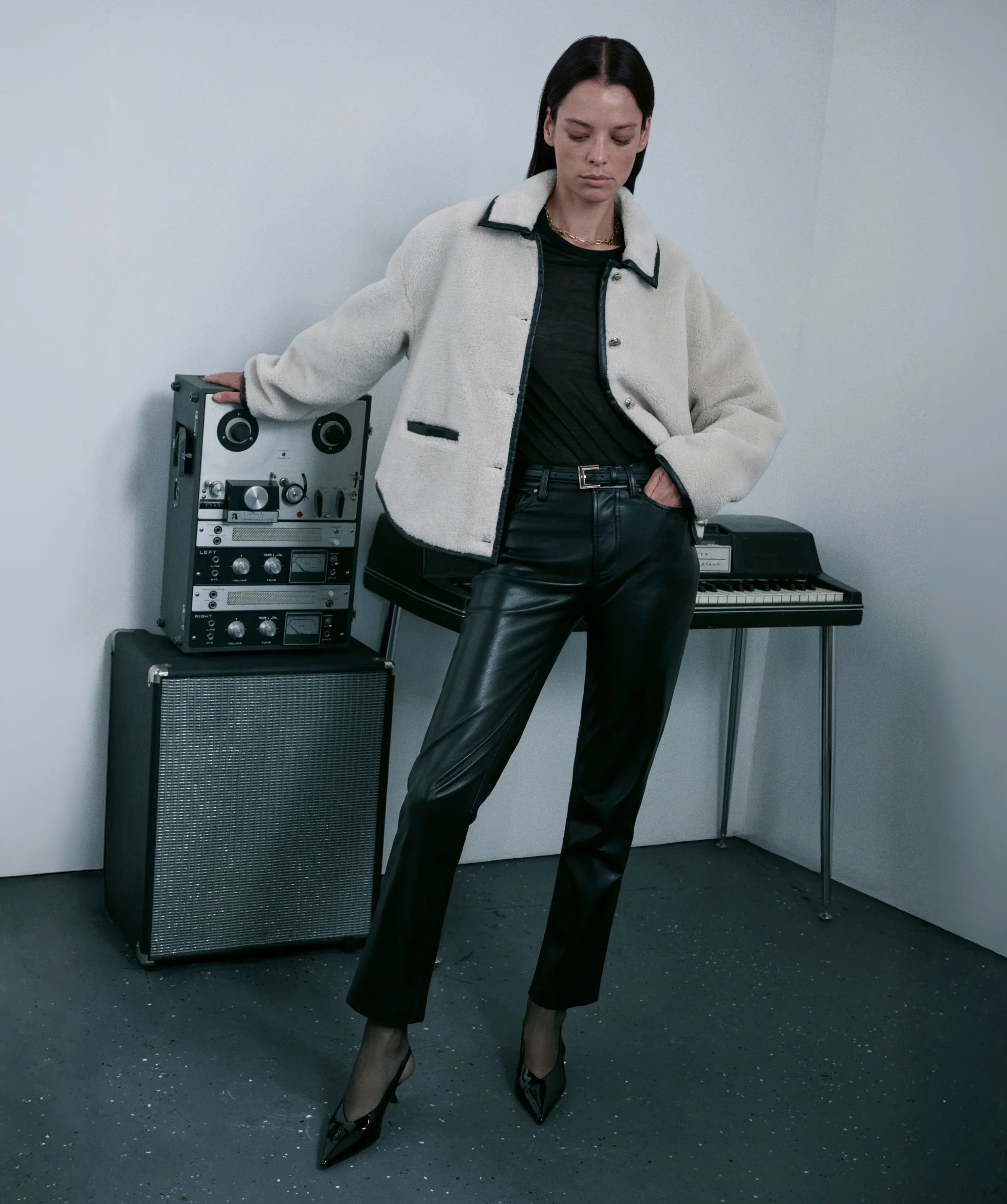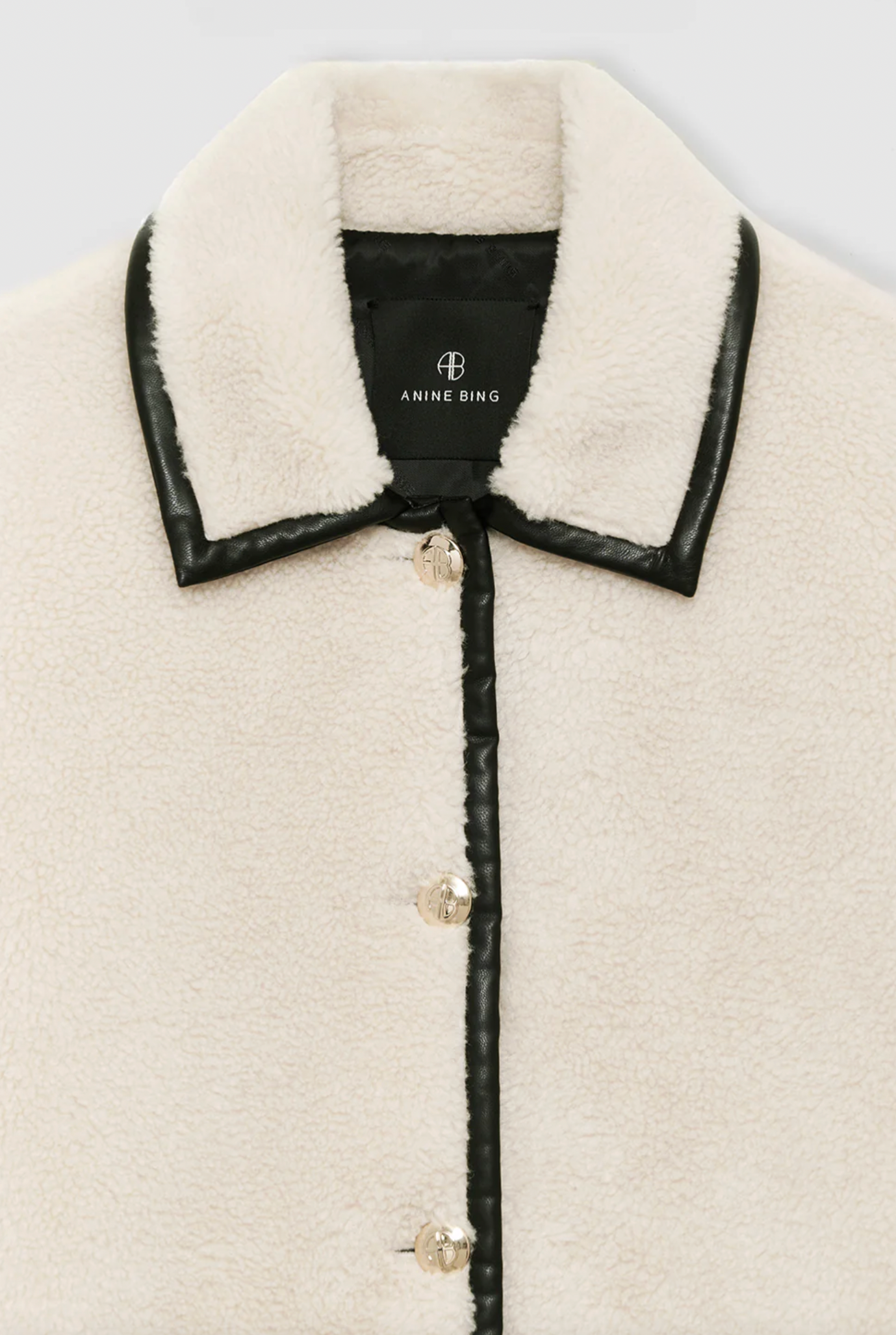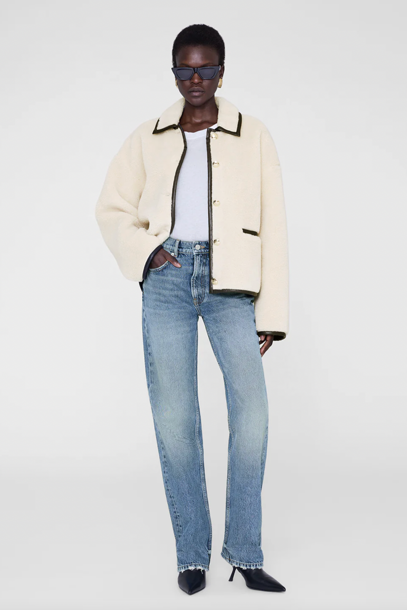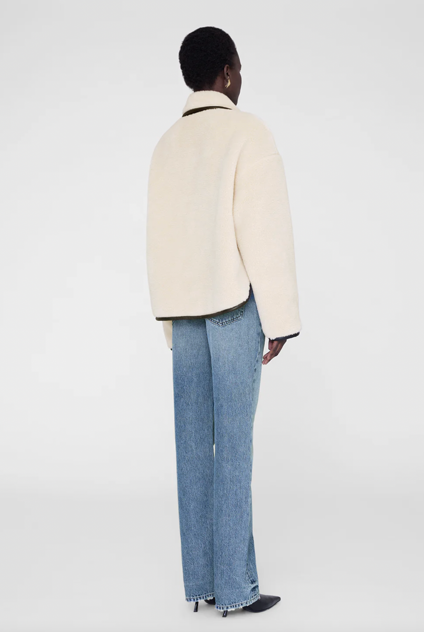 A workwear-inspired jacket made from a wool blend featuring a cream finish.