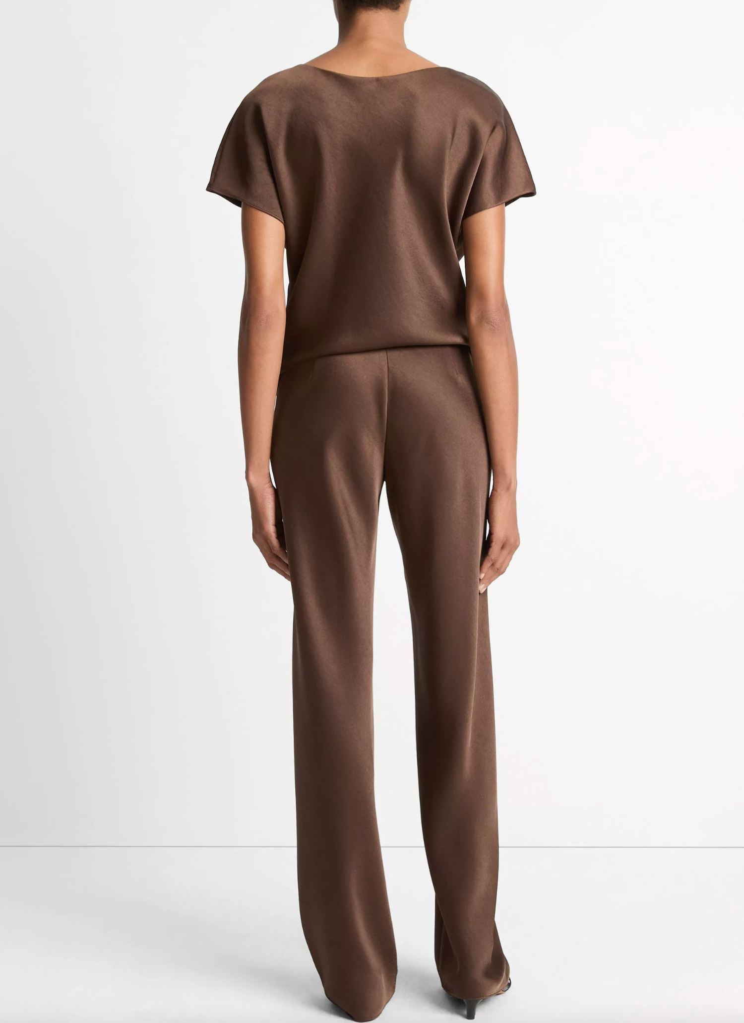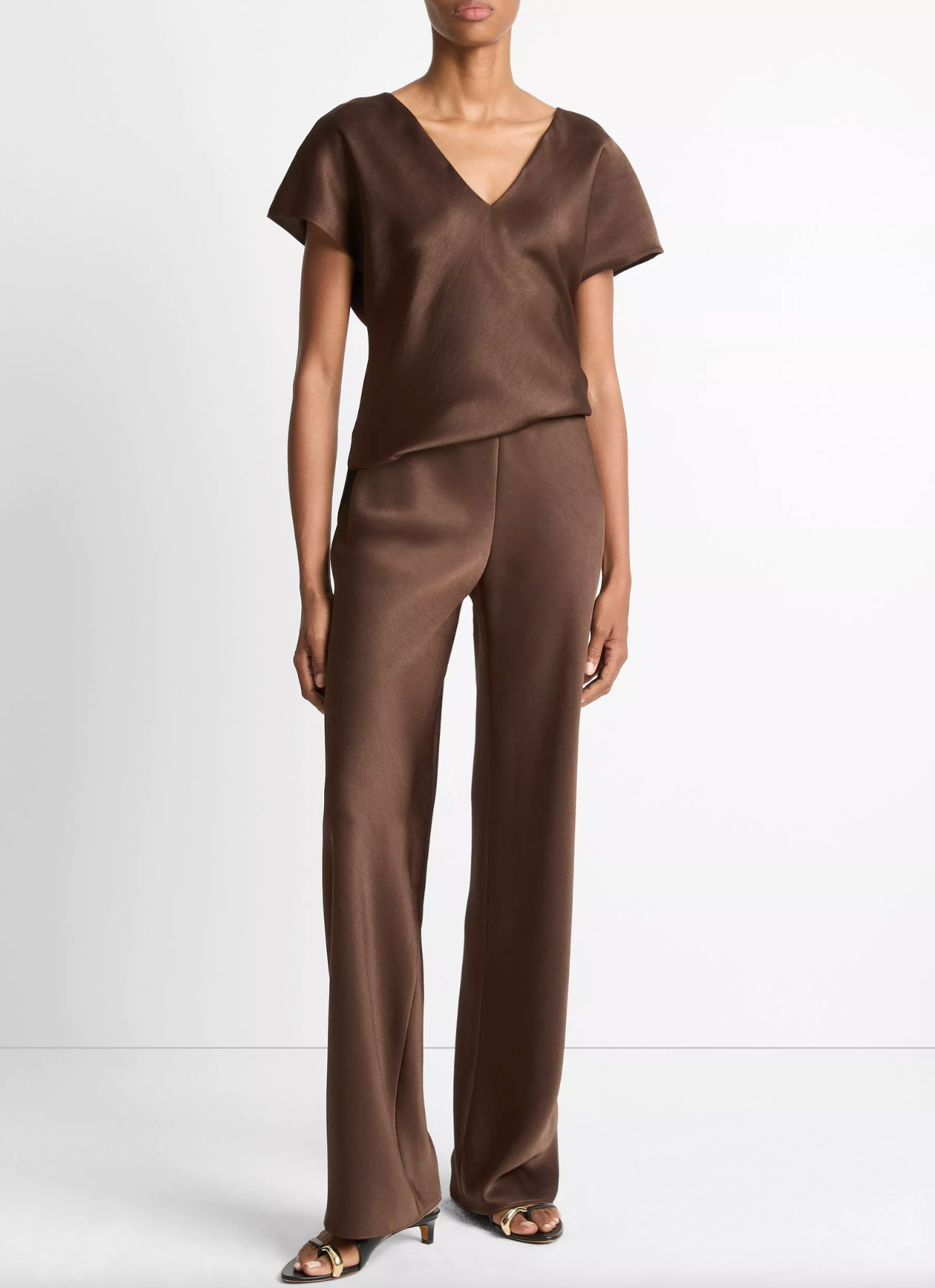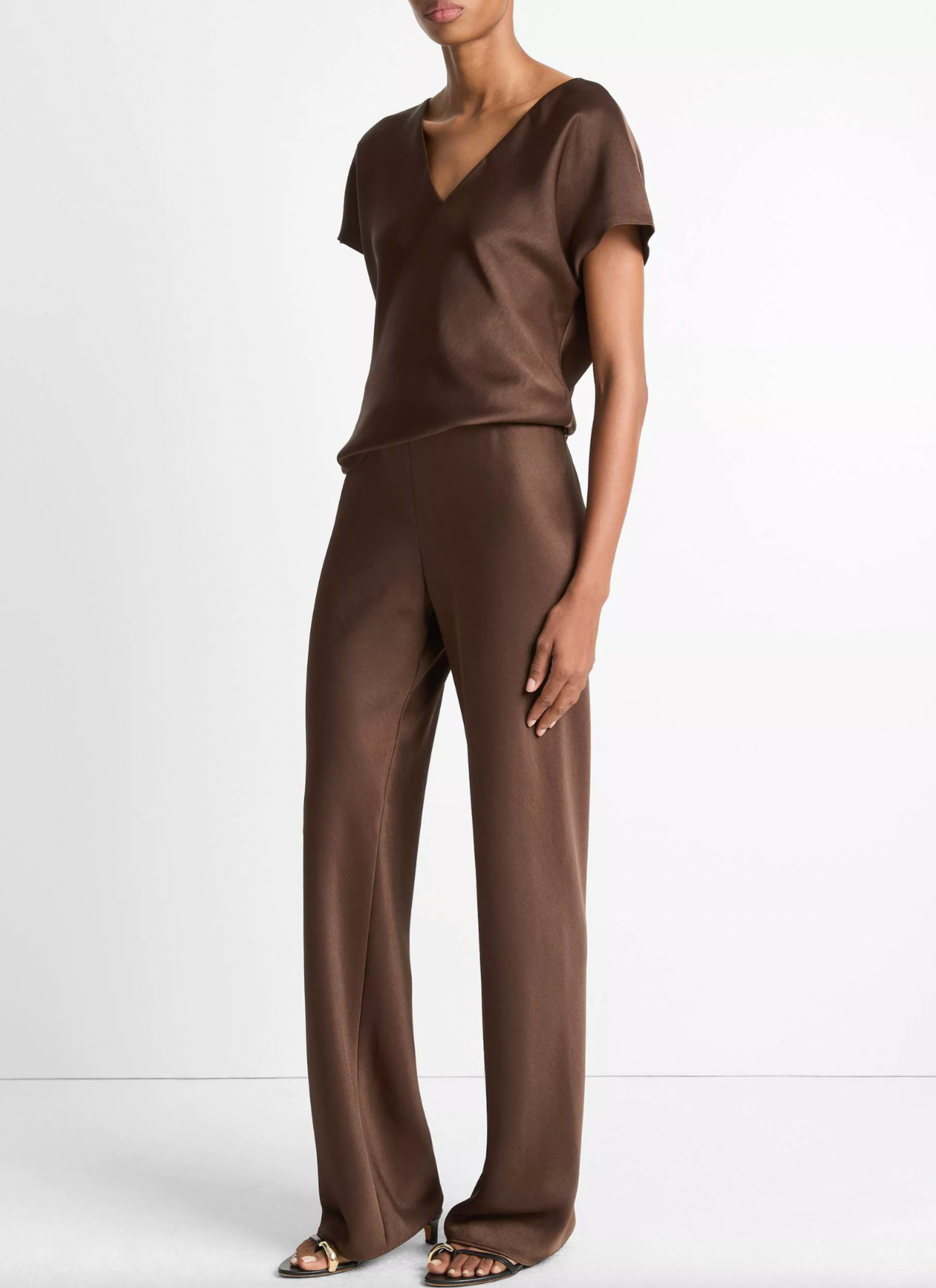A seasonless best seller, our signature high-waisted satin bias pant drapes fluidly in an easy wide leg.