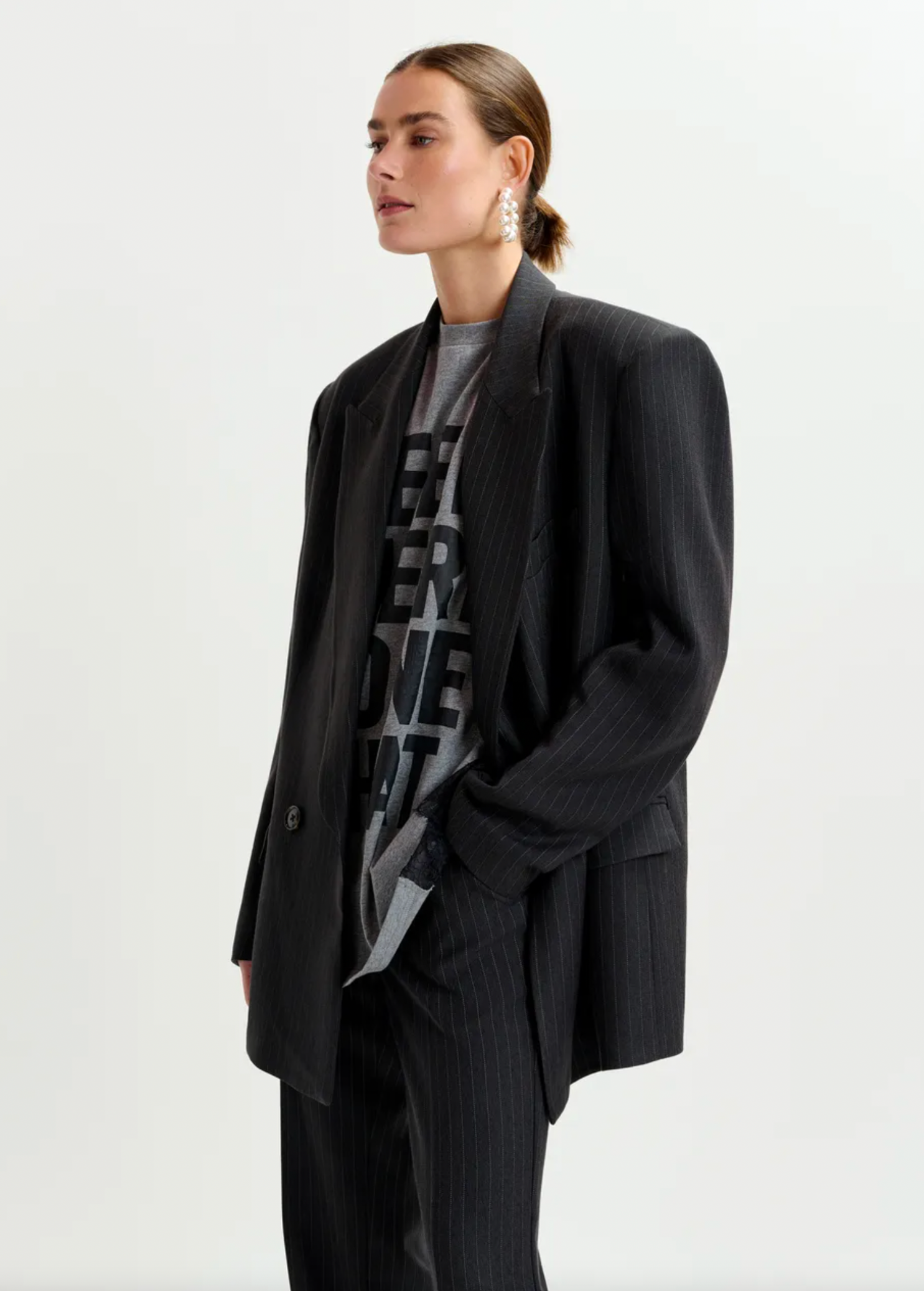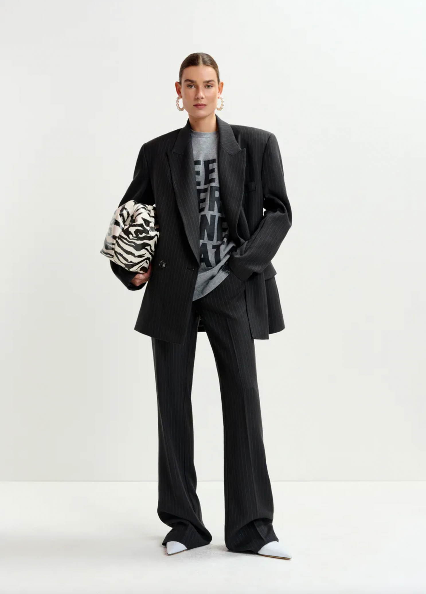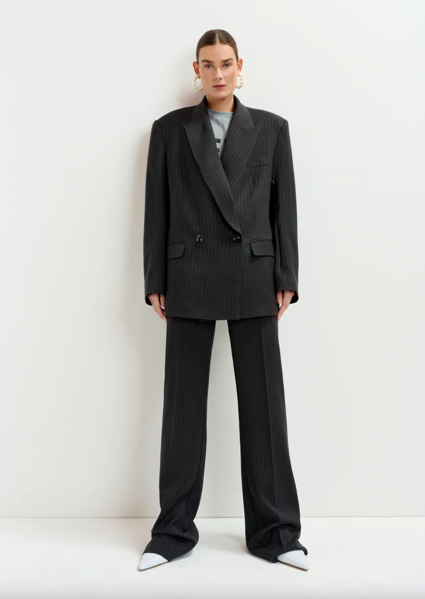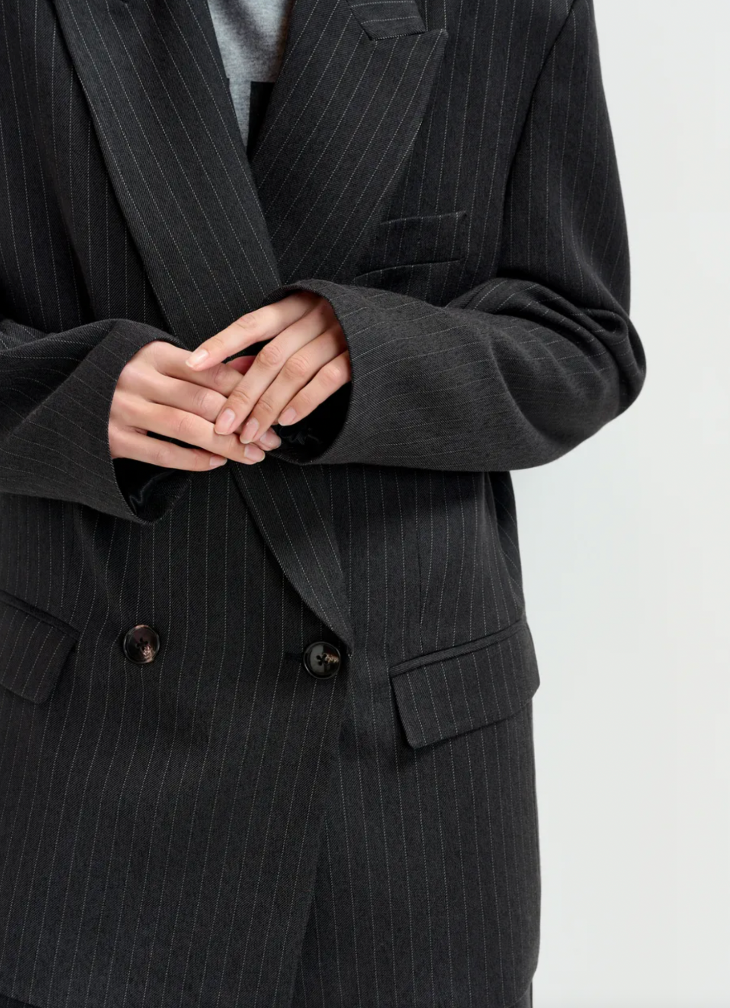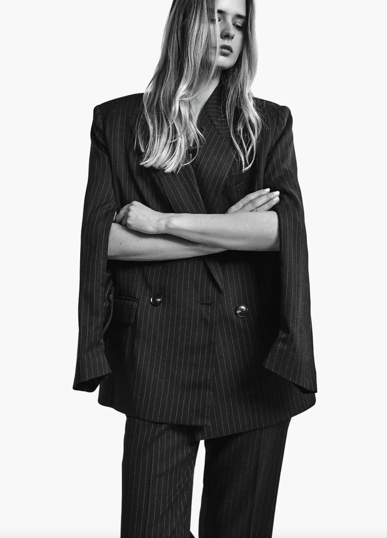 Blazer is designed for an oversized, straight-cut silhouette. The double-breasted front, padded shoulders, and pocket detailing highlight the classic elements, while concealed zip fastenings at the underarms offer a directional twist—perfect for adjusting your look or layering with ease. Fully lined for smooth layering, it's a versatile staple with unexpected versatility. Unzip the sides for a flash of styling creativity.