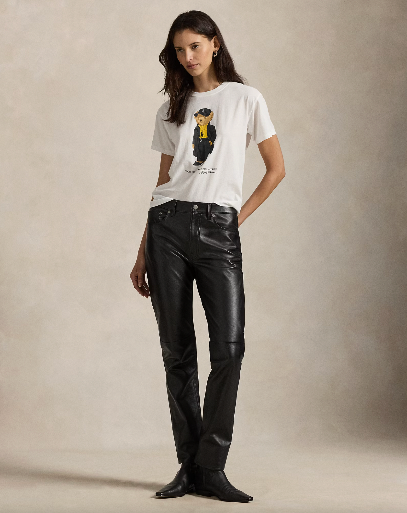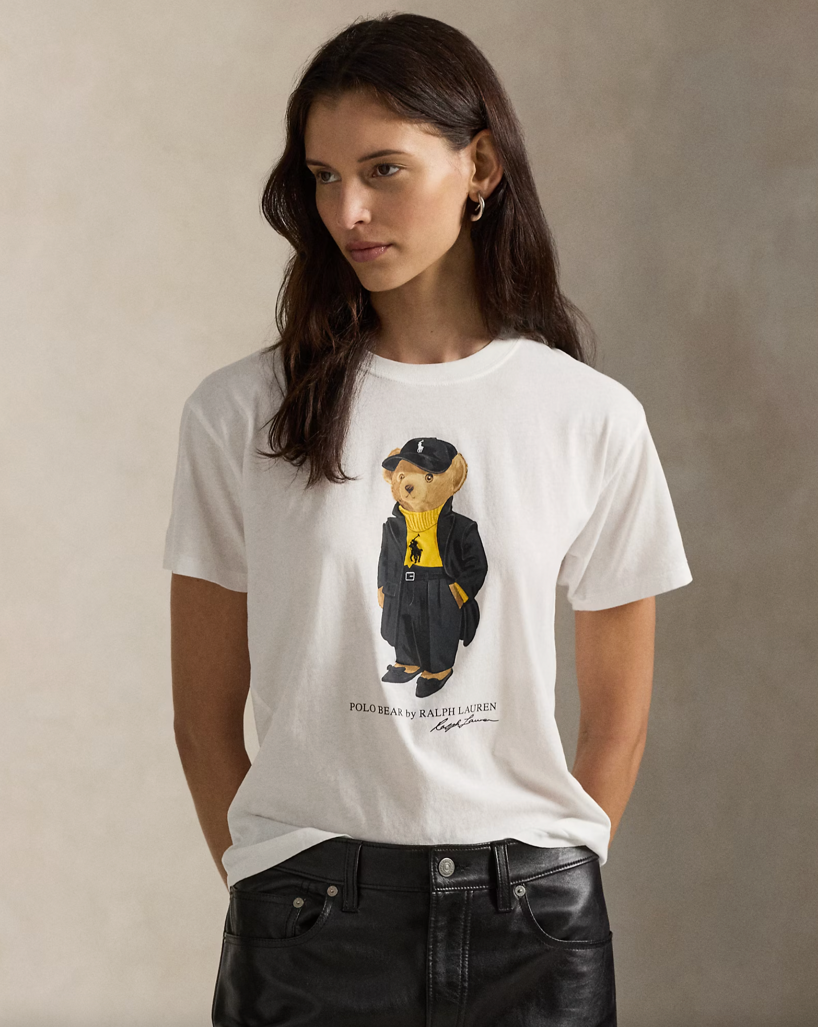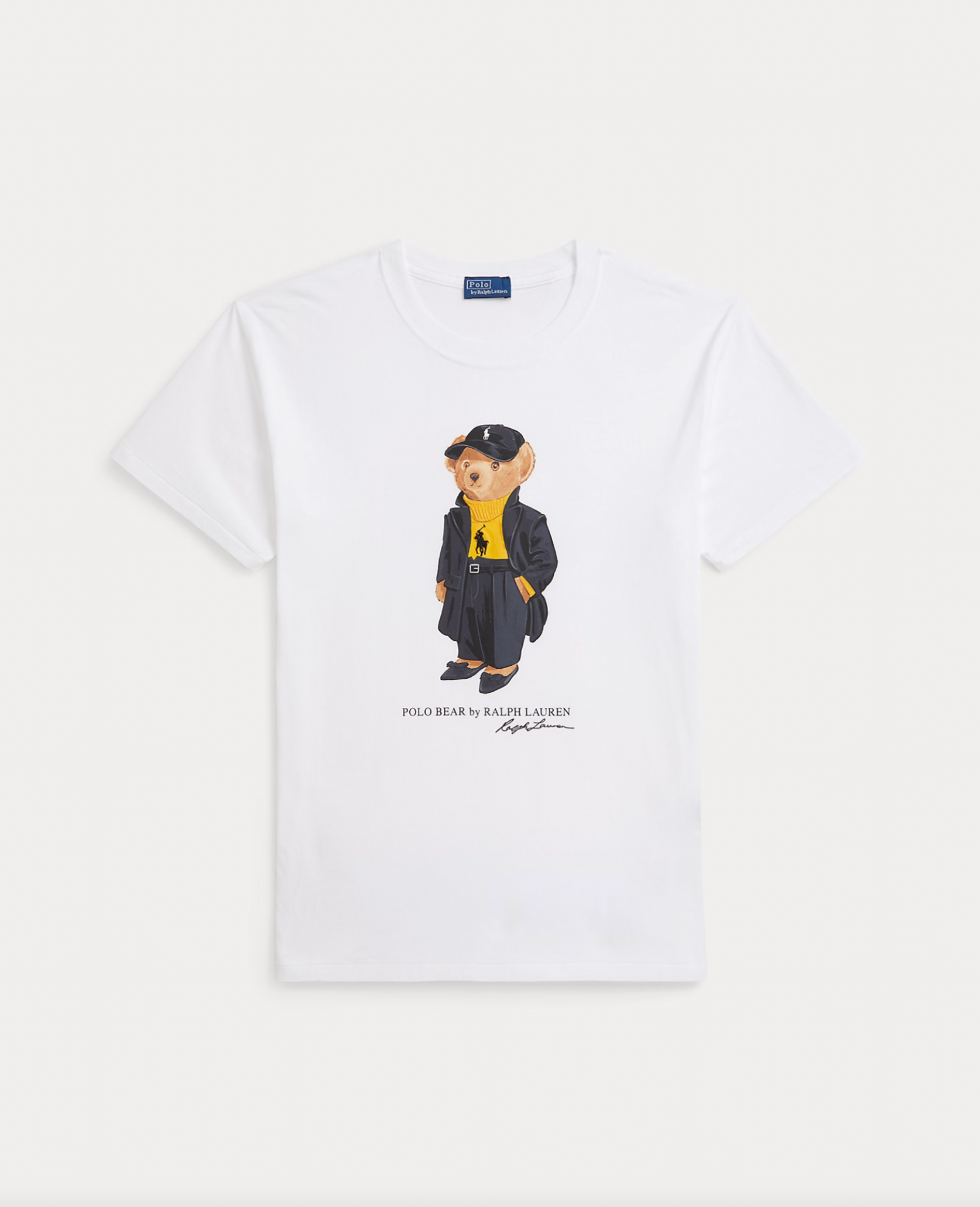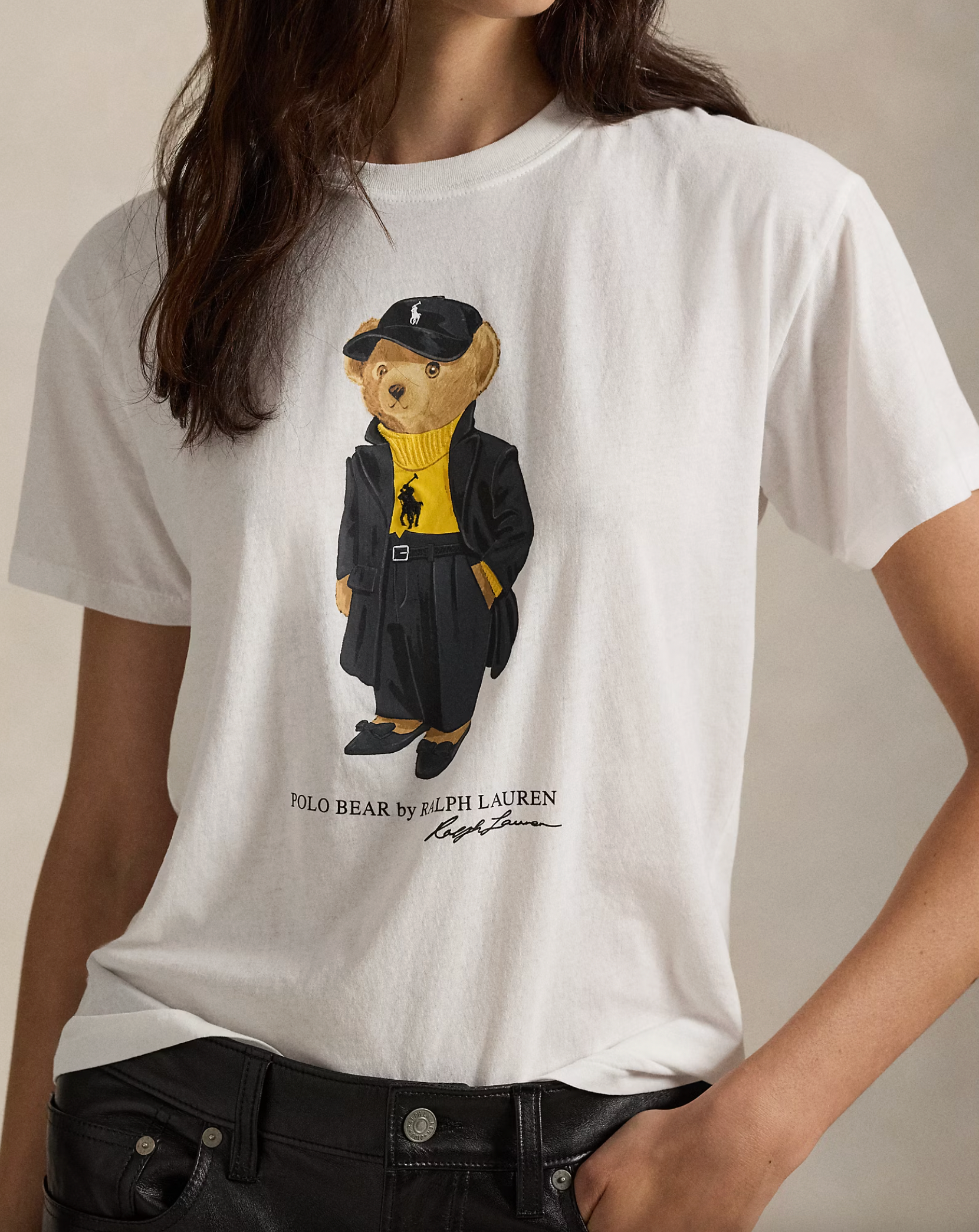Polo Bear, “Polo Bear by Ralph Lauren,” and script “Ralph Lauren” signature rubber-printed at the center front.