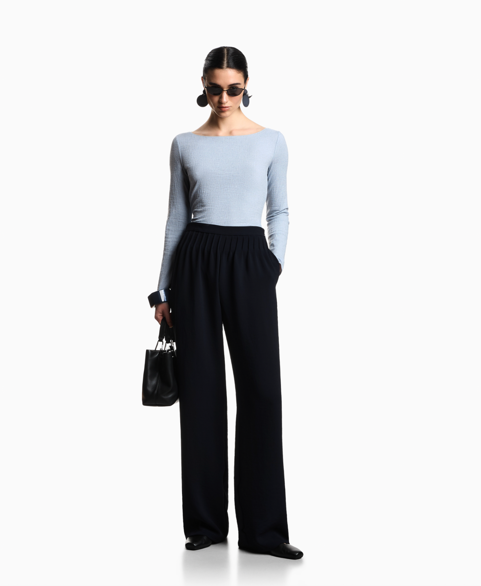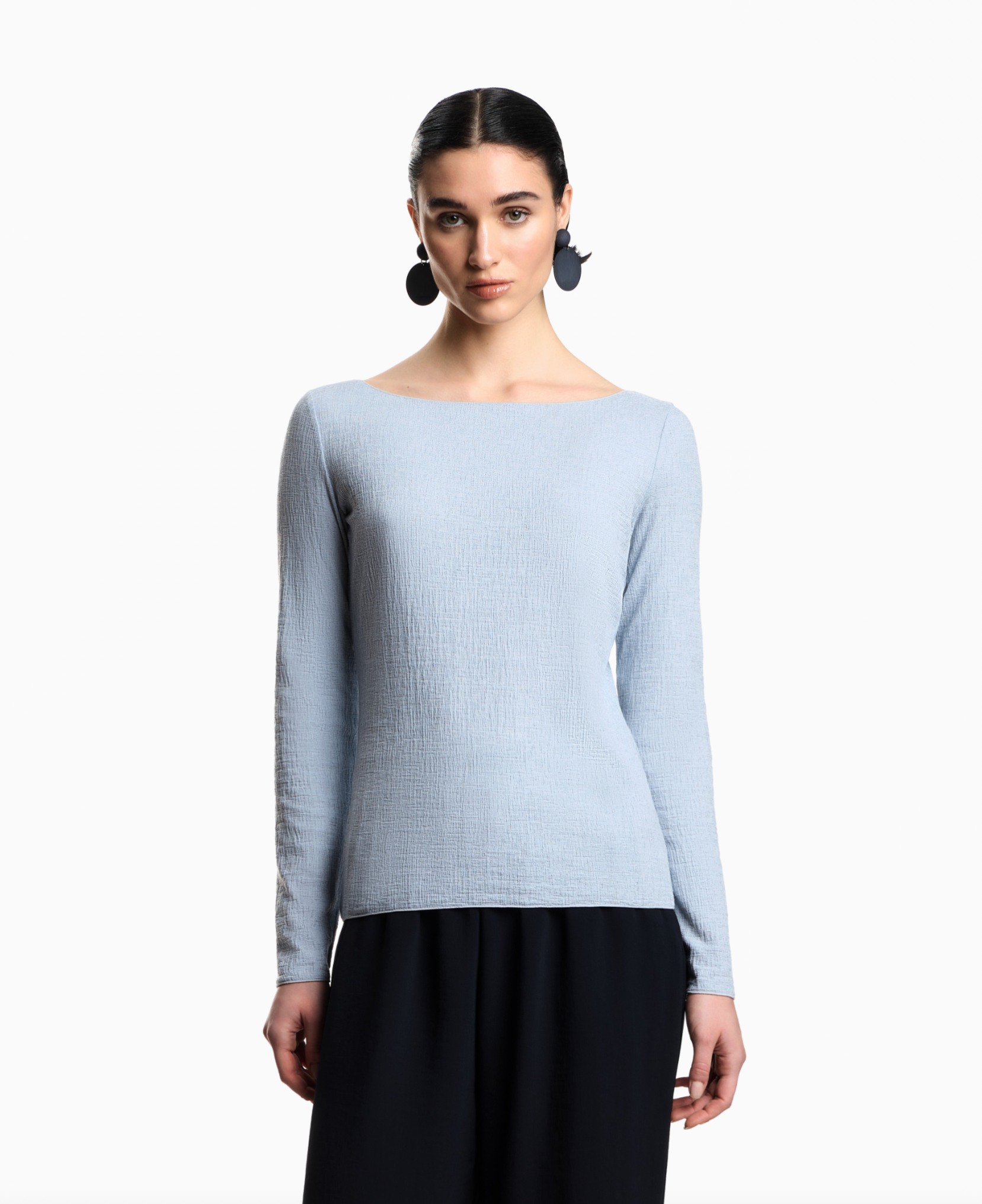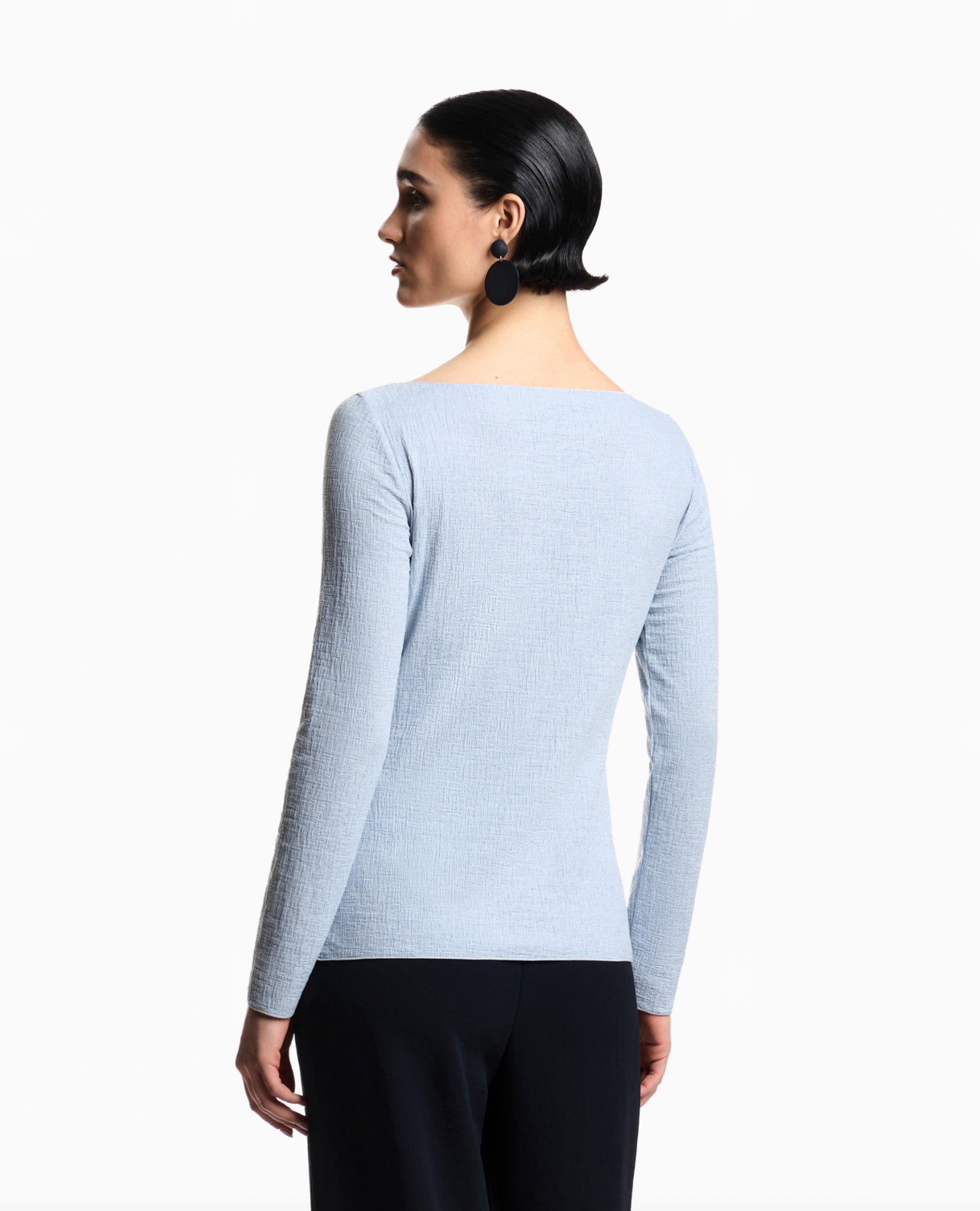 Jersey made of textured stretch poly-viscose jersey, a fabric that offers comfort and an impeccable fit. The particular texture adds a touch of originality to the garment, making it perfect for a casual but refined look. Ideal for wearing alone or under a jacket, this sweater is a versatile piece in the contemporary wardrobe.