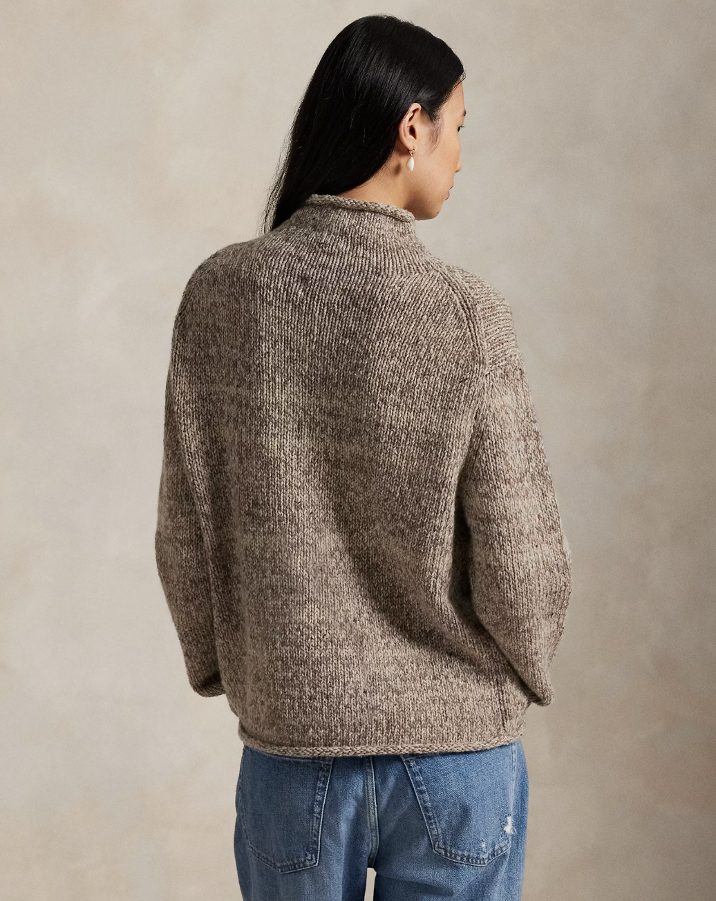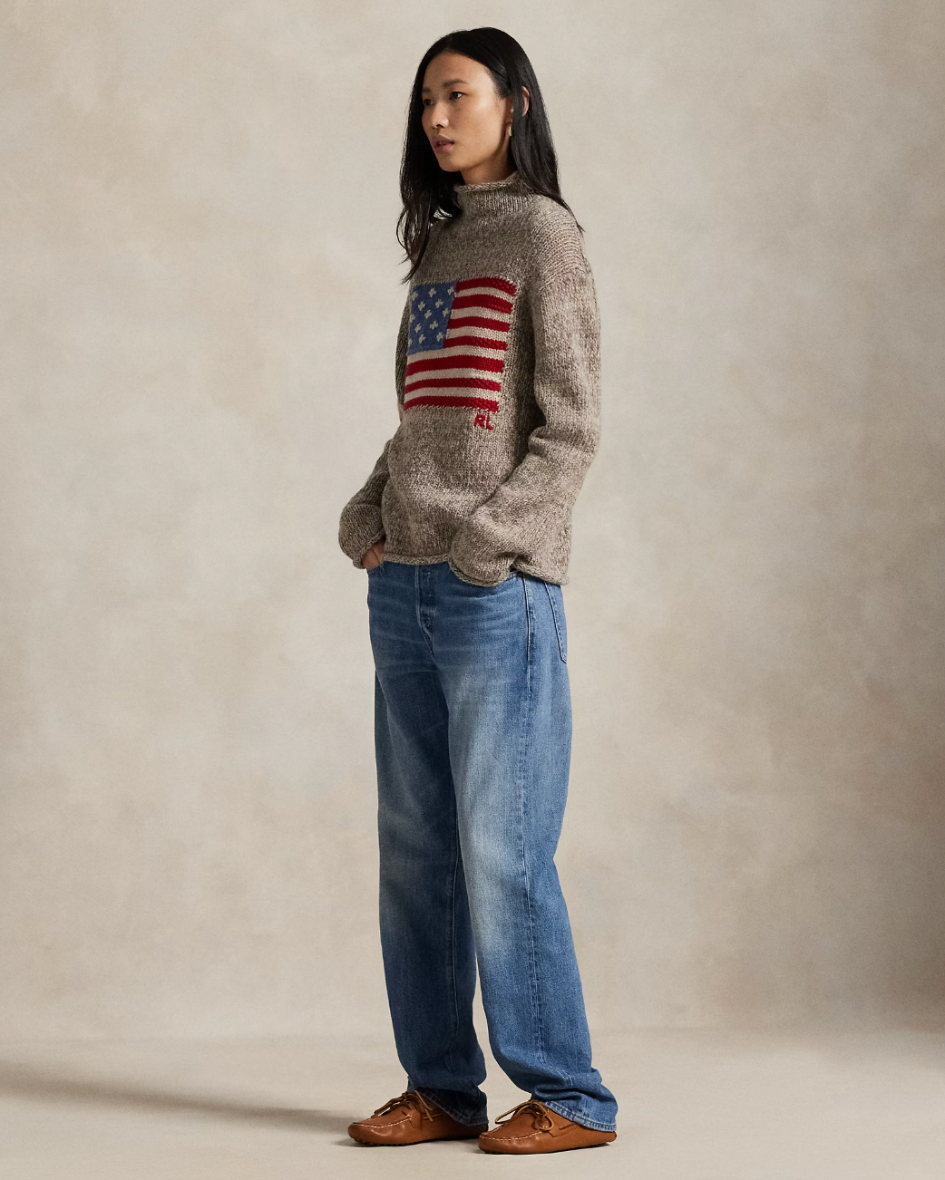 This version of Polo's iconic flag jumper features a pieced historical American flag secured with whipstitching and adorned with hand-embroidered stars. The marled foundation is crafted from heavyweight wool-blend yarns for subtle dimension and is finished with rolled edges.