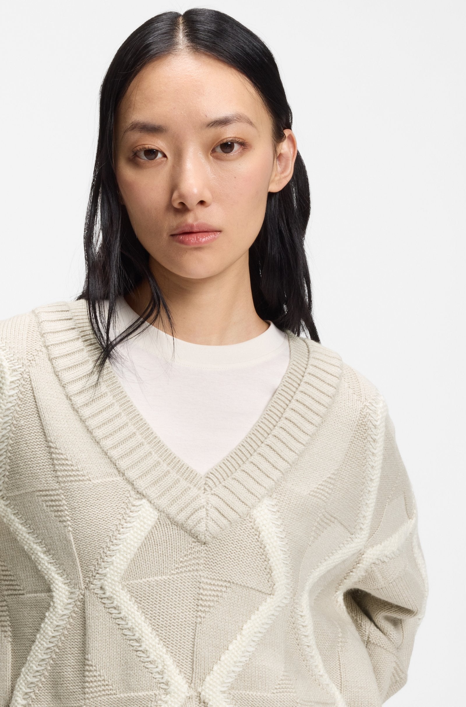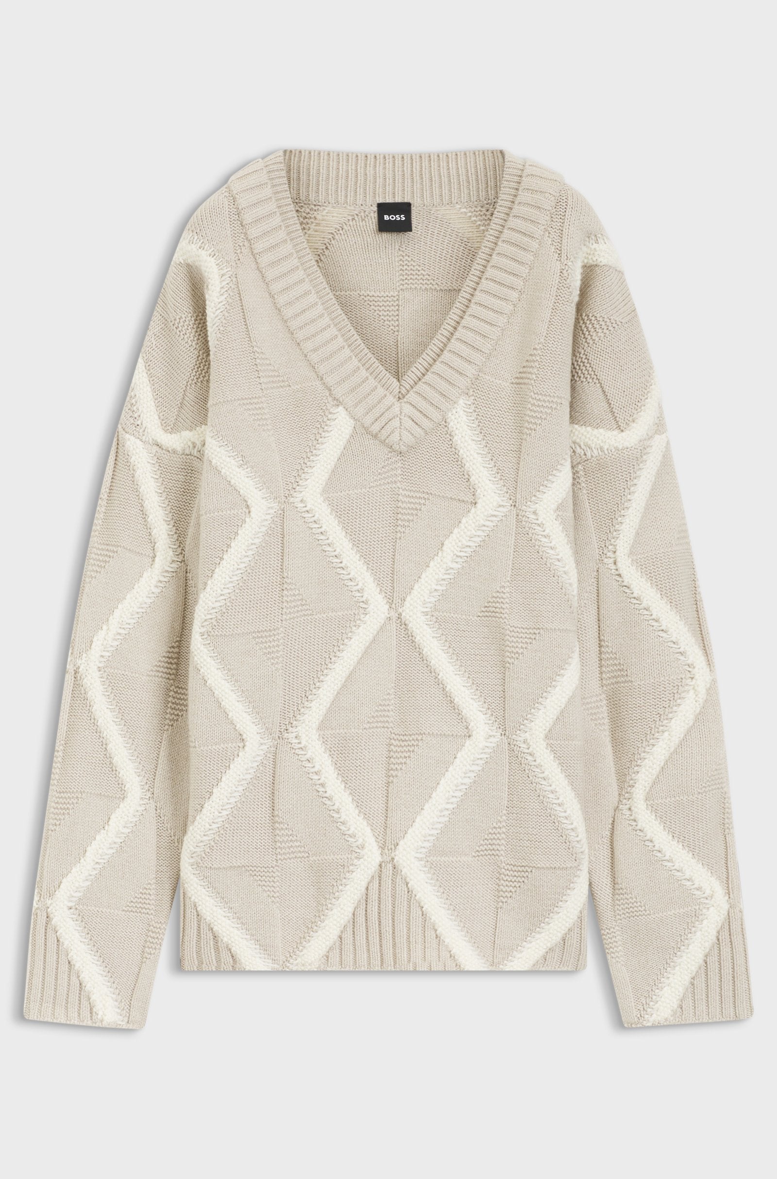 Layer up in style with the checked texture and knitted pattern of this BOSS Womenswear sweater. Crafted in soft virgin wool. Double collar detail. This product contains at least 60% better raw materials. This product is partially made with recycled wool. For certain materials, like wool, we mix recycled and virgin content so we can provide a high-quality product.