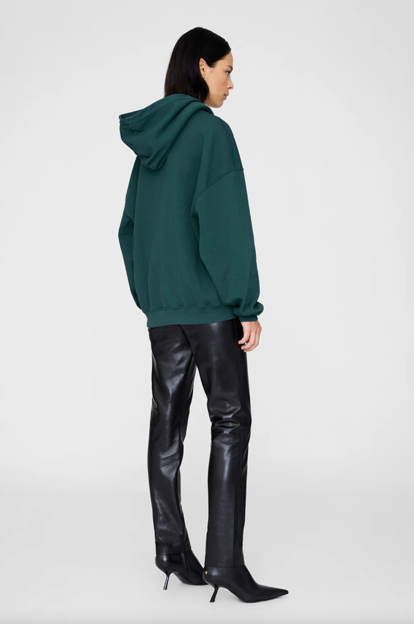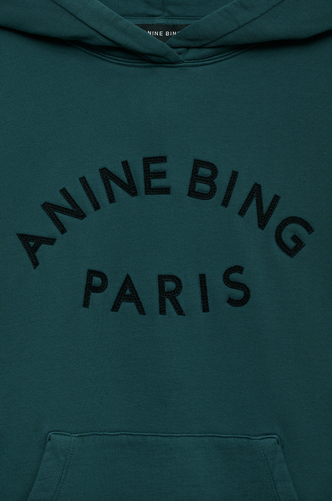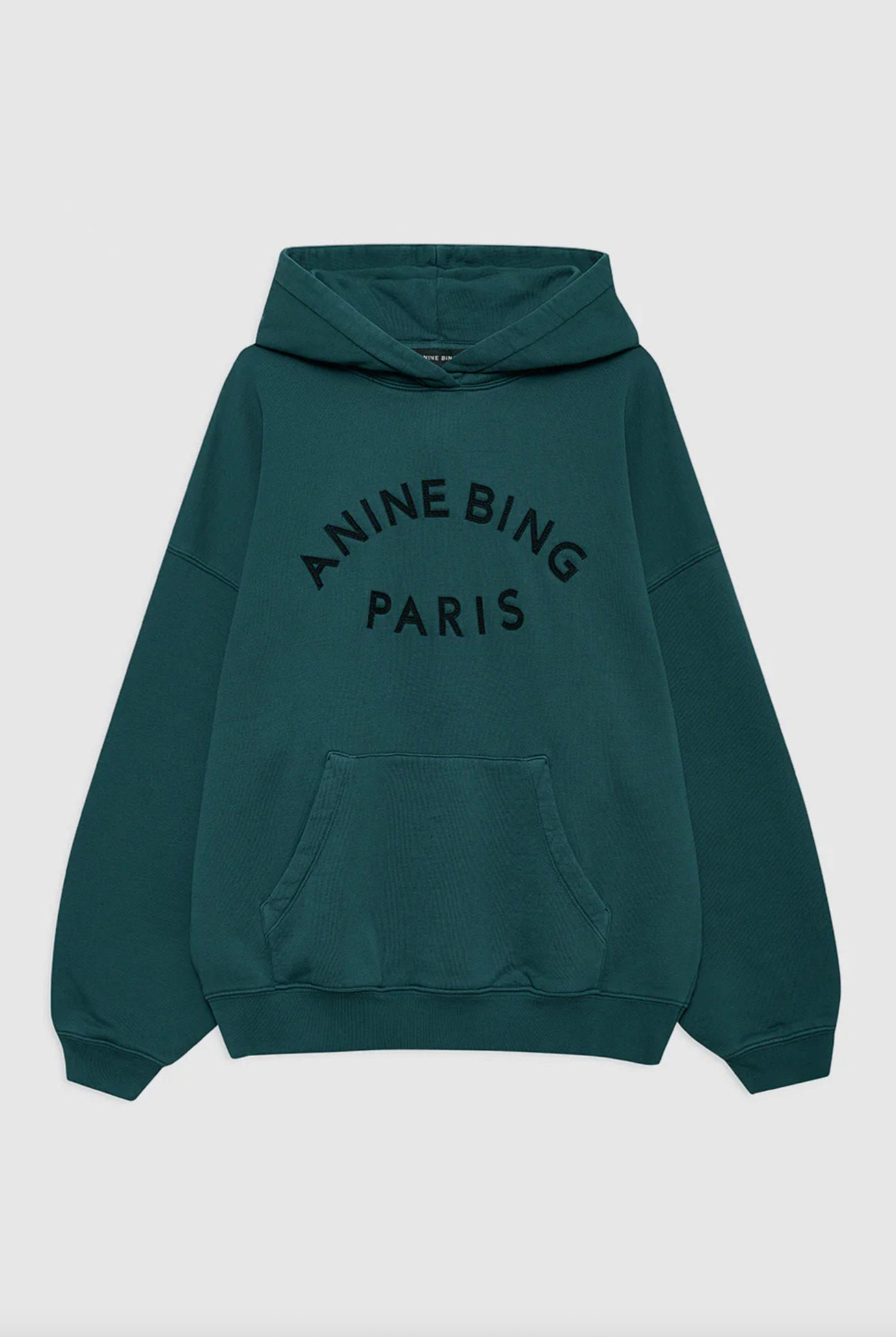 The Harvey Sweatshirt is an oversized hoodie made from midweight 100% cotton fleece. It features an ANINE BING Sport graphic at the chest in tonal lettering and subtle grinding along the edges of its hood, sleeve cuffs, and waistband for a vintage look. Includes a functional front kangaroo pocket.