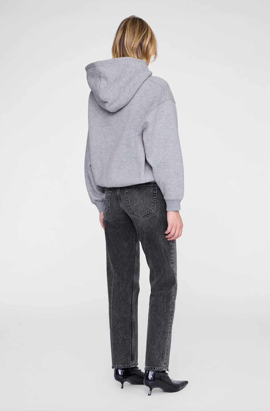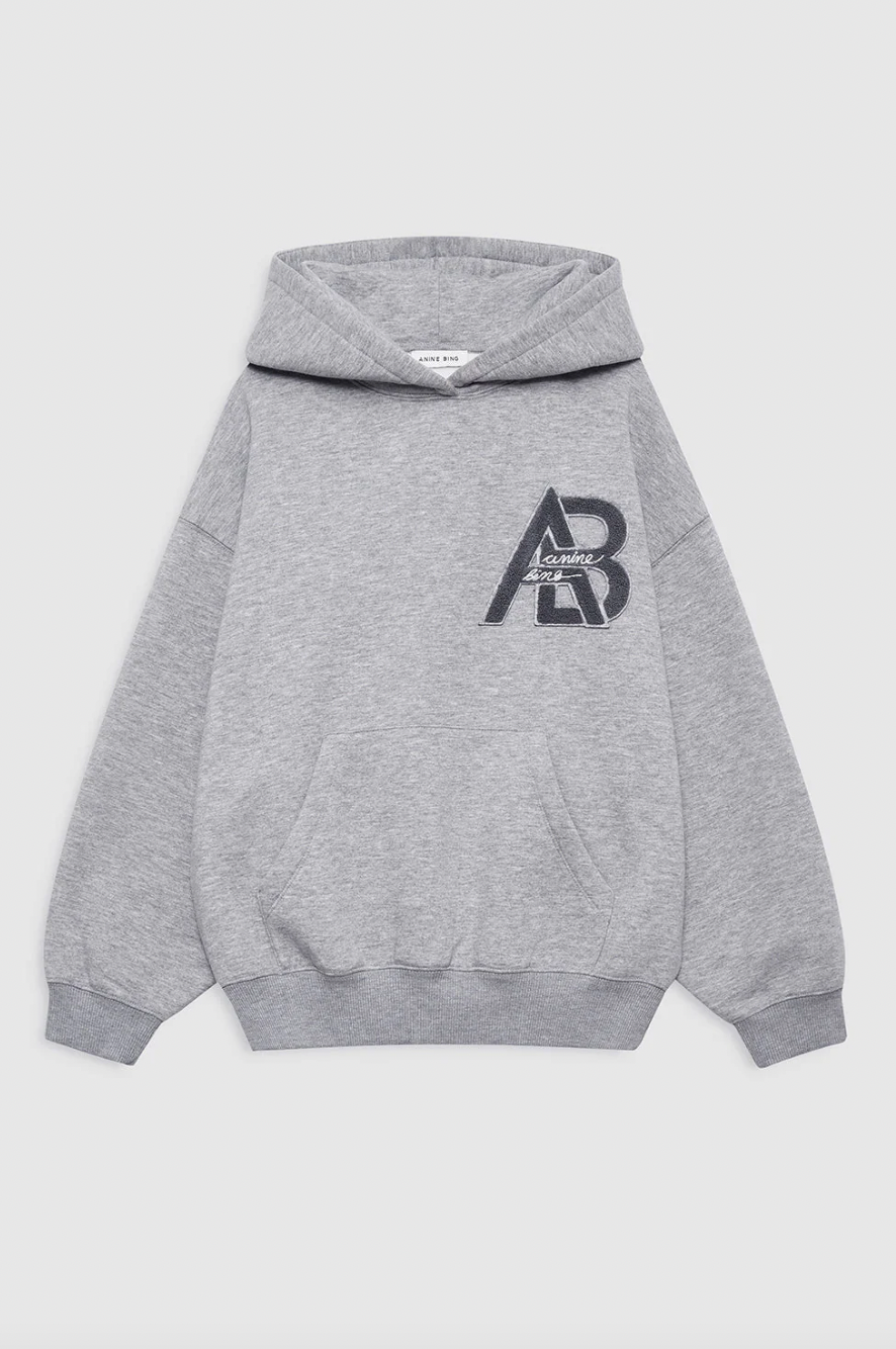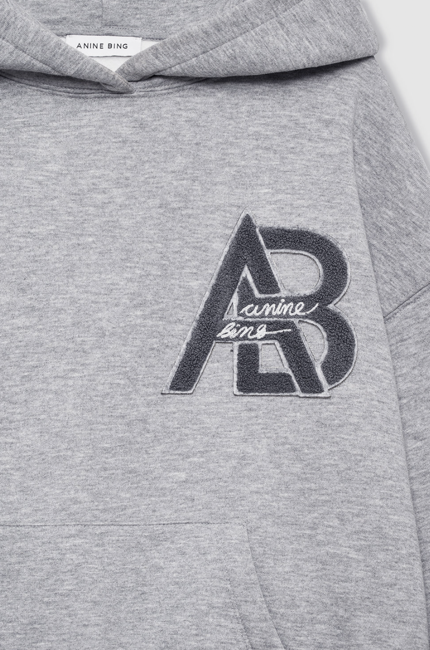An oversized hoodie made from midweight melange cotton fleece in medium heather grey.
