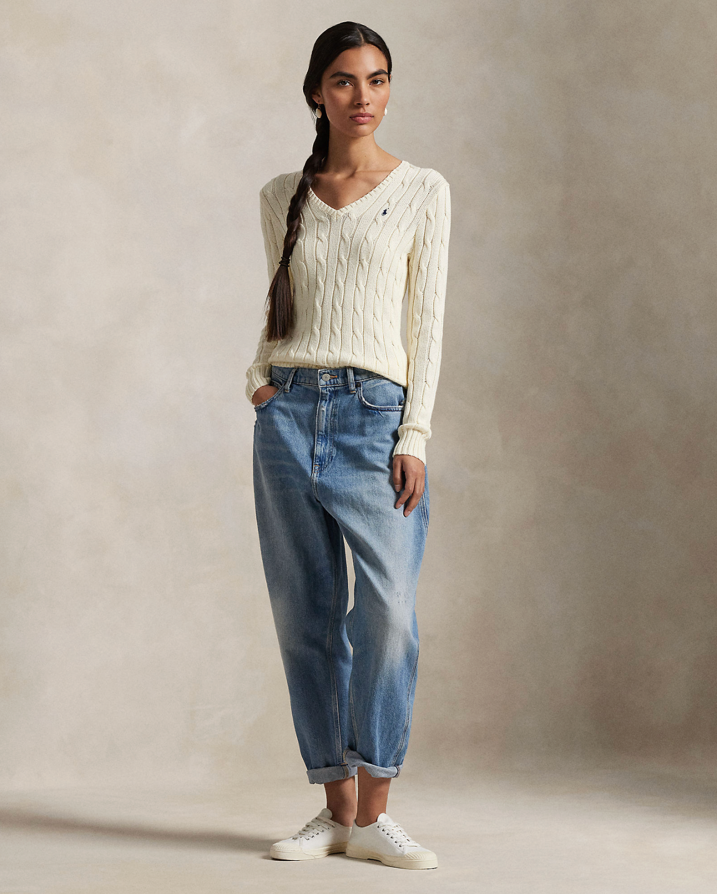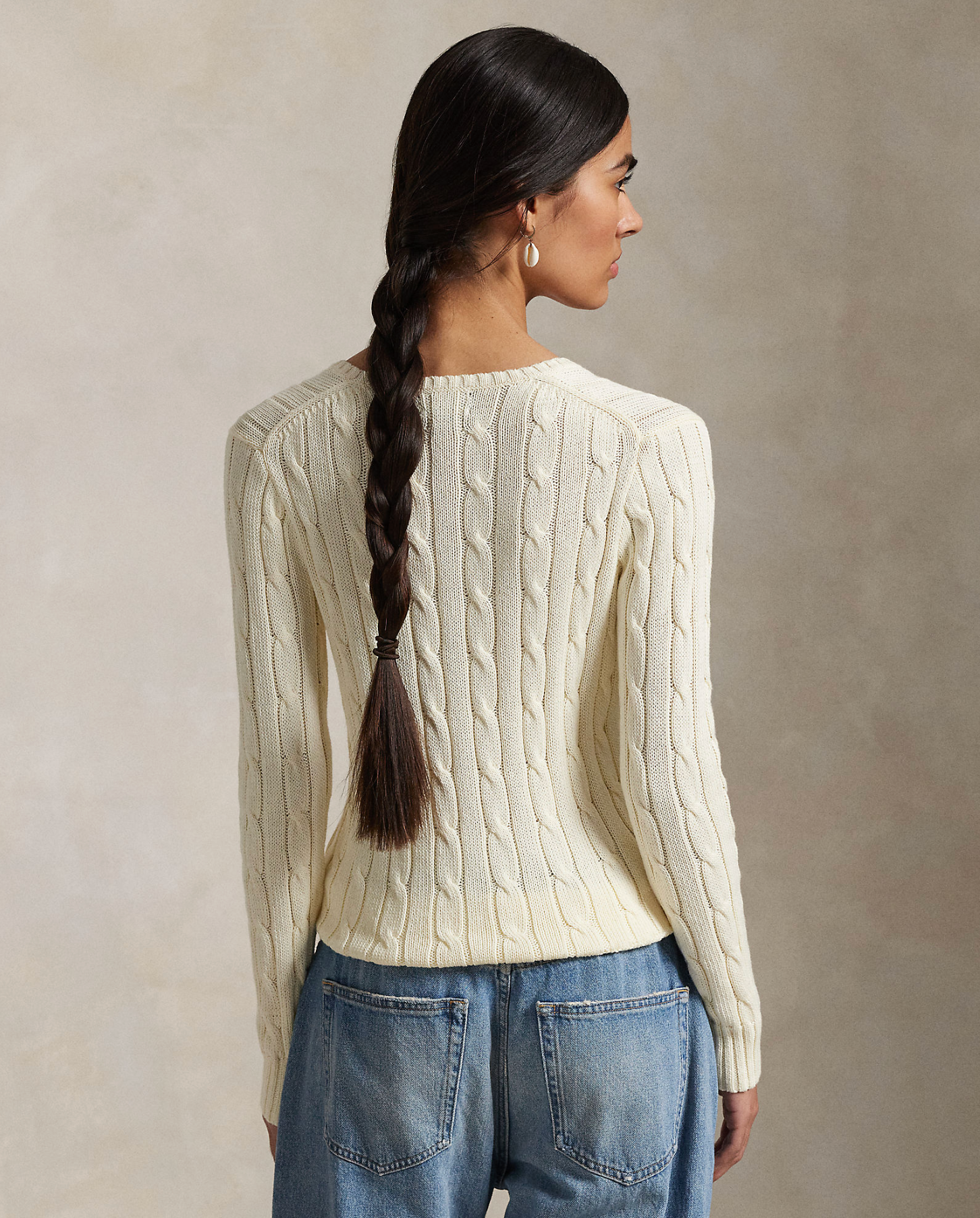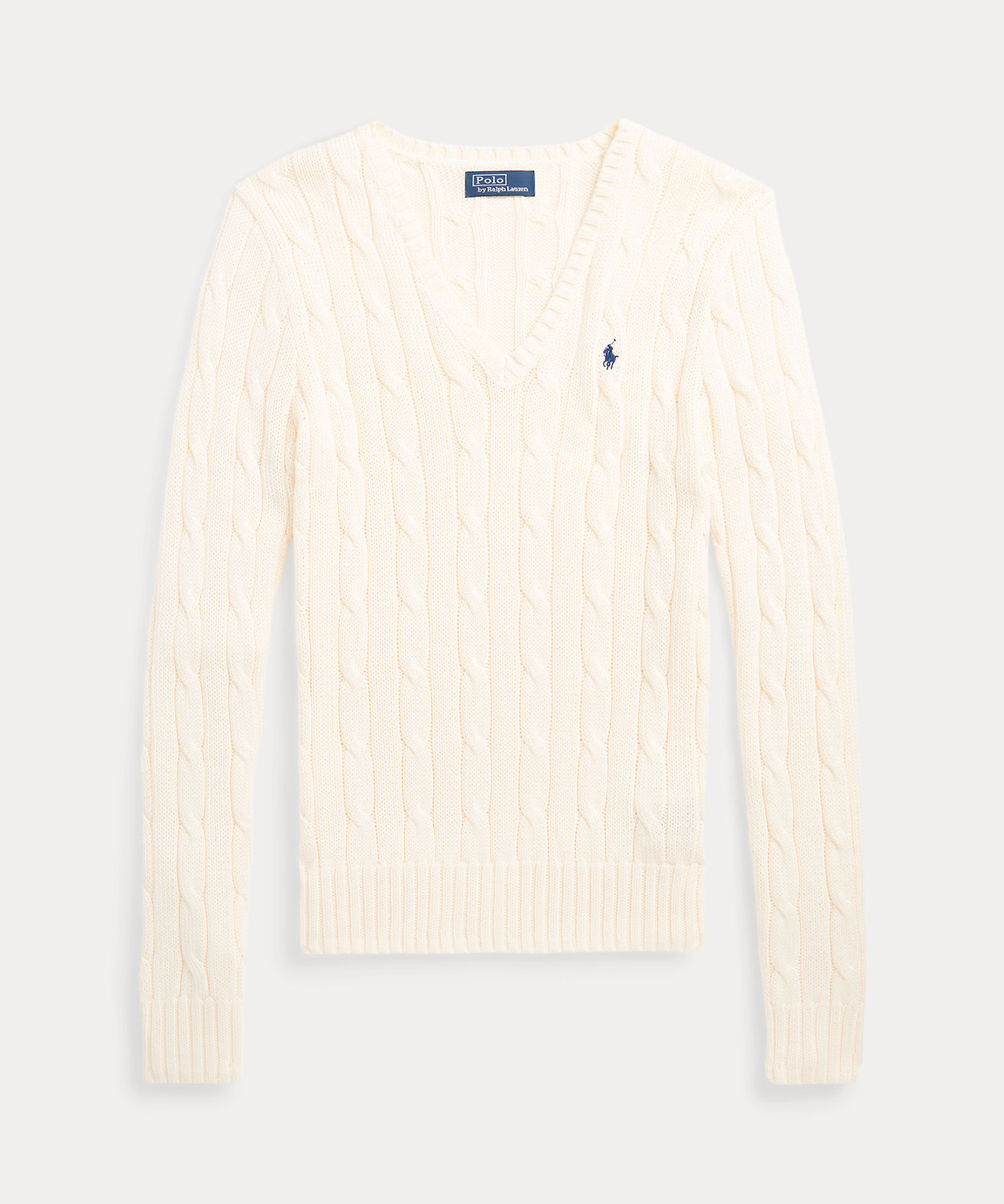 Crafted with combed cotton for a soft hand, this essential V-neck jumper is defined by a cable-knit construct and slim-fitting silhouette. Our embroidered Pony on the chest lends a signature finish. Ralph Lauren partners with Better Cotton™ to improve cotton farming globally.