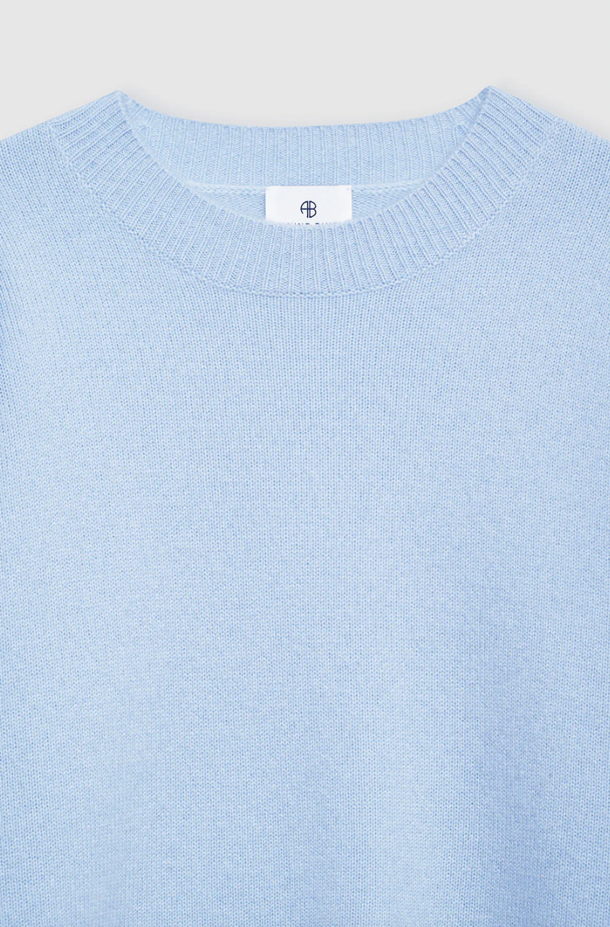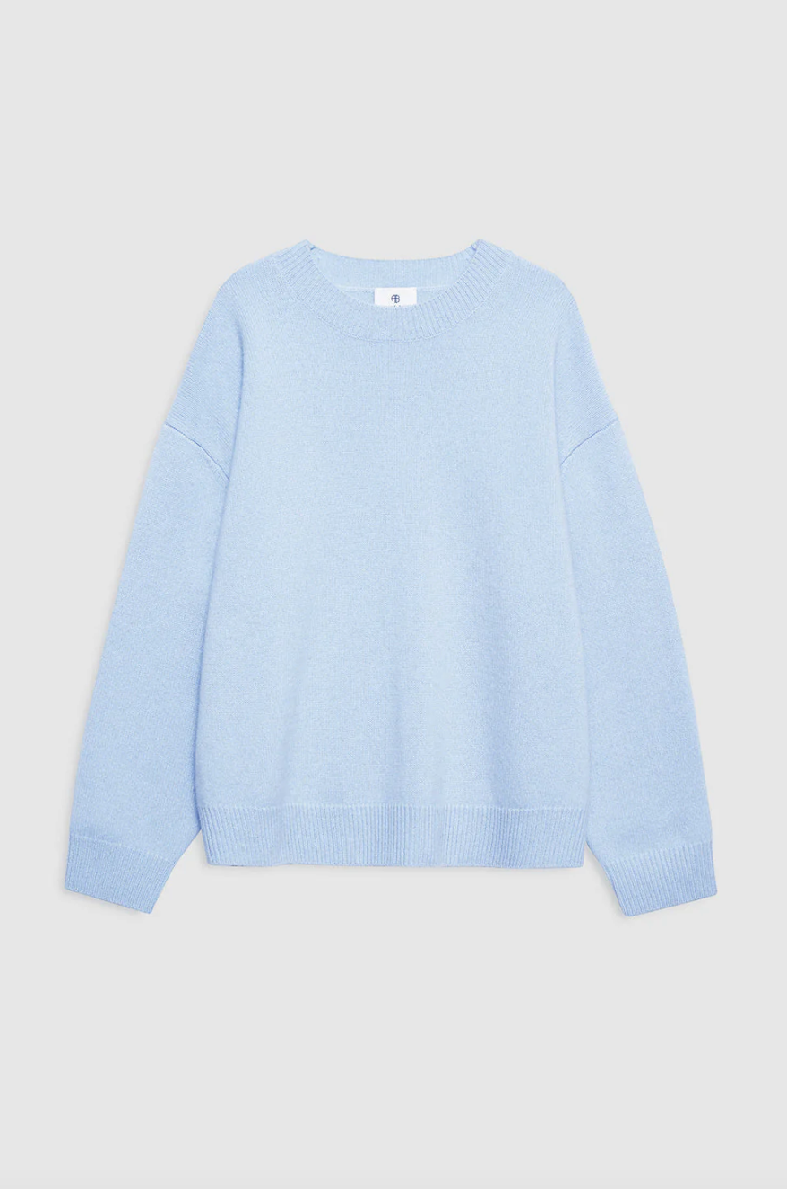 A soft crewneck sweater made from midweight 100% cashmere in pale blue.